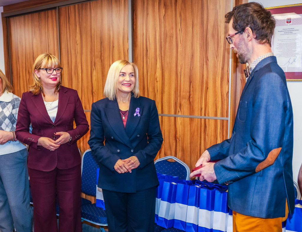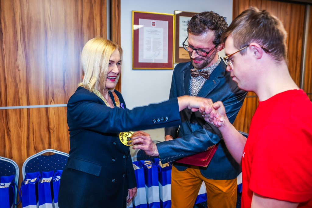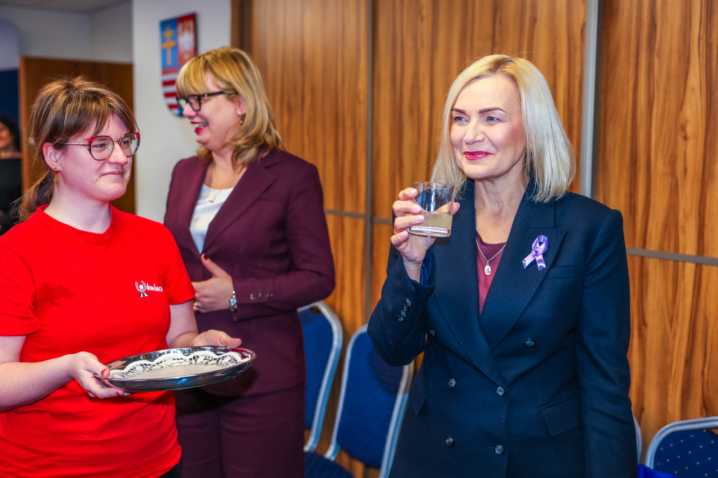 Młodzież z “Uśmiechu” przekazała podziękowania dla marszałek Renaty Janik za wsparcie m.in. w przygotowaniu i realizacji spektaklu. Wręczyła także pani marszałek “Medal Uśmiechu”, którego odbiór trzeba było poświadczyć… wypiciem soku z cytryny. Była także próba generalna fragmentu spektaklu, w której wzięły udział marszałek Renata Janik i dyrektor WDK Magdalena Fogiel-Litwinek.