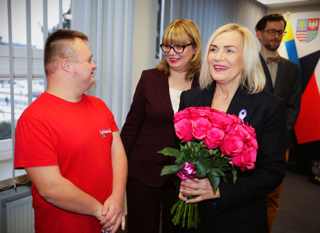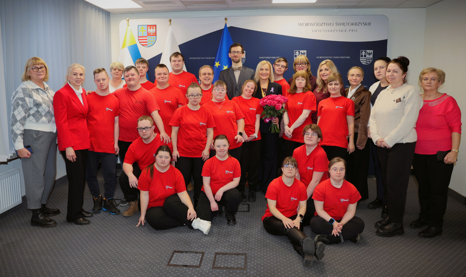 Utalentowani młodzi artyści z Zespołu Inscenizacji Tanecznych „Uśmiech” gościli dzisiaj u marszałek Renaty Janik. Wizyta była okazją do przekazania serdecznych życzeń noworocznych, zaprezentowania planów artystycznych i zaproszenia pani marszałek na najbliższe spektakle pt. “Witajcie w naszej bajce” z udziałem “Uśmiechu”, które będą wystawione w Teatrze im. Stefana Żeromskiego w Kielcach. W spotkaniu uczestniczyli także Magdalena Fogiel-Litwinek dyrektor Wojewódzkiego Domu Kultury w Kielcach i Michał Lach, autor scenografii do spektaklu.