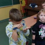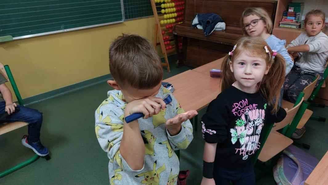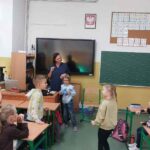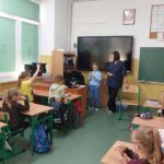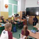 Pani weterynarz w ciekawy i przystępny sposób opowiedziała o swojej codziennej pracy, obowiązkach oraz o tym, jak dbać o zdrowie i dobre samopoczucie zwierząt domowych. Uczniowie mieli okazję zobaczyć różne przyrządy i narzędzia weterynaryjne wykorzystywane podczas leczenia zwierząt, a także dowiedzieć się, jak wygląda wizyta w gabinecie weterynaryjnym.