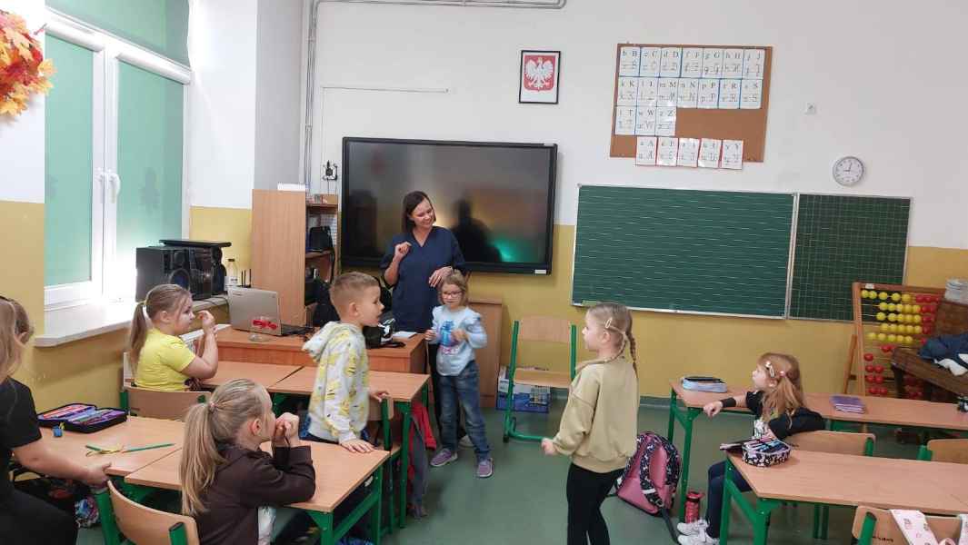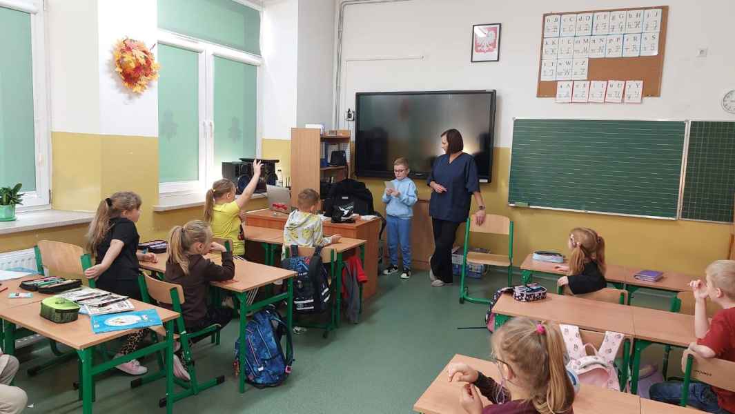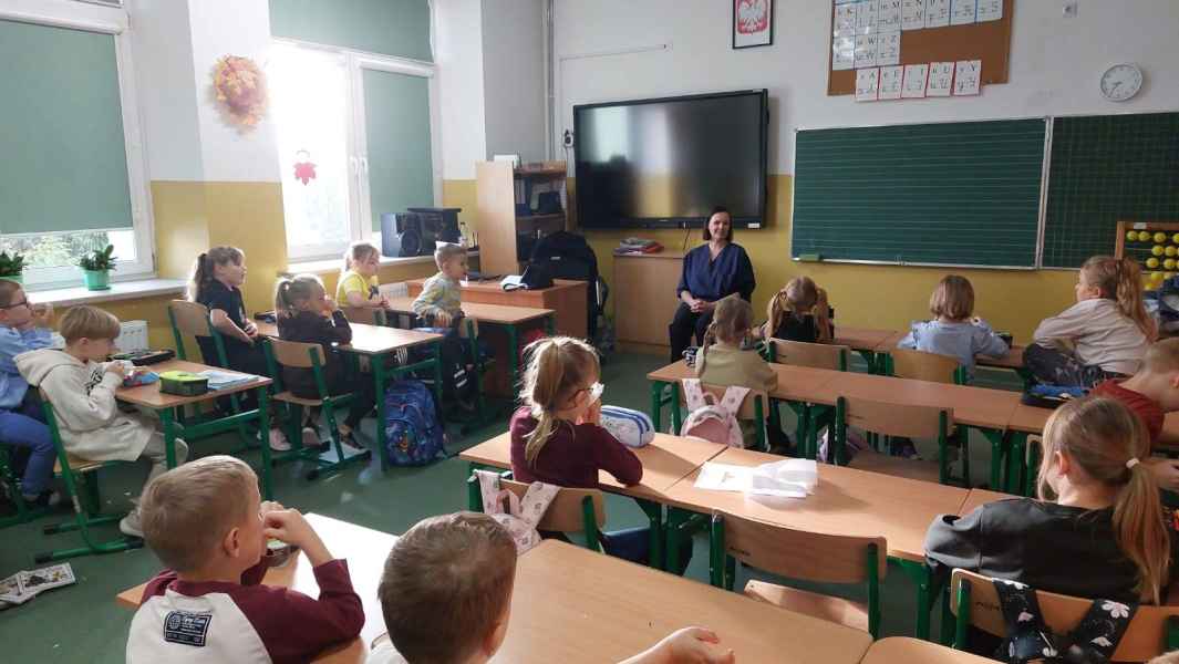 Uczniowie klasy pierwszej Szkoły Podstawowej im. Kornela Makuszyńskiego w Niestachowie odwiedziła pani weterynarz. Celem spotkania było zapoznanie dzieci z zawodem lekarza weterynarii oraz uwrażliwienie ich na potrzeby i dobro zwierząt.