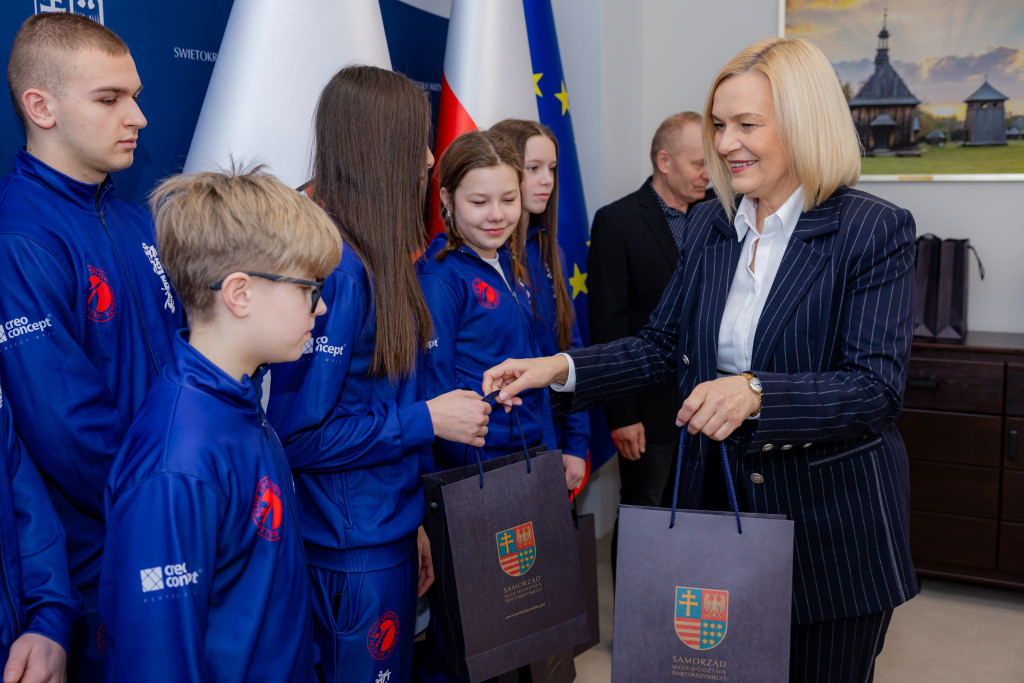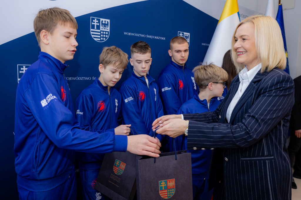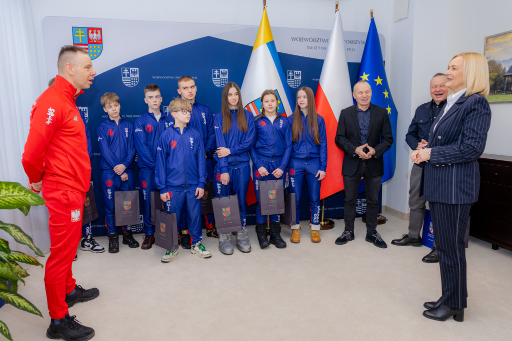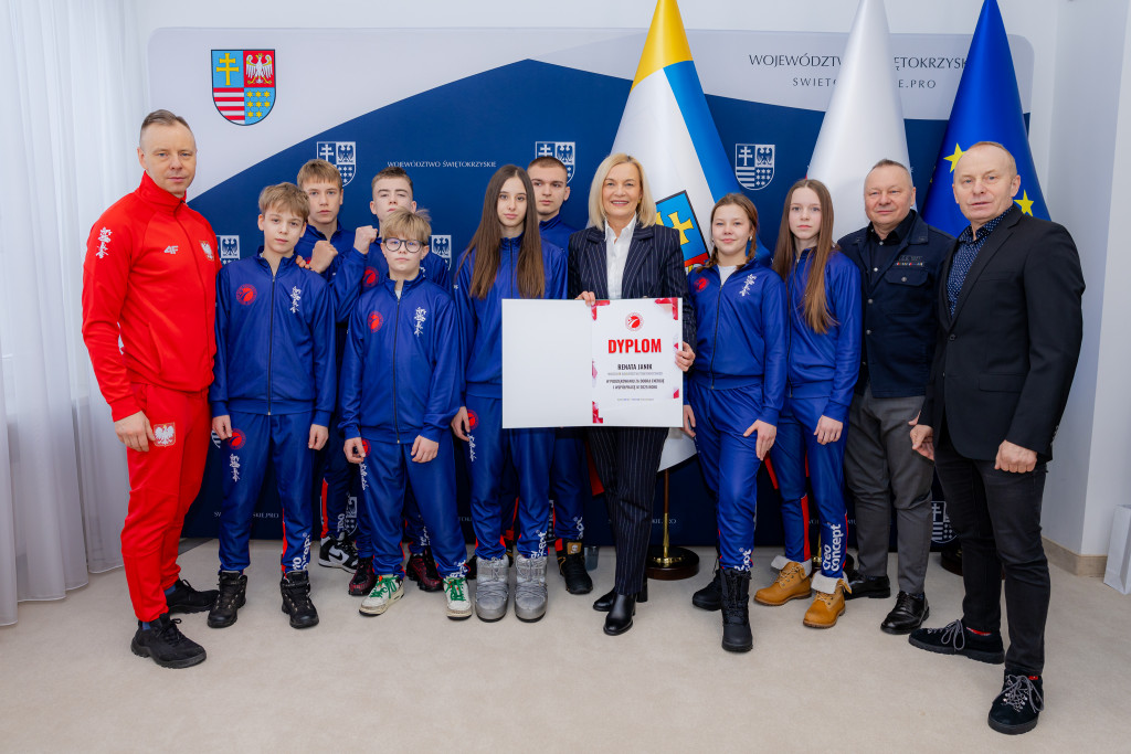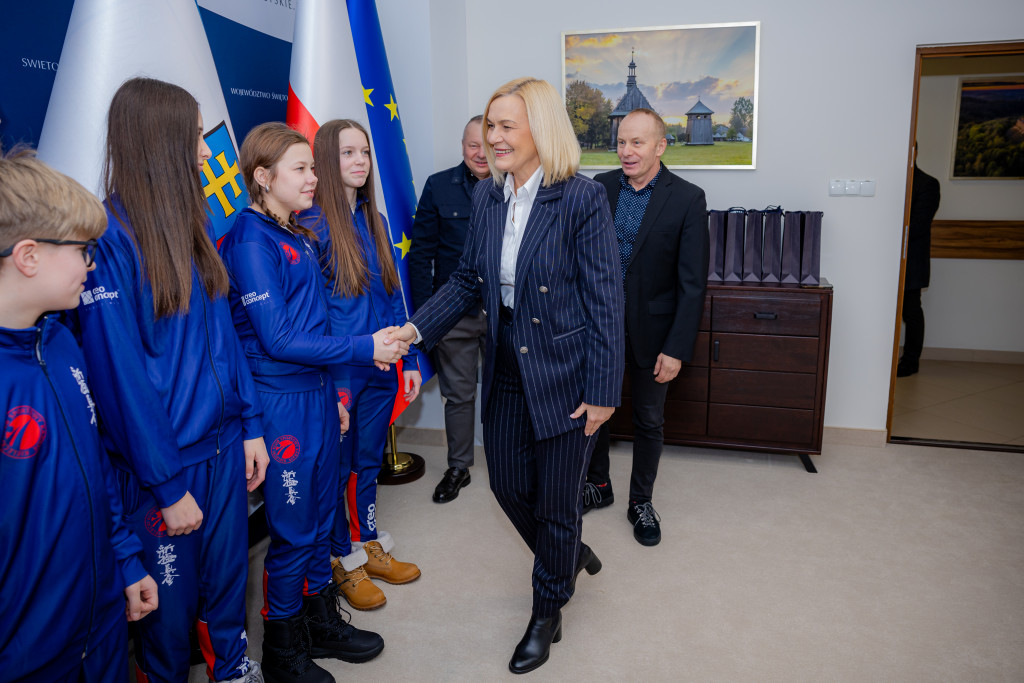 Marszałek Województwa Świętokrzyskiego Renata Janik spotkała się z przedstawicielami oraz zawodnikami Kieleckiego Klubu Sportowego Karate, w tym z braćmi Tomaszem, Waldemarem i Piotrem Kęćko którzy podziękowali jej za dotychczasową współpracę i wsparcie dla działalności klubu oraz rozwoju karate w regionie. W spotkaniu uczestniczyła także Anita Koniusz, Członek Zarządu Województwa Świętokrzyskiego.