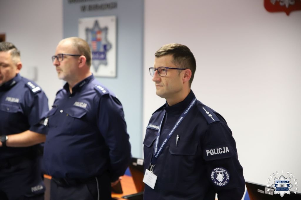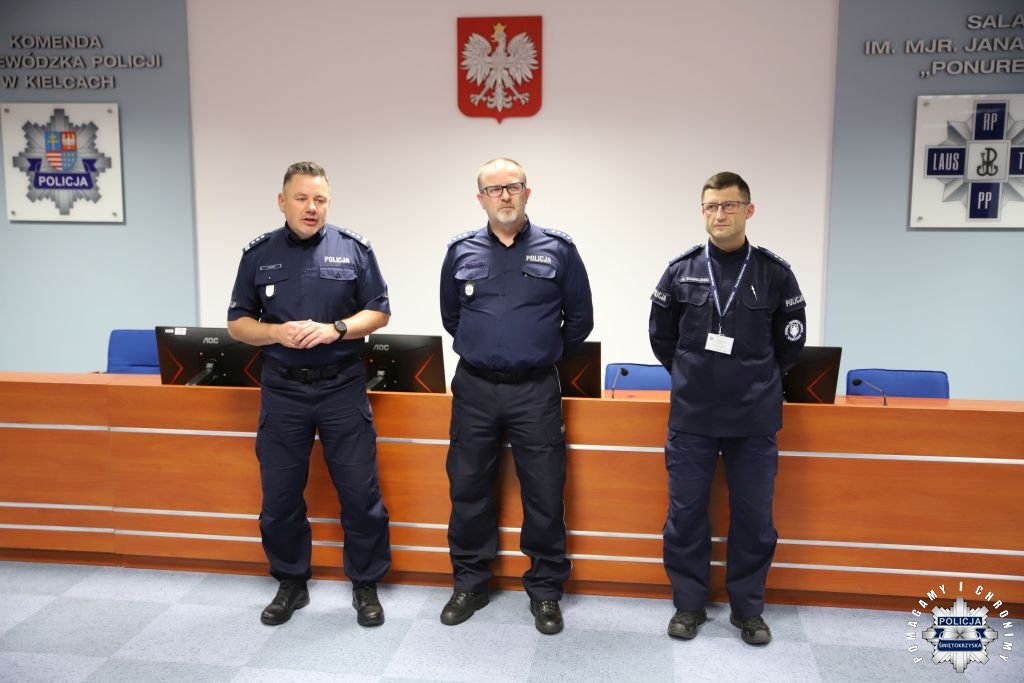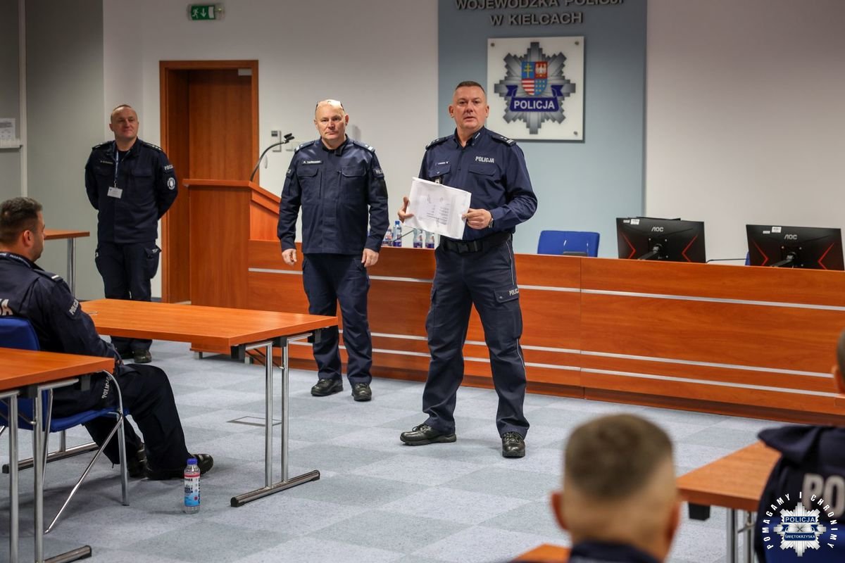 Kolejna grupa policjantów z garnizonu świętokrzyskiego uczestniczyła w szkoleniu zawodowym podoficerskim. Kurs realizowany był poza szkołą policji. Jego organizatorem było tym razem Centrum Szkolenia Policji w Legionowie przy oczywistym udziale Komendy Wojewódzkiej Policji w Kielcach. Hybrydowa forma szkolenia pozwoliła na uczestniczenie w zajęciach online, prowadzonych przez wykładowców z Legionowa, a jednocześnie zdobywanie wiedzy na miejscu, przekazywanej przez doświadczonych funkcjonariuszy komendy wojewódzkiej.