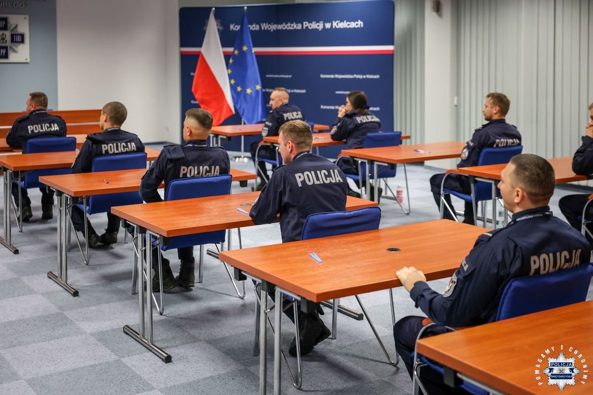 24 funkcjonariuszy z naszego garnizonu zakończyło dzisiaj szkolenie zawodowe podoficerskie. Zajęcia zorganizowane były przez Centrum Szkolenia Policji w Legionowie, przy udziale Komendy Wojewódzkiej Policji w Kielcach. Dziś jego uczestnicy złożyli egzamin końcowy.