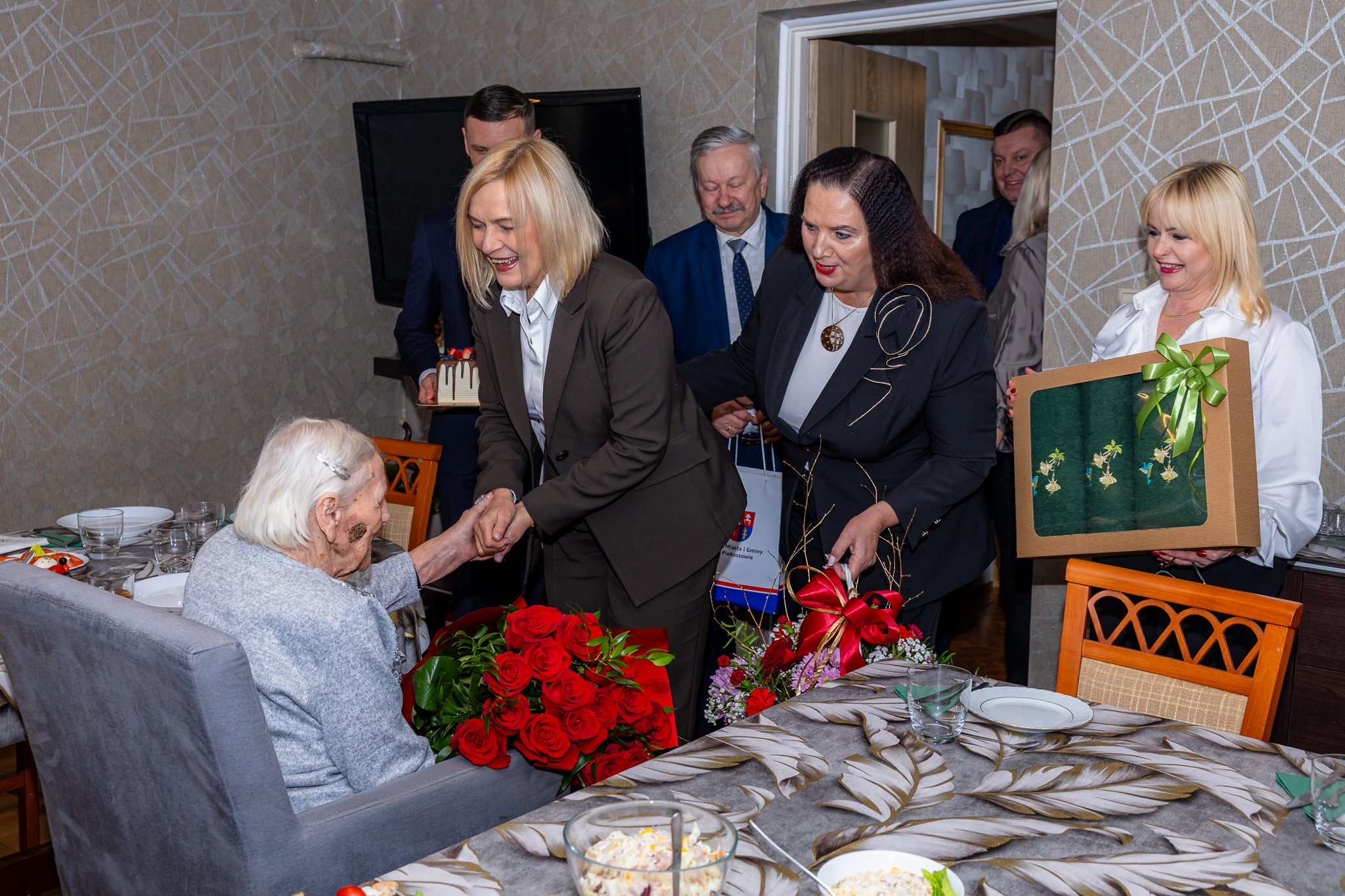 Urodzinowe spotkanie miało podniosły, a jednocześnie bardzo ciepły i rodzinny charakter. Marszałek Renata Janik przywiozła tort, przy którym jubilatka zdmuchnęła świeczki, a zgromadzeni goście odśpiewali „Dwieście lat”. Sama pani Józefa również zaśpiewała dla gości, imponując doskonałą pamięcią i pogodą ducha.