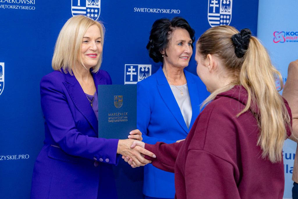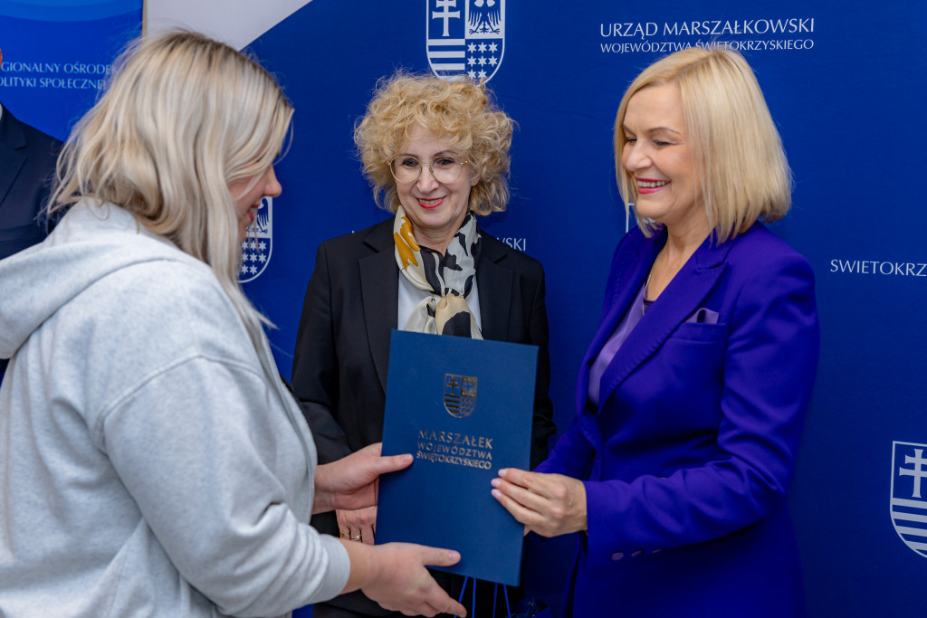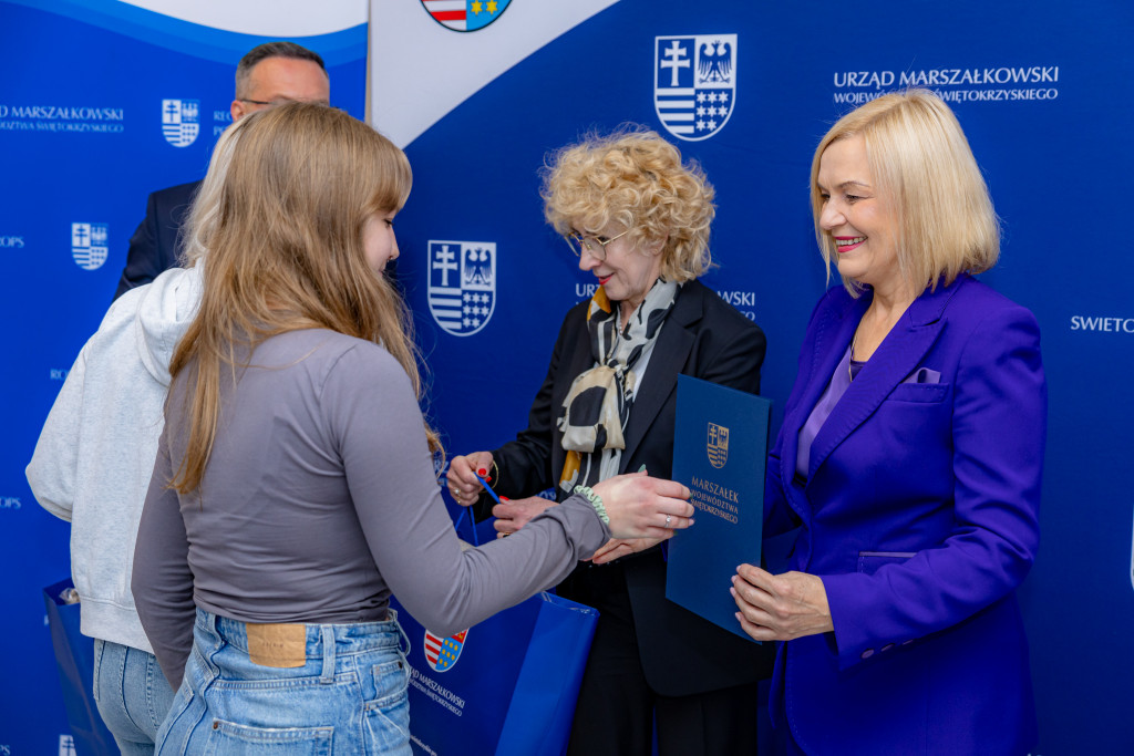 Marszałek Renata Janik wręczyła uczestnikom zaświadczenia o uczestnictwie w wydarzeniu oraz upominki.