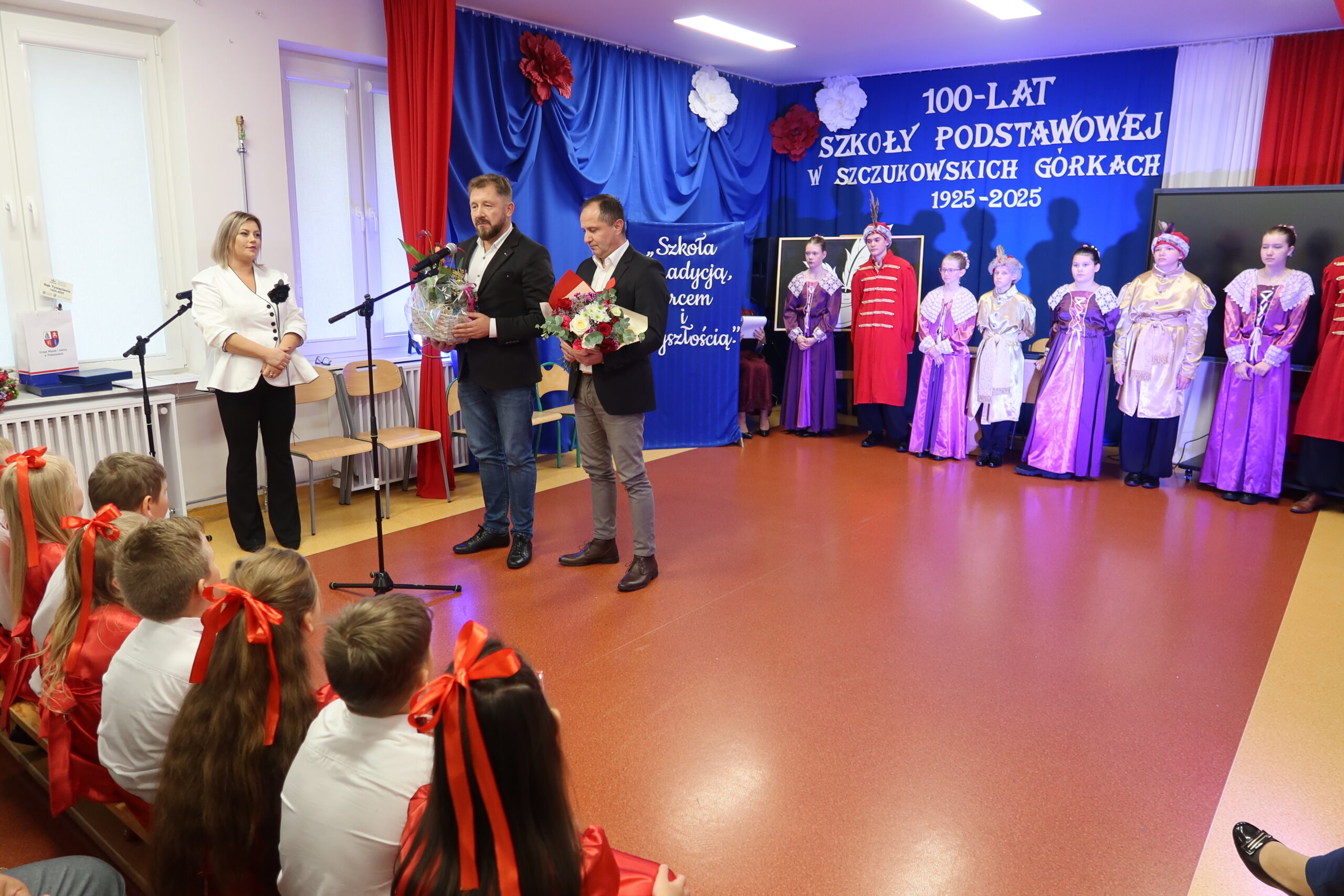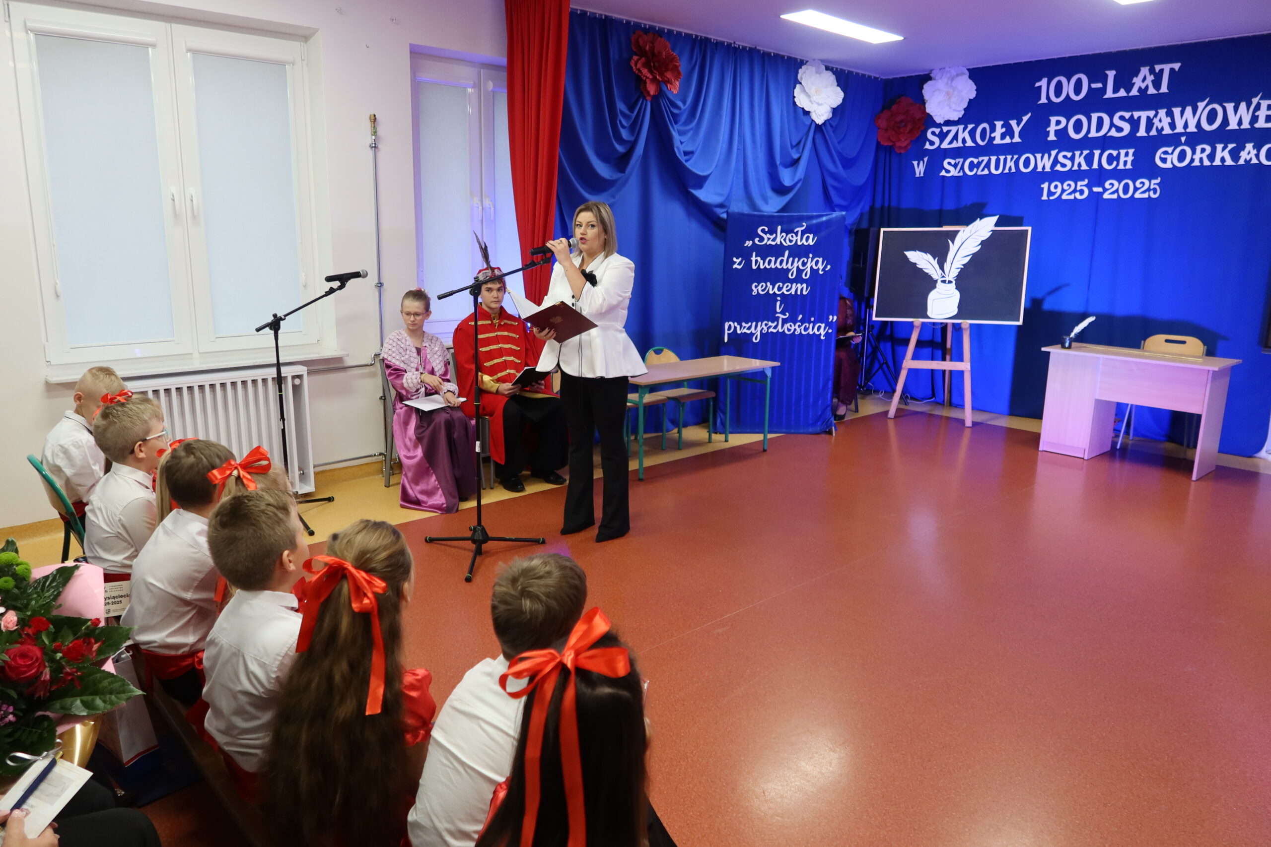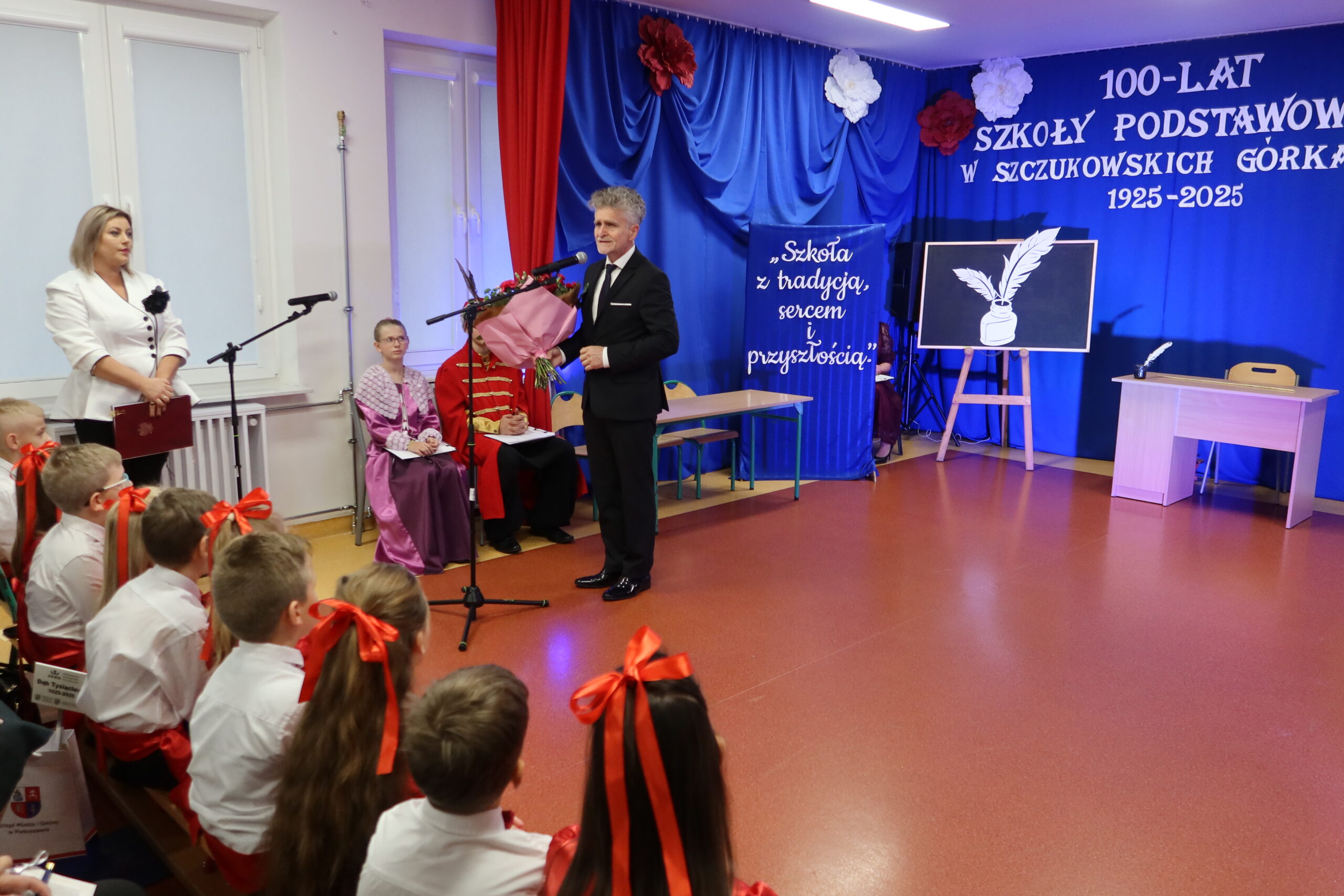 Dyrektor szkoły, Patrycja Giemza-Dziedzic, powitała wszystkich zebranych i przypomniała historię placówki, jej początki oraz ludzi, którzy przez lata tworzyli jej wyjątkowy klimat. – Stulecie szkoły to nie tylko symbol upływu czasu, ale przede wszystkim dowód trwałości wspólnoty, jaką tworzą uczniowie, nauczyciele, absolwenci i mieszkańcy. To święto wszystkich, którzy tę szkołę współtworzyli i nadal utożsamiają się z nią. Cieszę się, że dziś możemy wspólnie wrócić do wspomnień, podziękować naszym poprzednikom i spojrzeć z nadzieją w przyszłość – powiedziała dyrektor Patrycja Giemza-Dziedzic.