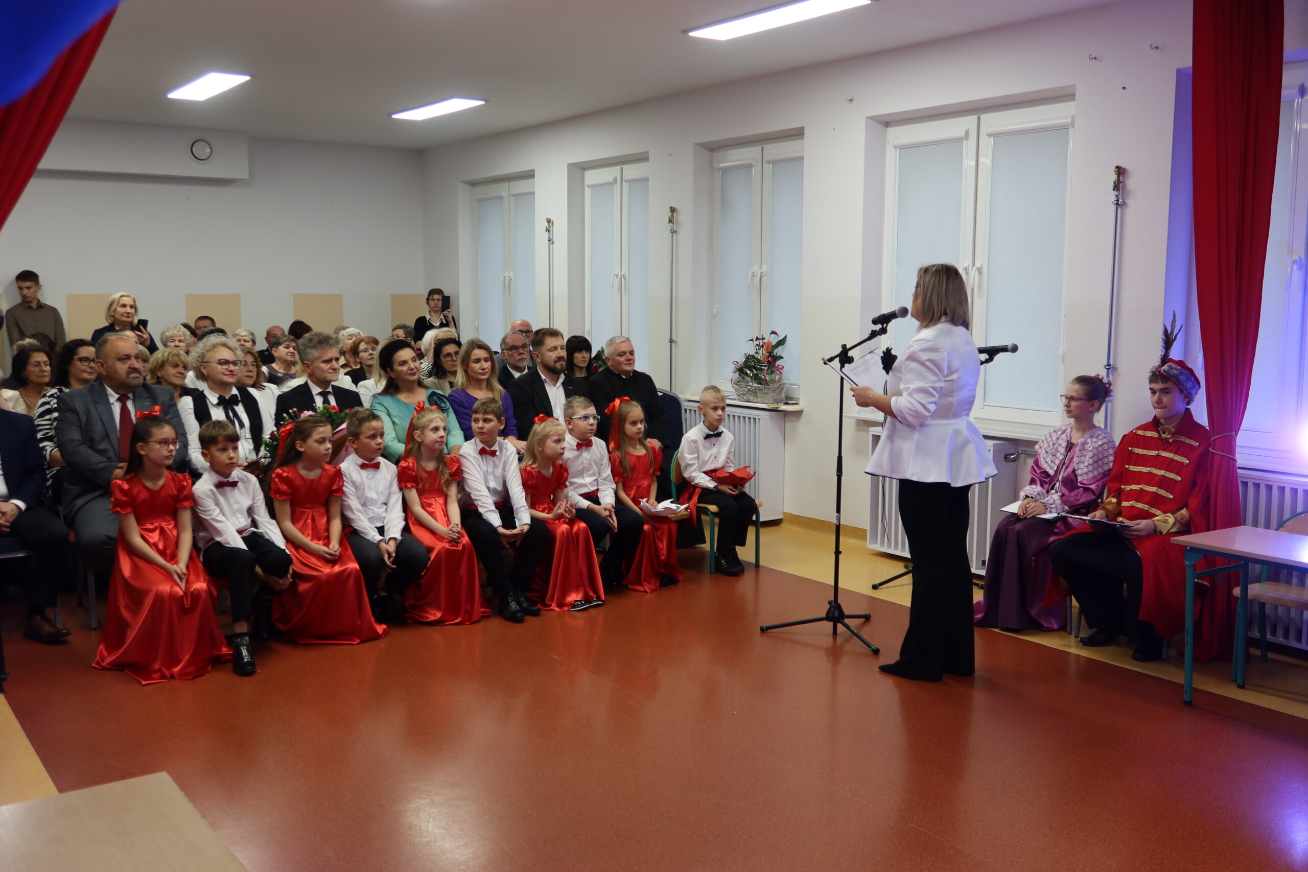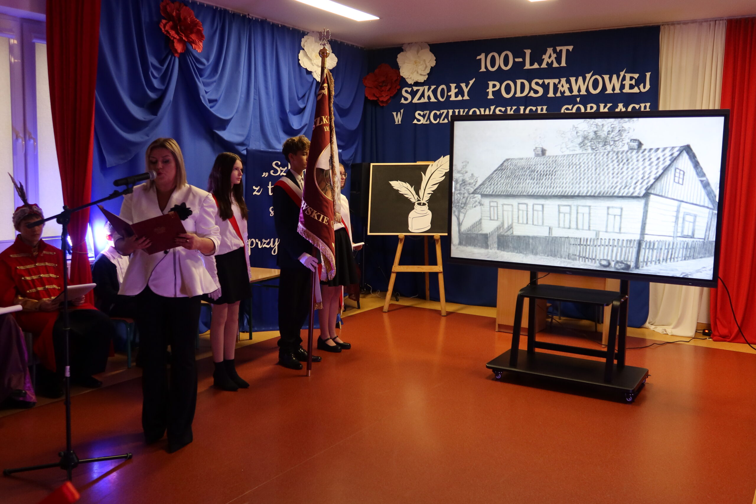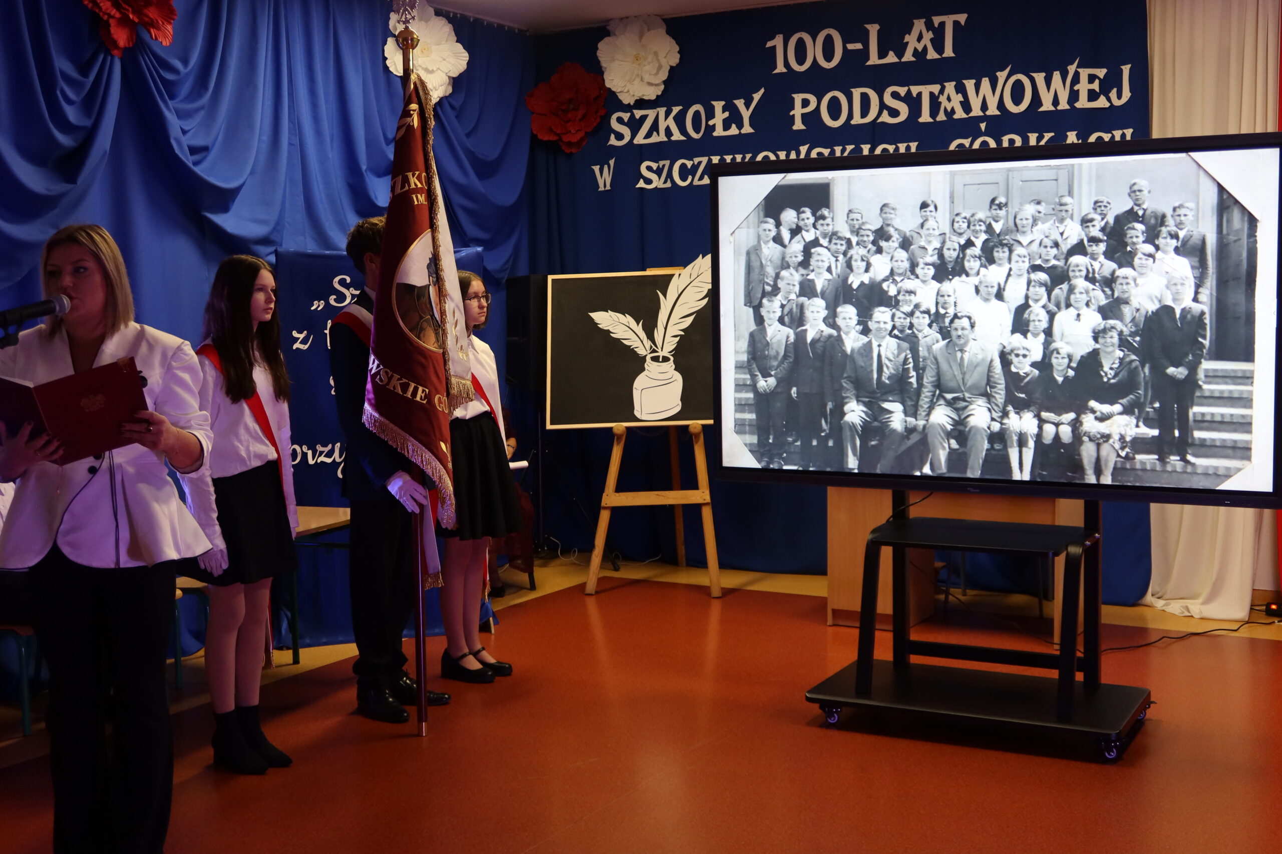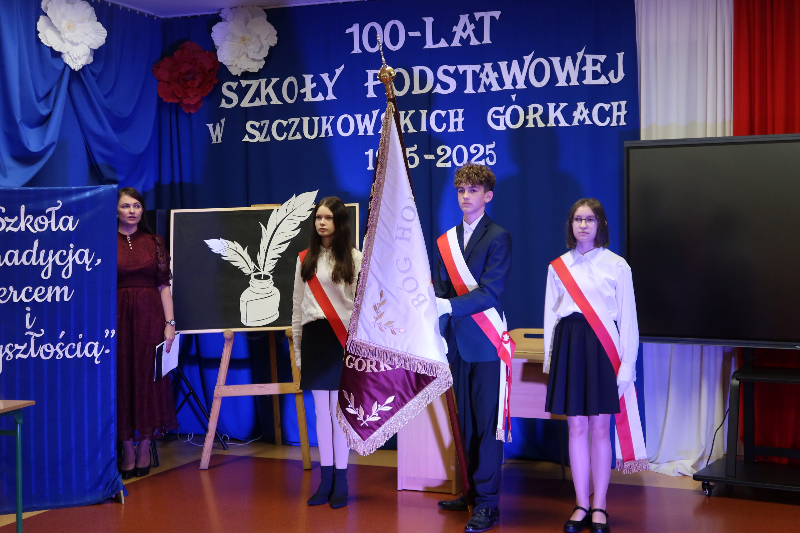 Dyrektor szkoły, Patrycja Giemza-Dziedzic, powitała wszystkich zebranych i przypomniała historię placówki, jej początki oraz ludzi, którzy przez lata tworzyli jej wyjątkowy klimat. – Stulecie szkoły to nie tylko symbol upływu czasu, ale przede wszystkim dowód trwałości wspólnoty, jaką tworzą uczniowie, nauczyciele, absolwenci i mieszkańcy. To święto wszystkich, którzy tę szkołę współtworzyli i nadal utożsamiają się z nią. Cieszę się, że dziś możemy wspólnie wrócić do wspomnień, podziękować naszym poprzednikom i spojrzeć z nadzieją w przyszłość – powiedziała dyrektor Patrycja Giemza-Dziedzic.