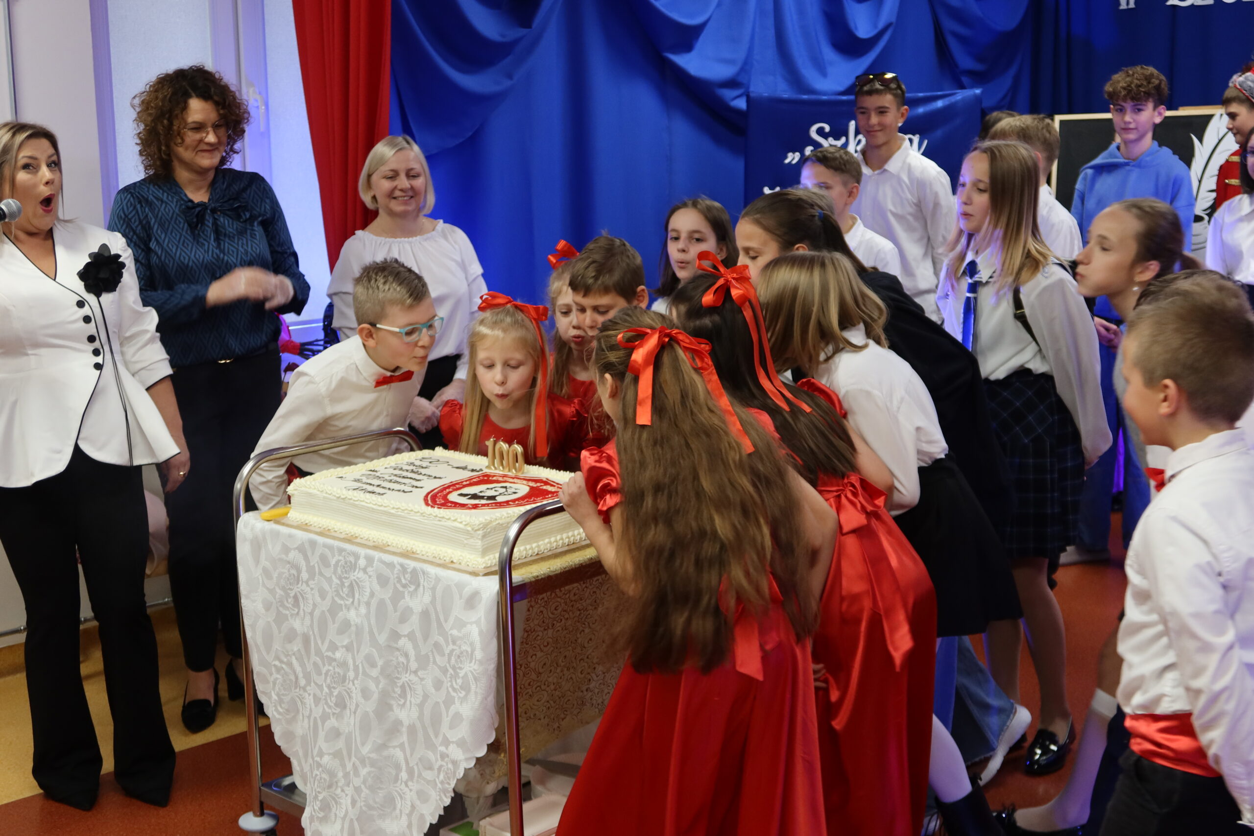 Z okazji jubileuszu zaprezentowano przygotowaną przez uczniów inscenizację, będącą wzruszającą opowieścią o stuletniej historii szkoły. Występy artystyczne przeniosły publiczność w czasy dawnych lekcji i szkolnych zwyczajów, a pokaz mody szkolnej zmieniającej się na przestrzeni lat wywołał wiele uśmiechów i nostalgii. Stare fotografie i prezentacja multimedialna przywołały wspomnienia o dawnych nauczycielach i absolwentach. Uroczystość zwieńczyło wspólne dzielenie jubileuszowego tortu.