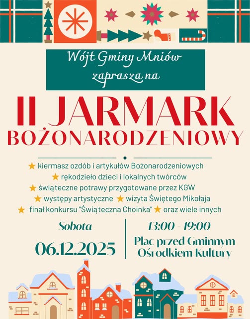 Mniów szykuje się na jedno z najpiękniejszych wydarzeń w roku. Już w najbliższą sobotę, 6 grudnia, plac przed Gminnym Ośrodkiem Kultury zamieni się w tętniące życiem, kolorowe miasteczko pełne świątecznych inspiracji. Od godziny 13.00 do godziny 19.00 potrwa II Jarmark Bożonarodzeniowy, który bez wątpienia ponownie przyciągnie wielu wystawców, a także tłumy mieszkańców i gości z okolic.