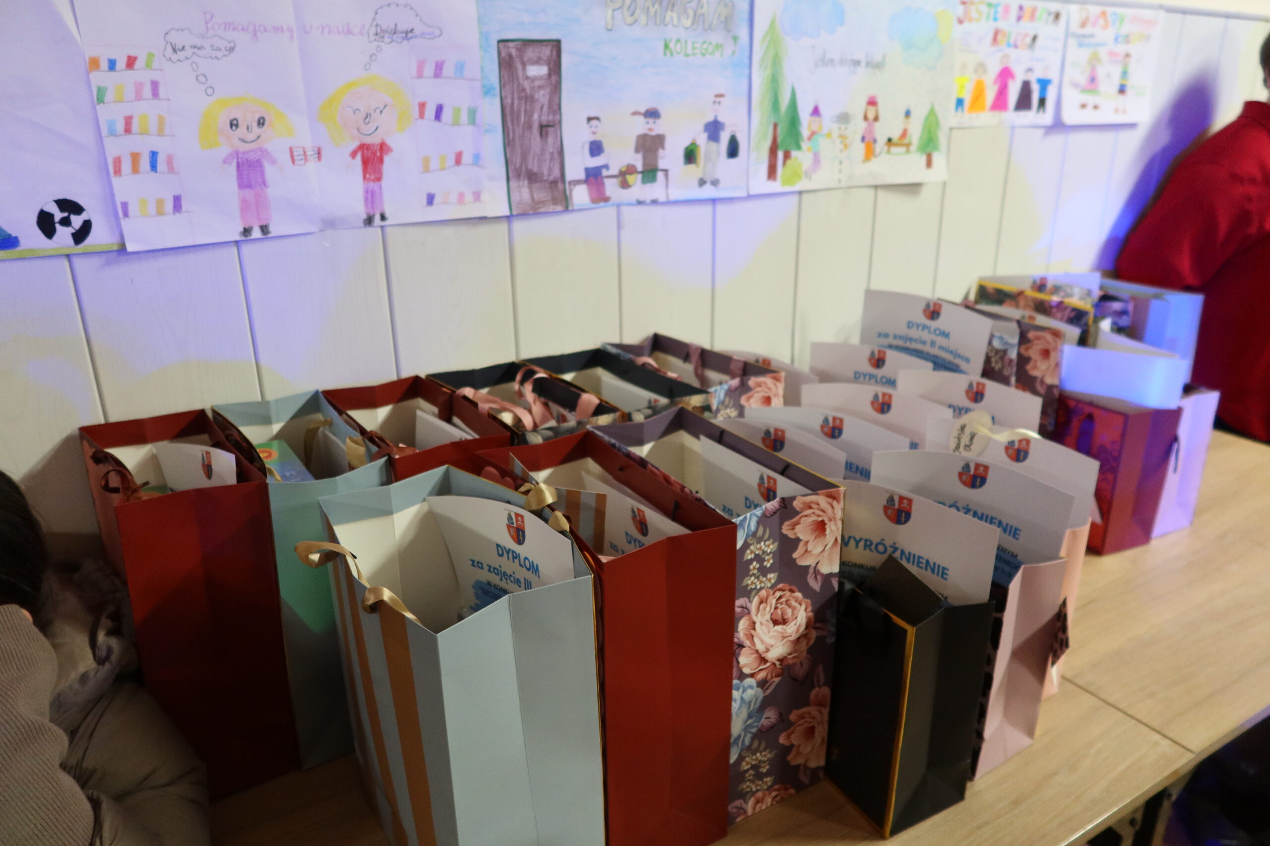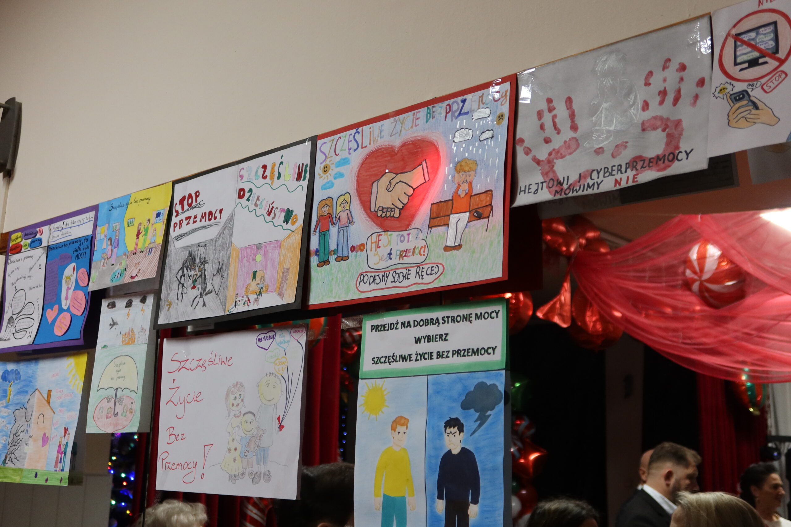 W ramach wydarzenia podsumowano konkurs plastyczny zorganizowany przez Burmistrza Miasta i Gminy Piekoszów Teresę Jakubowską, Zespół Interdyscyplinarny oraz GOPS w Piekoszowie. Tematyka konkursu była dostosowana do wieku uczestników. Uczniowie klas I–III tworzyli prace pod hasłem „Jestem dobrym kolegą”, starsze dzieci z klas IV–V przedstawiały „Szczęśliwe życie bez przemocy”, natomiast młodzież z klas VI–VIII mierzyła się z tematem „Hejtowi i cyberprzemocy mówimy nie”. W konkursie udział wzięło ponad 130 uczestników, co pokazuje, jak duże znaczenie mają dla dzieci i młodzieży kwestie bezpieczeństwa i wzajemnego szacunku. – Do konkursu zgłoszono ponad 130 prac. To rekordowa liczba, która pokazuje, jak dużym zainteresowaniem cieszyła się tegoroczna edycja. Nagrodziliśmy najlepsze prace, ale postaraliśmy się też, aby każdy uczestnik otrzymał upominek. Dziękuję wszystkim uczniom i nauczycielom za zaangażowanie. To wydarzenie udowadnia, że w naszej gminie temat bezpieczeństwa i budowania pozytywnych relacji jest naprawdę ważny – podkreślił kierownik GOPS w Piekoszowie Mariusz Łuszczyński. – Konkurs plastyczny, który dziś podsumowaliśmy, pokazuje, jak mądrze i dojrzale nasze dzieci patrzą na relacje, dobro i przeciwdziałanie przemocy. Jestem z nich ogromnie dumna i serdecznie wszystkim gratuluję – powiedziała burmistrz Teresa Jakubowska podczas wręczania nagród.