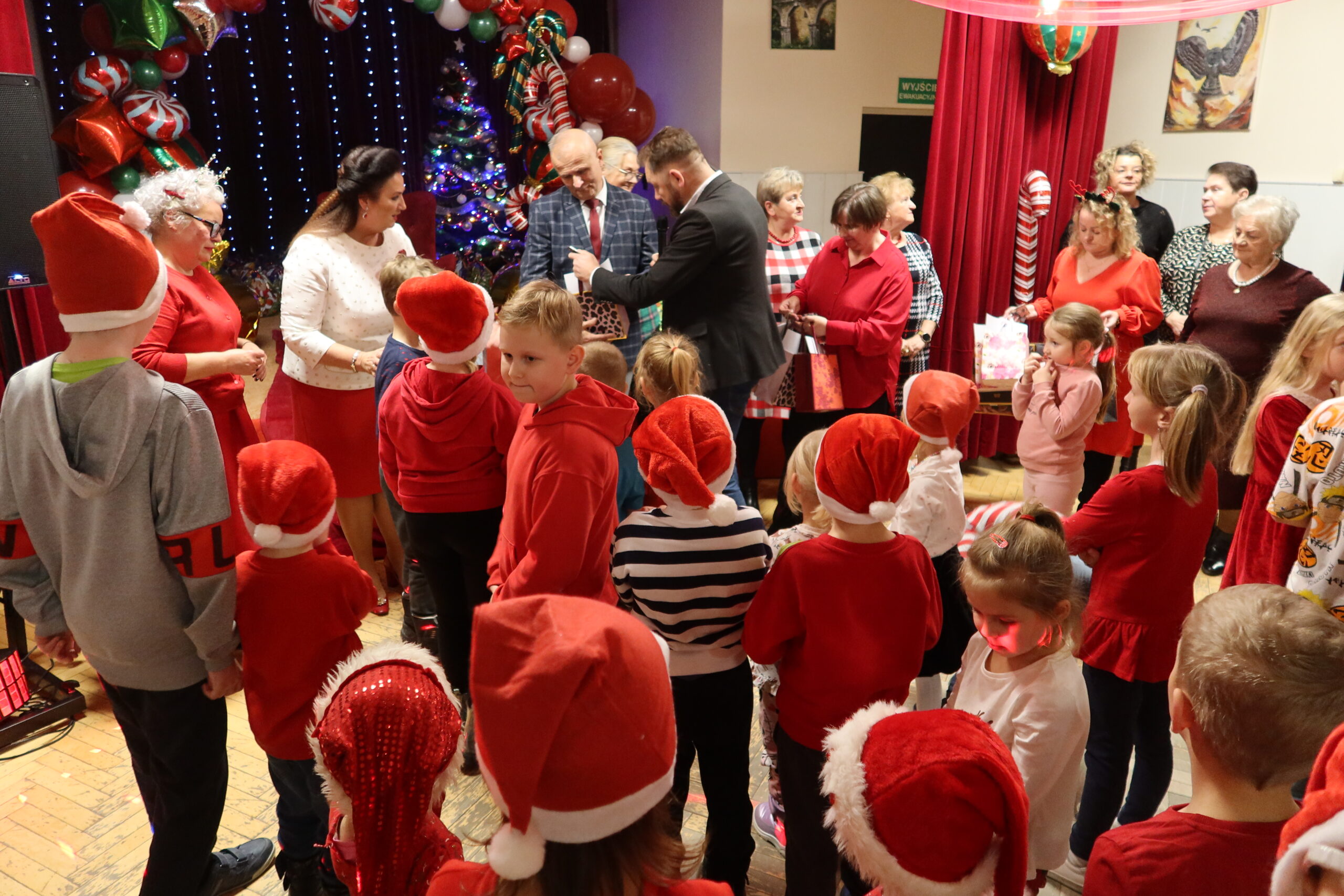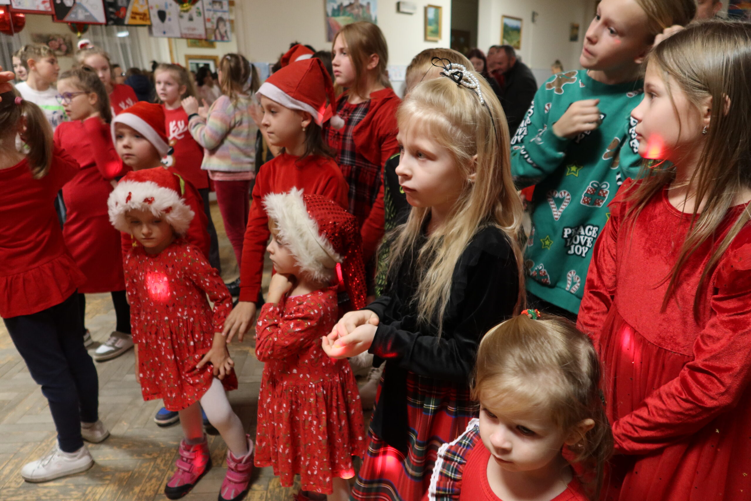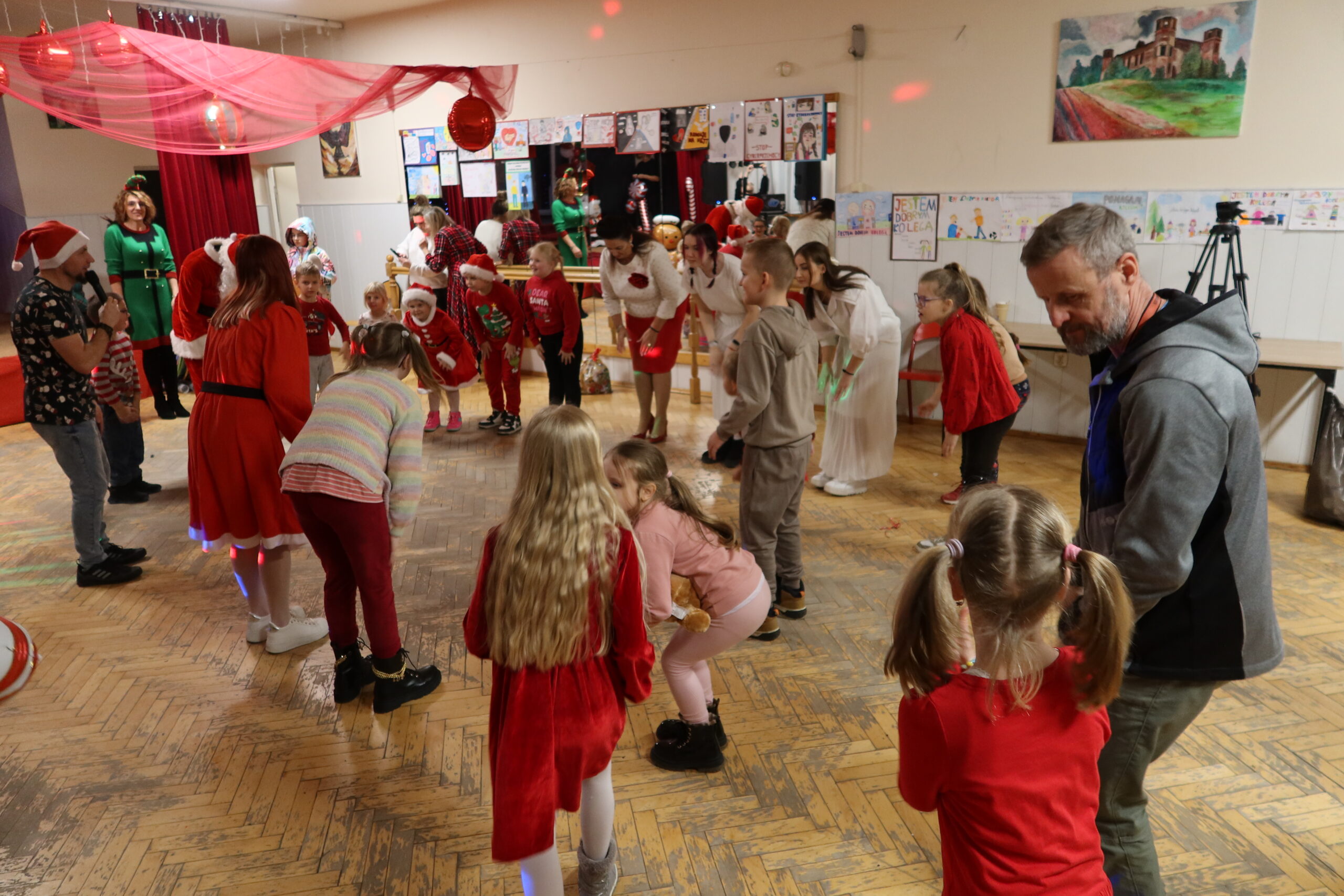 Tegoroczne spotkanie mikołajkowe w Piekoszowie było prawdziwie wyjątkowe. Dzieci czekały w ogromnym skupieniu, aż w drzwiach pojawi się On – brodaty gość z czerwonym workiem z wymarzonymi prezentami. Gdy tylko Święty Mikołaj wszedł do sali, maluchy otoczyły go z radością, a atmosfera od razu stała się jeszcze bardziej świąteczna. Organizatorzy zadbali o moc atrakcji. Każde dziecko mogło napić się gorącej czekolady, zjeść świeżo przygotowane gofry, wziąć udział w animacjach i wspólnej zabawie. Z twarzy najmłodszych nie znikały uśmiechy. To był dzień, który wspaniale połączył dobrą zabawę z ważnym przesłaniem o życzliwości, bezpieczeństwie i budowaniu pięknych relacji. – Mikołajki to jeden z tych dni, na które czekamy cały rok. Widok dzieci biegnących z radością do Mikołaja jest bezcenny. Zawsze zależy nam na tym, żeby w Piekoszowie panowała atmosfera ciepła i życzliwości, dlatego przygotowujemy dla najmłodszych tak wiele atrakcji. Chciałabym życzyć wszystkim dzieciom, aby ten świąteczny czas przyniósł im mnóstwo uśmiechu, spełnienia marzeń i pięknych chwil spędzonych z najbliższymi. Niech zawsze towarzyszy im dobro, przyjaźń i poczucie bezpieczeństwa. Ogromnie się cieszę, że mogliśmy razem rozpocząć ten wyjątkowy okres – mówi burmistrz Teresa Jakubowska.