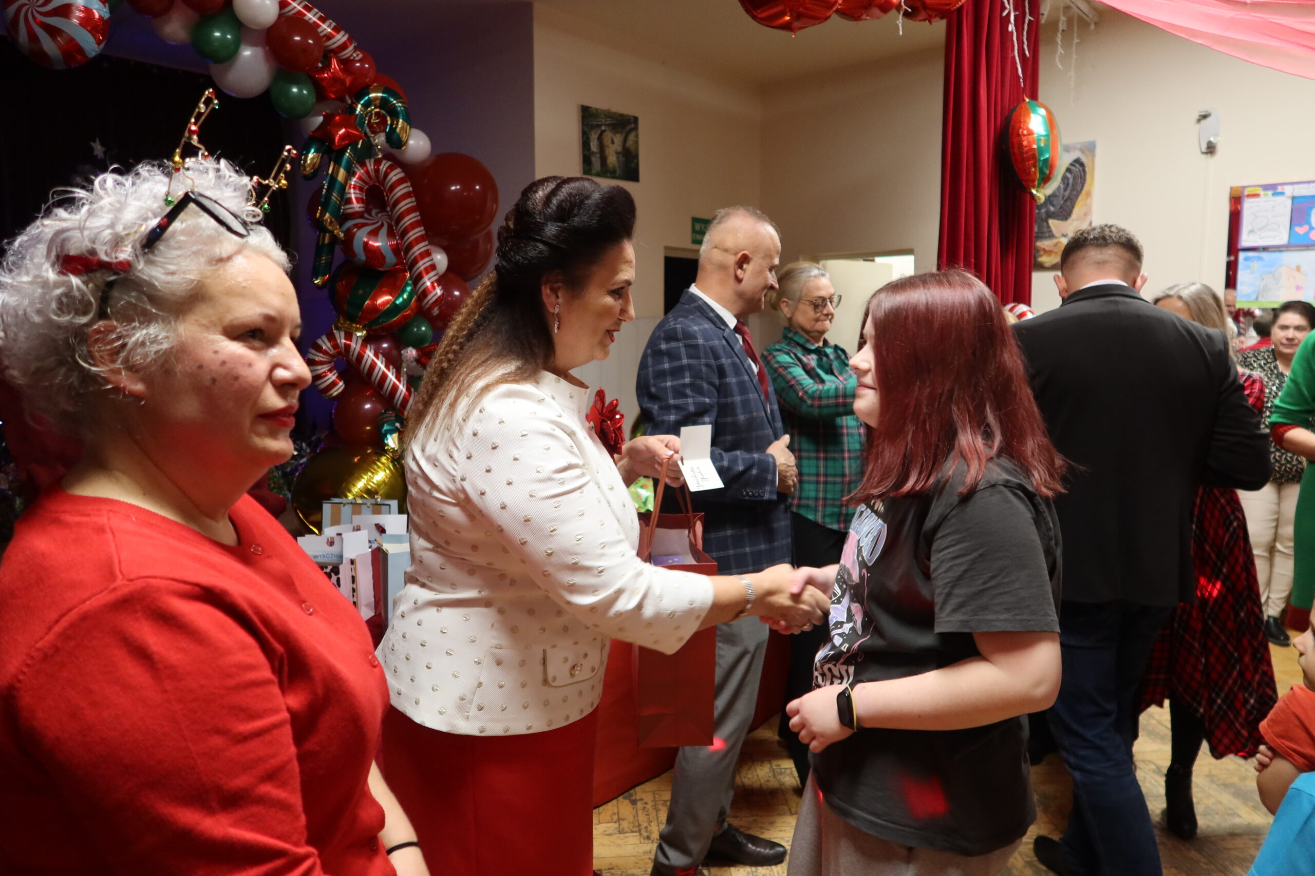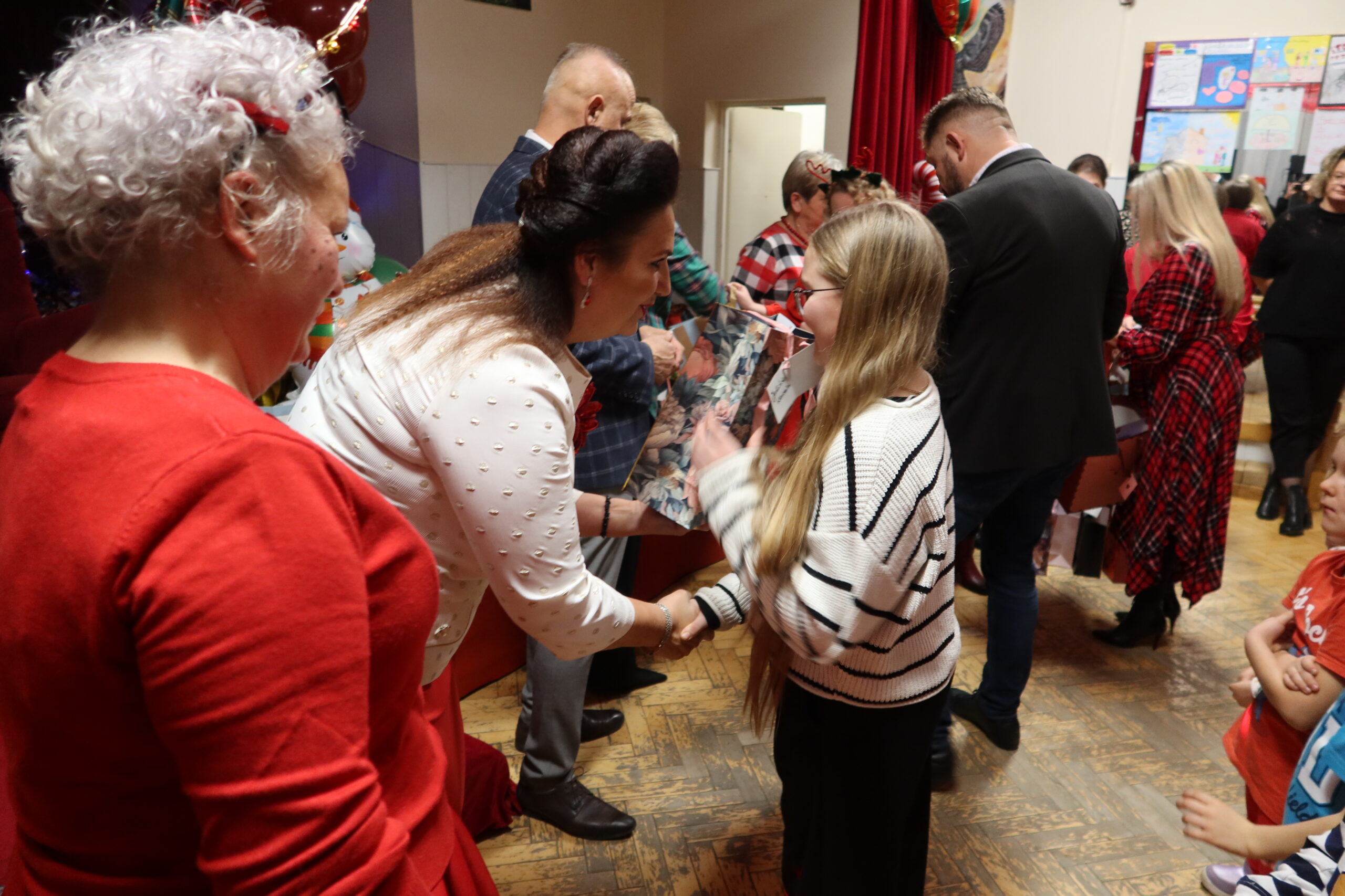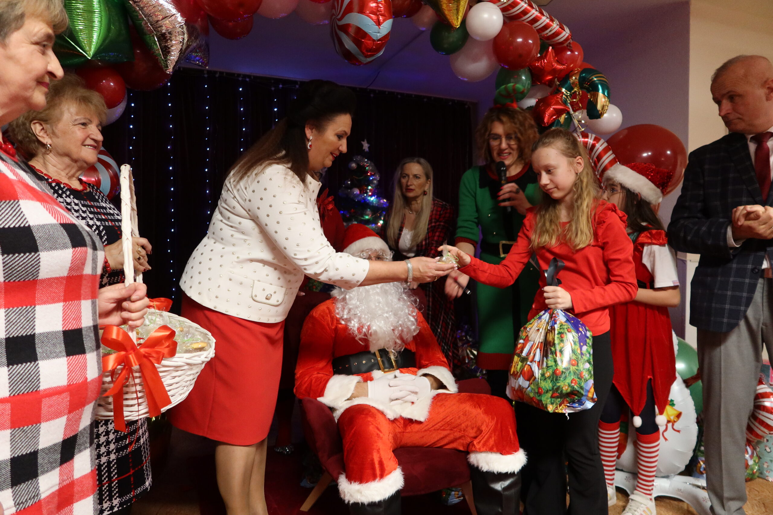 Tegoroczne spotkanie mikołajkowe w Piekoszowie było prawdziwie wyjątkowe. Dzieci czekały w ogromnym skupieniu, aż w drzwiach pojawi się On – brodaty gość z czerwonym workiem z wymarzonymi prezentami. Gdy tylko Święty Mikołaj wszedł do sali, maluchy otoczyły go z radością, a atmosfera od razu stała się jeszcze bardziej świąteczna. Organizatorzy zadbali o moc atrakcji. Każde dziecko mogło napić się gorącej czekolady, zjeść świeżo przygotowane gofry, wziąć udział w animacjach i wspólnej zabawie. Z twarzy najmłodszych nie znikały uśmiechy. To był dzień, który wspaniale połączył dobrą zabawę z ważnym przesłaniem o życzliwości, bezpieczeństwie i budowaniu pięknych relacji. – Mikołajki to jeden z tych dni, na które czekamy cały rok. Widok dzieci biegnących z radością do Mikołaja jest bezcenny. Zawsze zależy nam na tym, żeby w Piekoszowie panowała atmosfera ciepła i życzliwości, dlatego przygotowujemy dla najmłodszych tak wiele atrakcji. Chciałabym życzyć wszystkim dzieciom, aby ten świąteczny czas przyniósł im mnóstwo uśmiechu, spełnienia marzeń i pięknych chwil spędzonych z najbliższymi. Niech zawsze towarzyszy im dobro, przyjaźń i poczucie bezpieczeństwa. Ogromnie się cieszę, że mogliśmy razem rozpocząć ten wyjątkowy okres – mówi burmistrz Teresa Jakubowska.