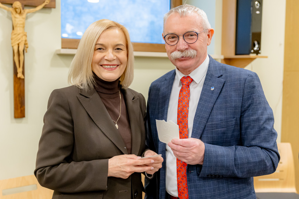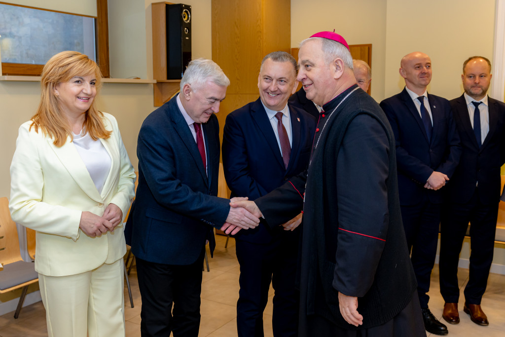 „Siła państwa i jego rozwój zależą w dużej mierze od mądrej i sprawnej pracy samorządów, tak aby dla wszystkich w domu ojczystym starczyło chleba i żeby nikt nie czuł się zapomniany” – te słowa św. Jana Pawła II, wypowiedziane podczas spotkania opłatkowego z Polakami w Rzymie w 1997 roku, od lat stanowią duchowe przesłanie dorocznych spotkań świąteczno-noworocznych w diecezji kieleckiej. Właśnie w tym duchu, w Centrum Duszpasterskim w Kielcach, odbyło się tradycyjne spotkanie parlamentarzystów oraz przedstawicieli samorządów z terenu województwa świętokrzyskiego i diecezji kieleckiej z biskupem kieleckim Janem Piotrowskim. W wydarzeniu uczestniczyli m.in. marszałek województwa świętokrzyskiego Renata Janik, przewodniczący Sejmiku Województwa Andrzej Bętkowski, wicemarszałek województwa świętokrzyskiego Grzegorz Socha, członkowie Zarządu Województwa Anita Koniusz oraz Andrzej Pruś, senator Krzysztof Słoń, poseł Krzysztof Lipiec, a także burmistrzowie, wójtowie, starostowie gmin i powiatów regionu.