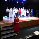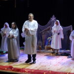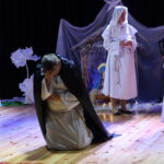 Już od pierwszych minut przedstawienie budowało niezwykły nastrój. Na scenie paliły się świece, a aktorzy w symboliczny sposób przekazali światło w ręce widzów. Płomień wędrował z osoby na osobę, łącząc publiczność i wykonawców we wspólnym doświadczeniu. Ten prosty, ale bardzo wymowny gest stał się jednym z najbardziej poruszających momentów spektaklu.