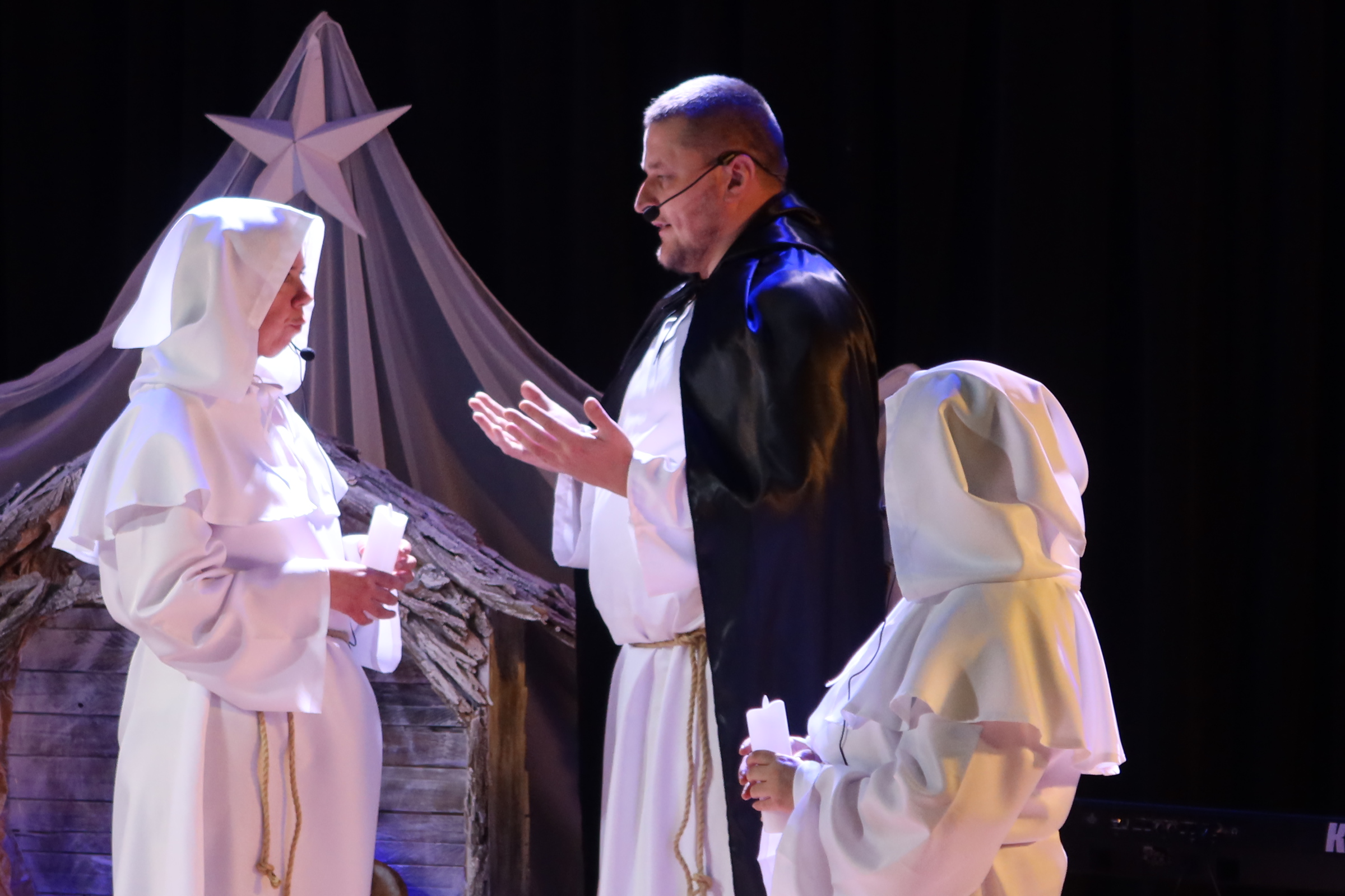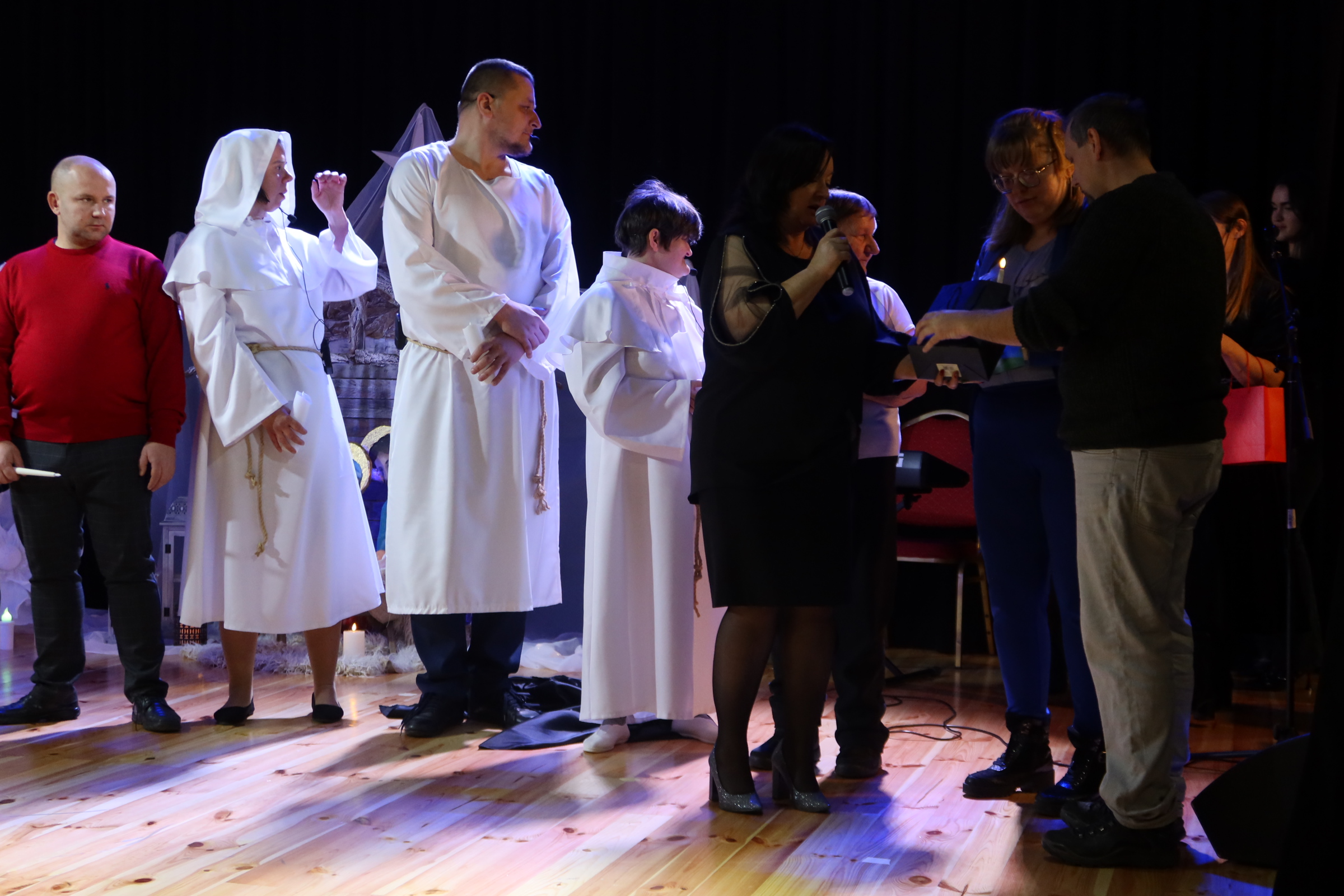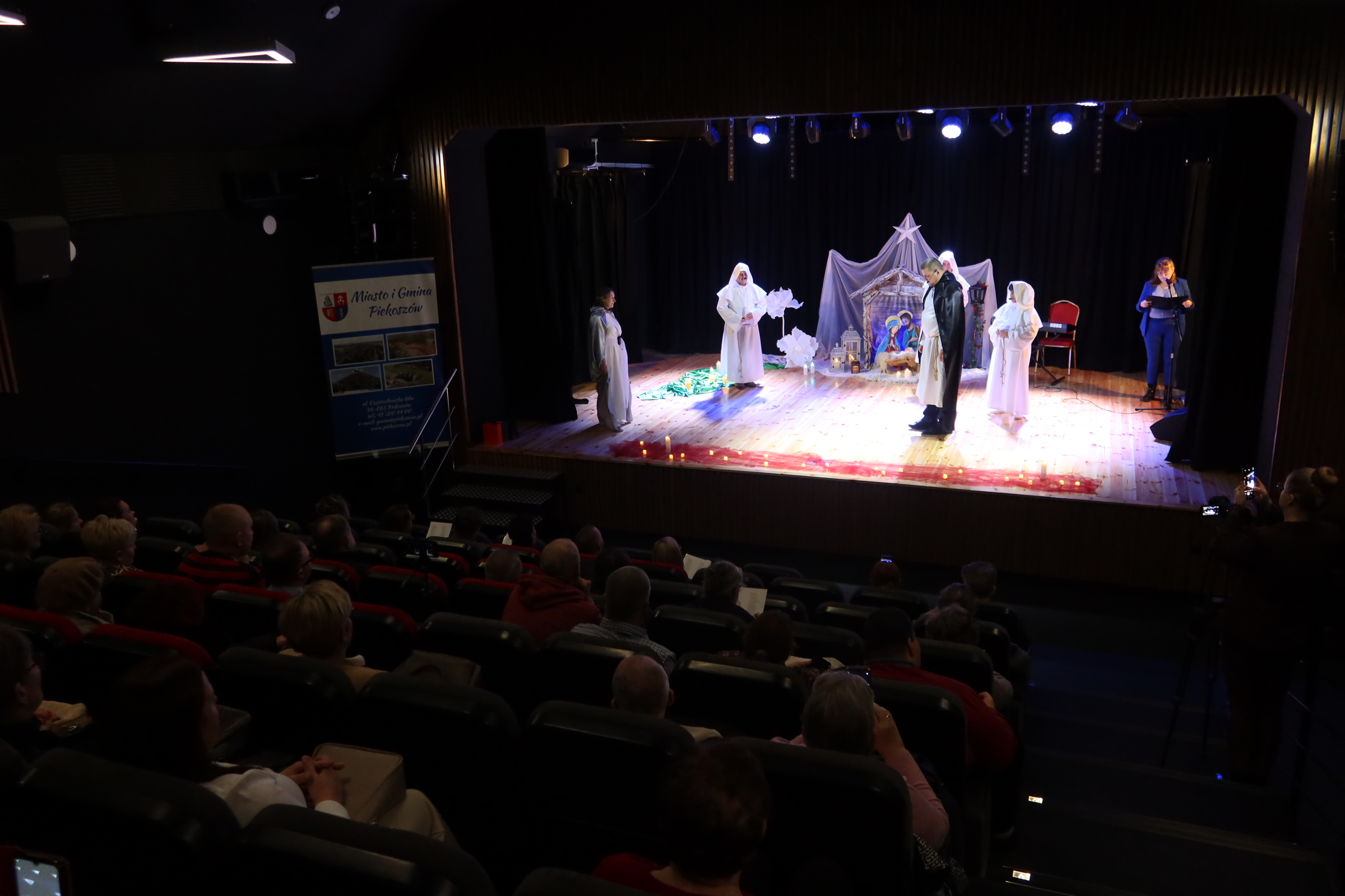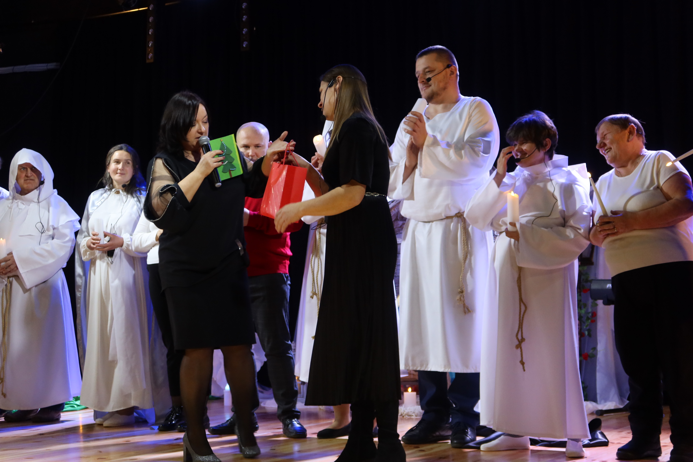 Na deskach sceny Kina „Piksel” w Piekoszowie grupa teatralna Środowiskowego Domu Samopomocy zaprezentowała wyjątkowy, pełen symboliki spektakl, który dogłębnie poruszył publiczność. Przedstawienie było opowieścią o człowieku odbywającym wewnętrzną podróż w poszukiwaniu sensu, o tęsknocie za blaskiem rozświetlającym drogę życia oraz o trzech darach, jakie Bóg składa w ręce człowieka: wierze, nadziei i miłości. Motywem przewodnim spektaklu było światło, znak Bożego Narodzenia, ale także uniwersalny symbol dobra, pokoju i spotkania człowieka z drugim człowiekiem.