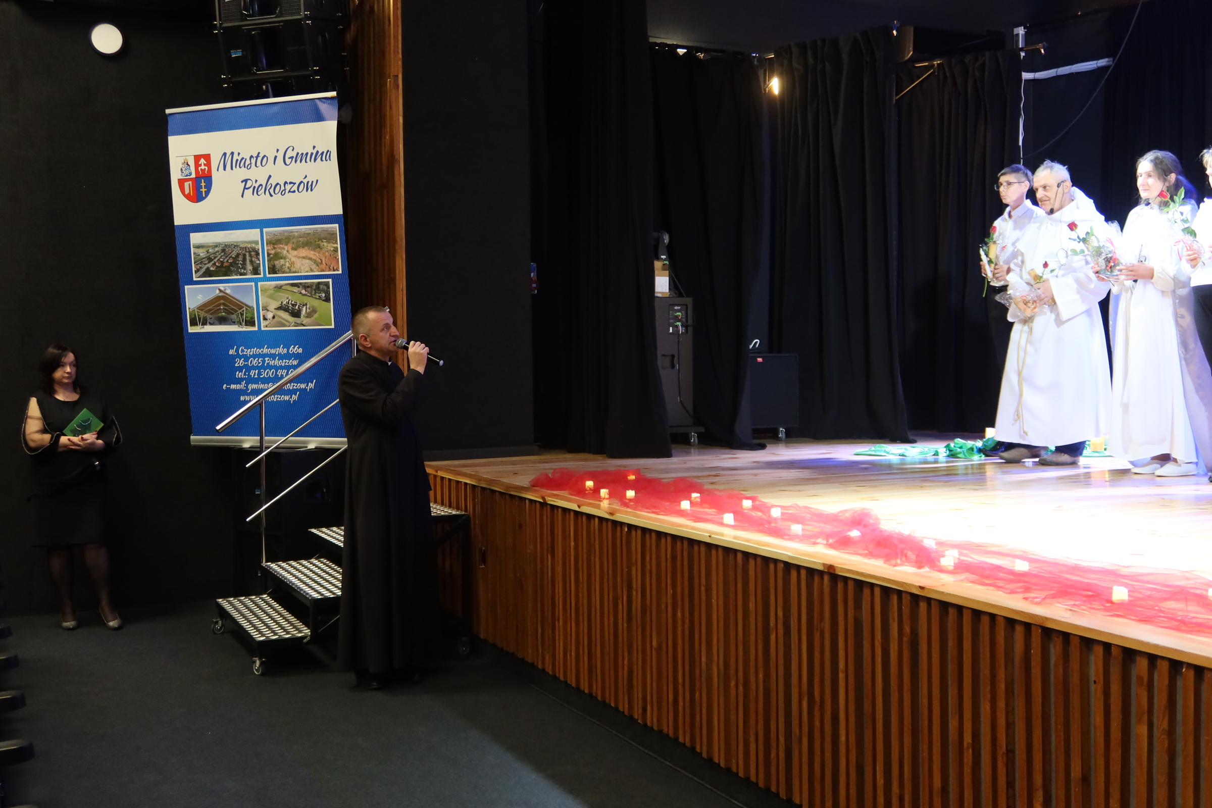 Do symboliki światła nawiązał również proboszcz parafii w Piekoszowie, ks. Wojciech Skorupa. – Światło od zawsze oznacza drogę prowadzącą do Boga. Jest znakiem Jego obecności, miłości i prawdy. To, co dziś zobaczyliśmy na scenie, było pięknym przypomnieniem, że każdy z nas jest powołany, aby nieść to światło dalej. Życzę, aby to światło, które zostało dziś symbolicznie przekazane, zostało zesłane na wszystkich mieszkańców naszej gminy i niech wskazuje nam drogę do Boga, pokoju i wzajemnej życzliwości – powiedział ksiądz proboszcz Wojciech Skorupa.