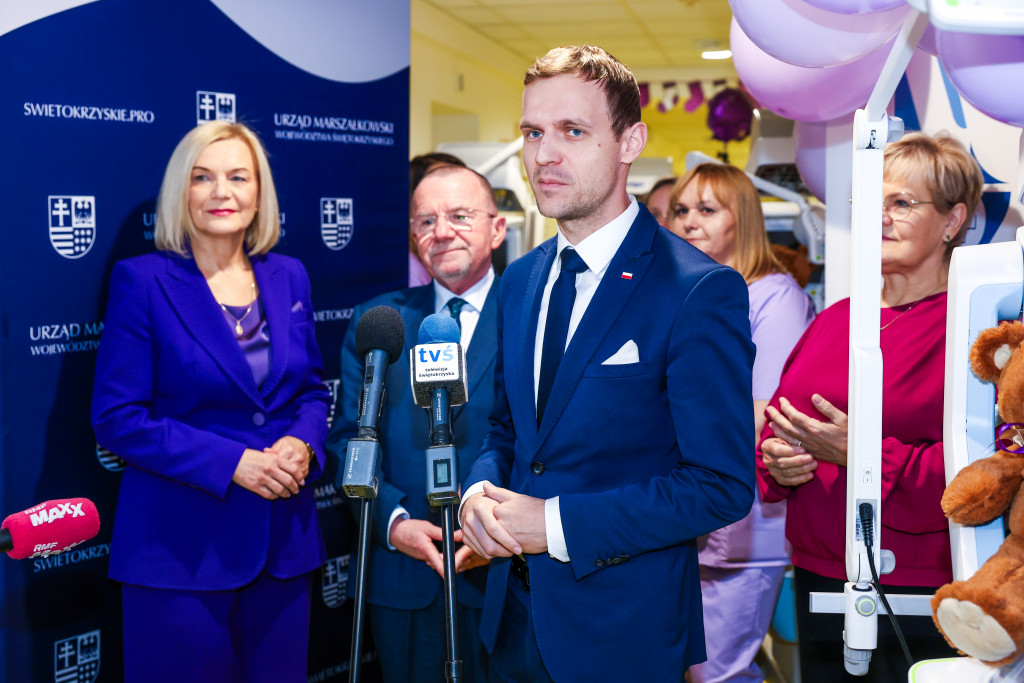 Z okazji Światowego Dnia Wcześniaka, Kliniczny Oddział Neonatologii Wojewódzkiego Szpitala Zespolonego w Kielcach zamienił się w miejsce pełne nadziei. Marszałek Renata Janik i wicemarszałek Marek Bogusławski odwiedzili najmłodszych pacjentów, niosąc ze sobą nie tylko ciepłe słowa i symboliczne upominki, ale przede wszystkim konkretne wsparcie o wartości blisko 600 tys. zł. Podczas konferencji prasowej zaprezentowano najnowocześniejszy sprzęt medyczny, sfinansowany z budżetu województwa, który jest najlepszym prezentem dla tych, którzy walczą o każdy dzień. Dwa hybrydowe inkubatory oraz dwa stanowiska do resuscytacji noworodków są szansą na zdrowe życie i najwyższą jakość opieki.