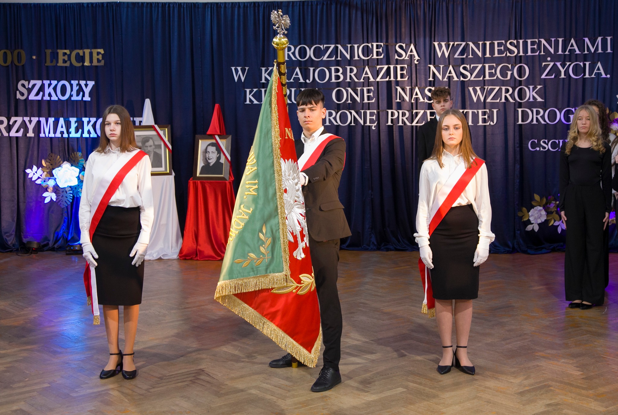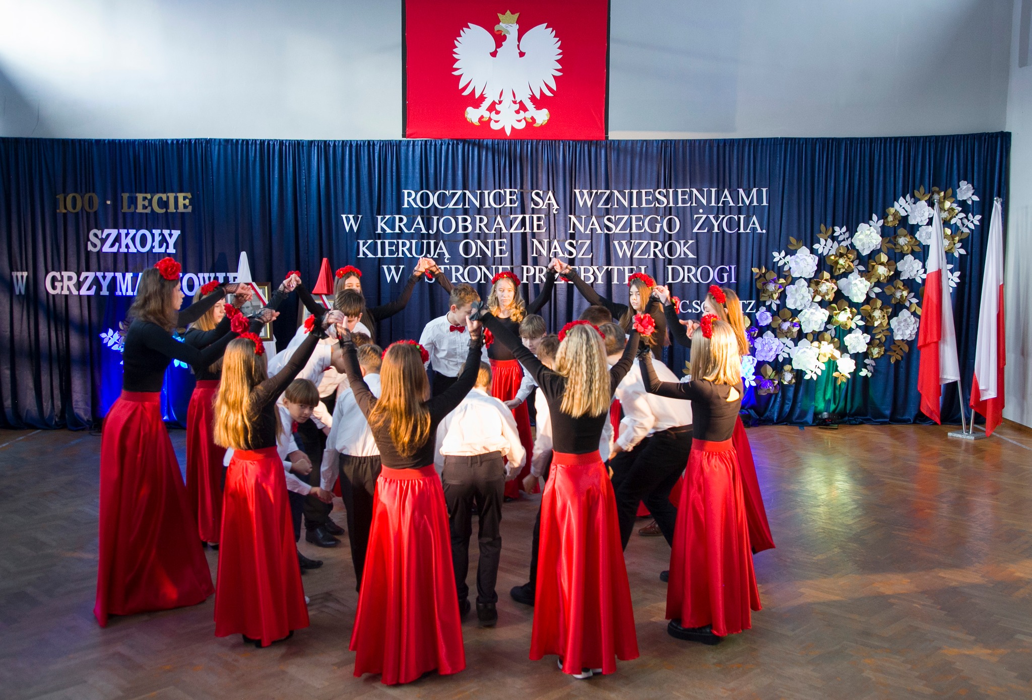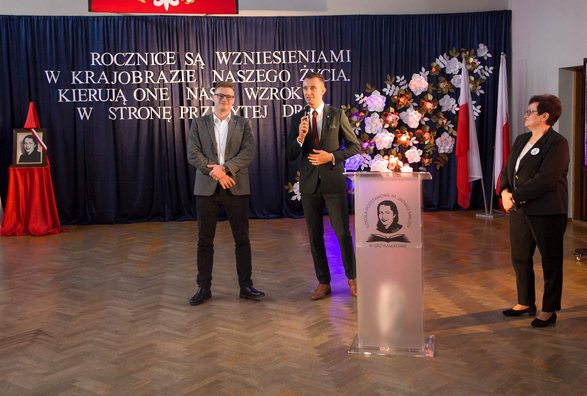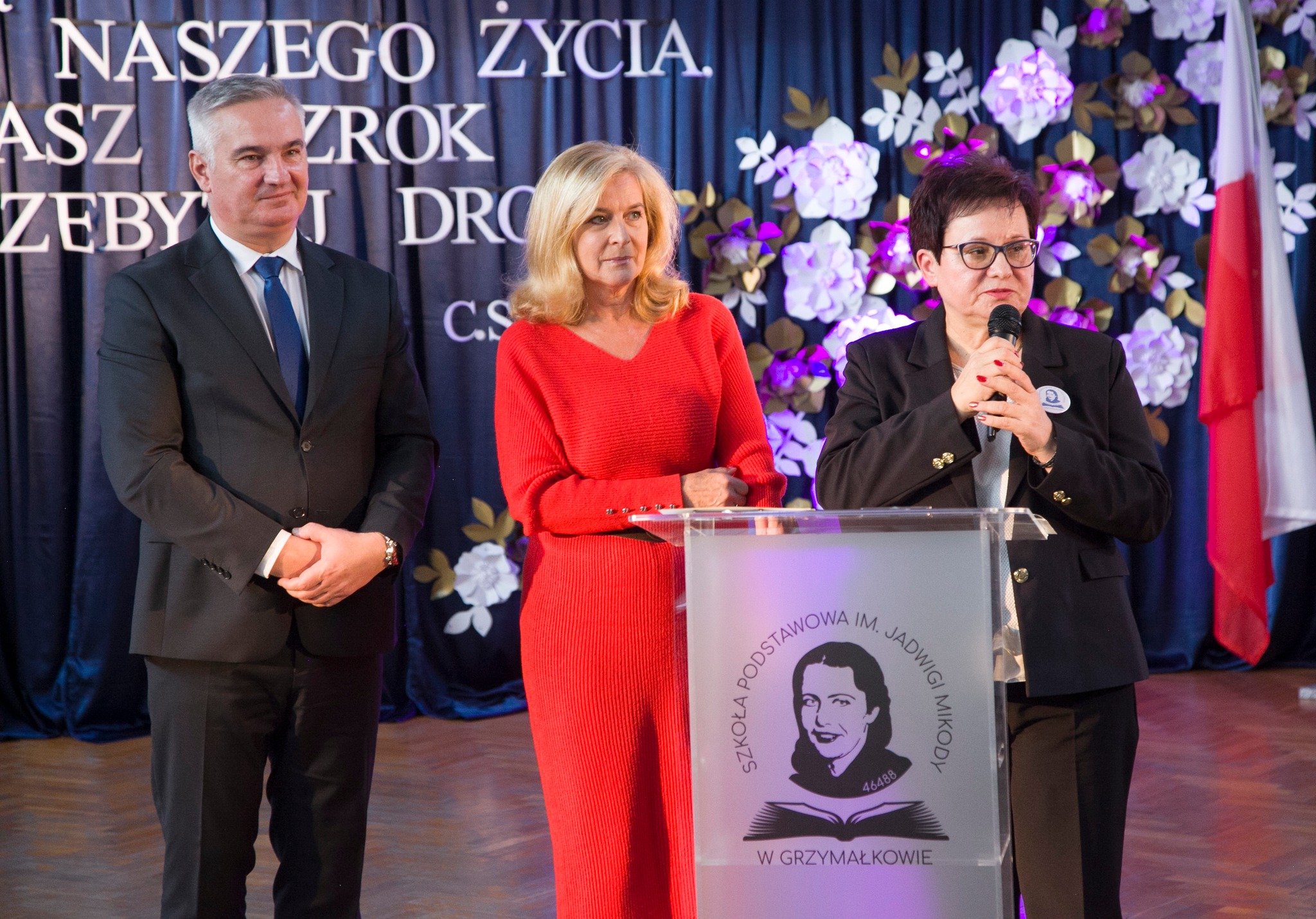 Po części oficjalnej uczniowie zaprezentowali wzruszający montaż słowno–muzyczny. Wiersze, piosenki, prezentacje multimedialne i pięknie wykonane tańce – polonez oraz walc – stworzyły obraz pełen dumy i szacunku dla minionych pokoleń. W prezentacjach przybliżono życie i działalność Jadwigi Mikody oraz Jana Marca, a także najważniejsze momenty ze stuletniej historii szkoły. Uczniowskie występy stały się piękną podróżą przez czas, przypominając, że pamięć o korzeniach jest fundamentem wychowania, poczucia tożsamości i społecznej odpowiedzialności. – Dzisiejsza uroczystość to nie tylko święto naszej patronki, ale również święto całej społeczności Grzymałkowa. Sto lat istnienia szkoły to ogromne dziedzictwo, które zobowiązuje nas do troski o wartości, jakie reprezentowali Jadwiga Mikoda i Jan Marzec. Ich odwaga, oddanie i miłość do młodzieży są dla nas drogowskazem. Jestem wzruszona, widząc, jak nasi uczniowie potrafią z szacunkiem i dojrzałością opowiadać historię miejsca, którego są częścią. To dzień pełen dumy i wdzięczności dla wszystkich, którzy przez ten wiek tworzyli naszą szkołę i nadal ją współtworzą – mówi dyrektor szkoły, Małgorzata Dąbrowska.