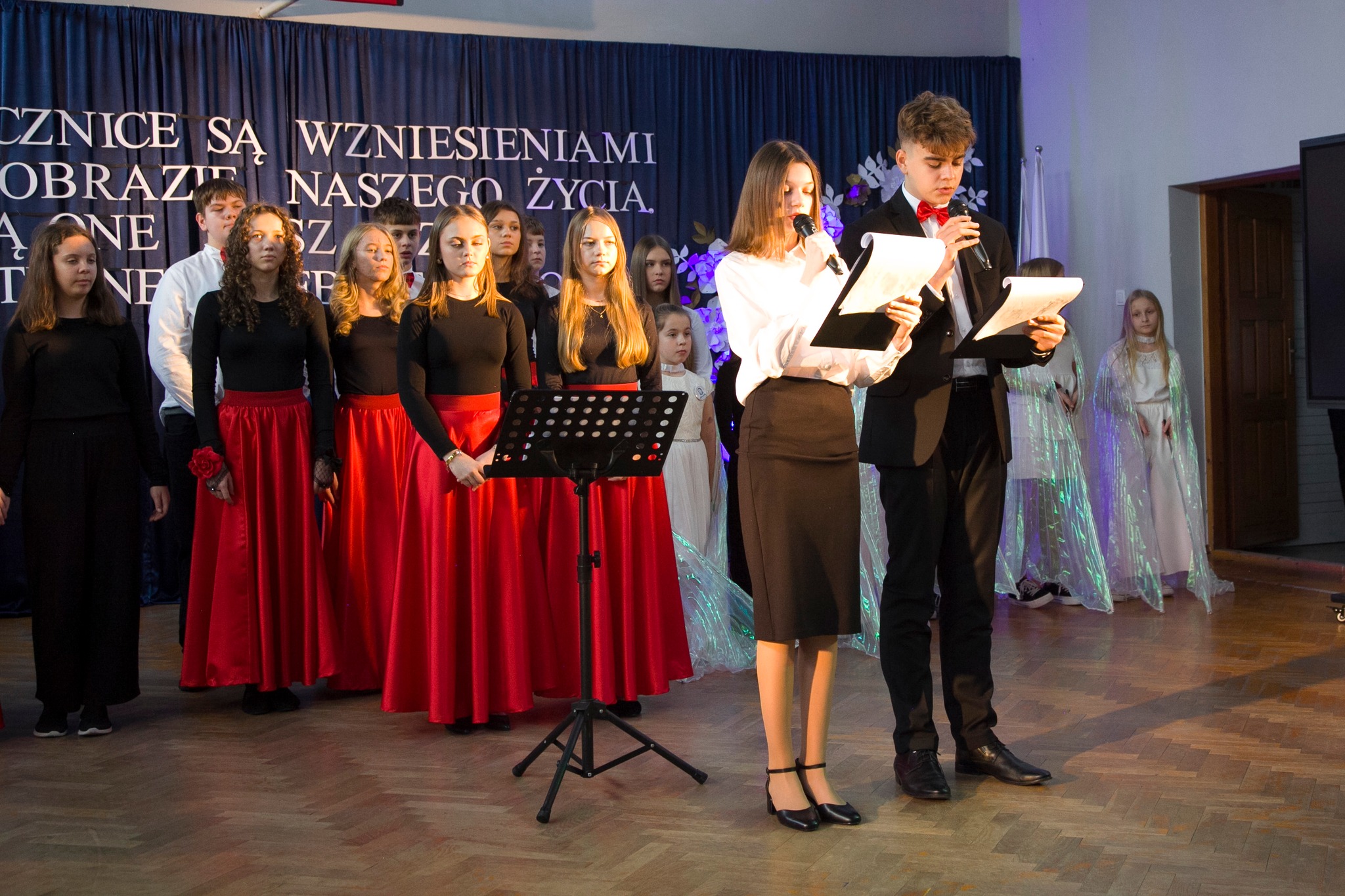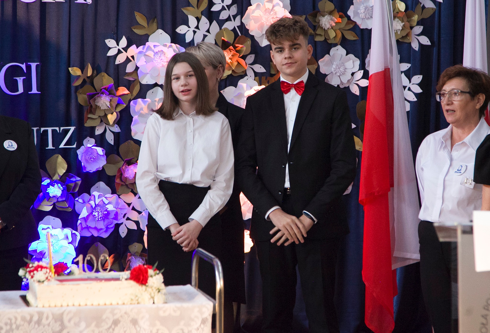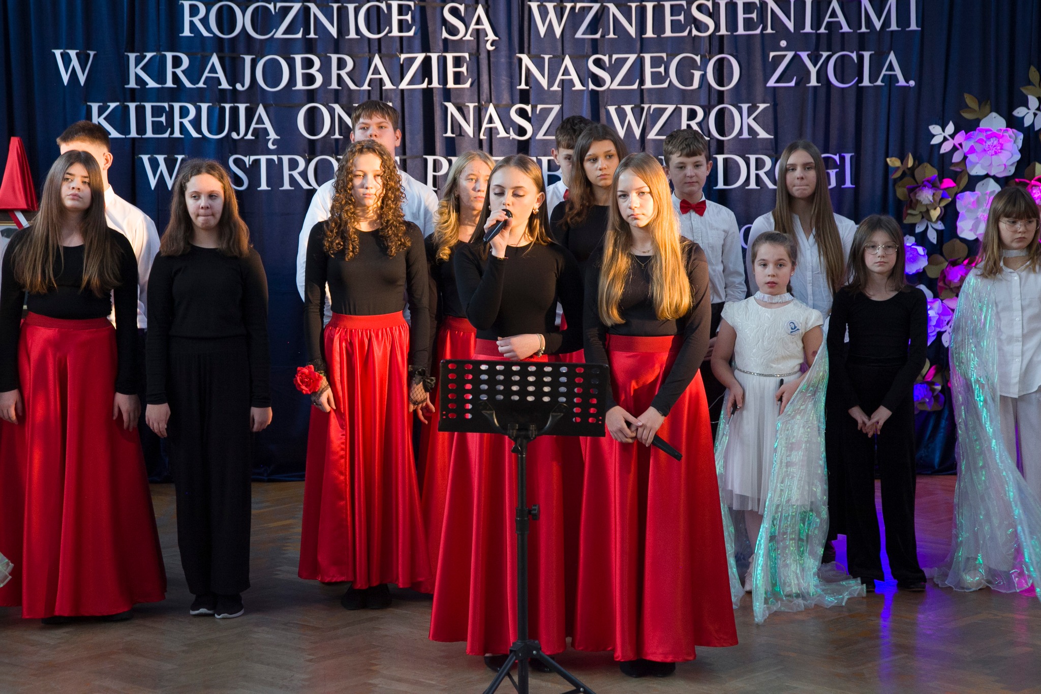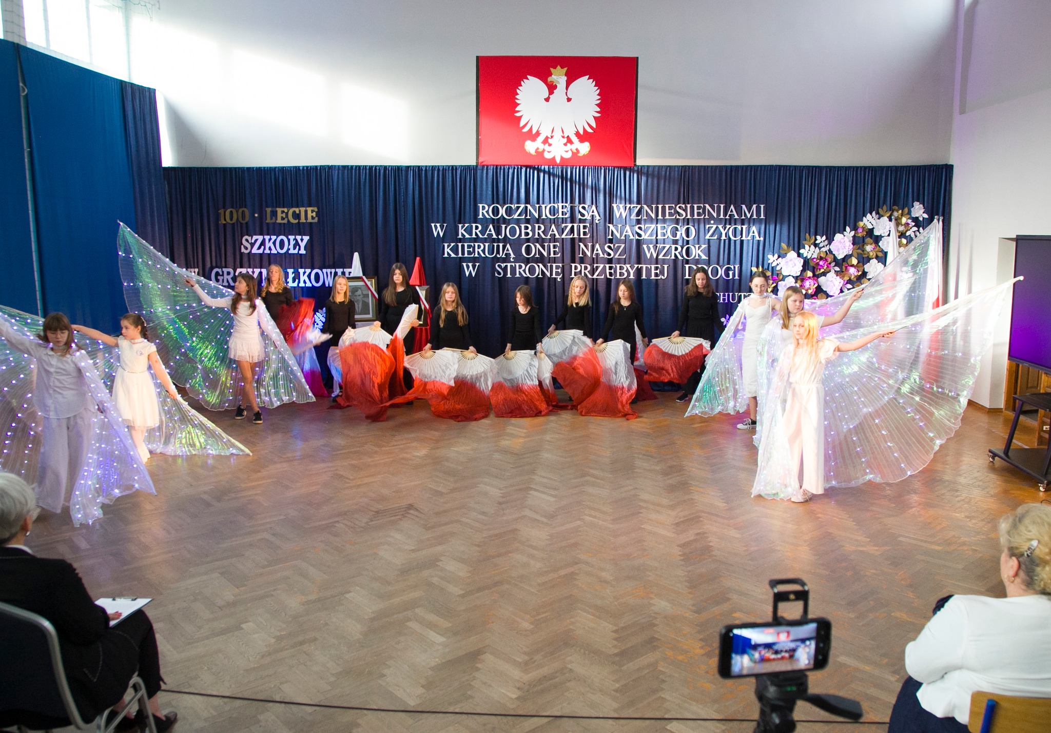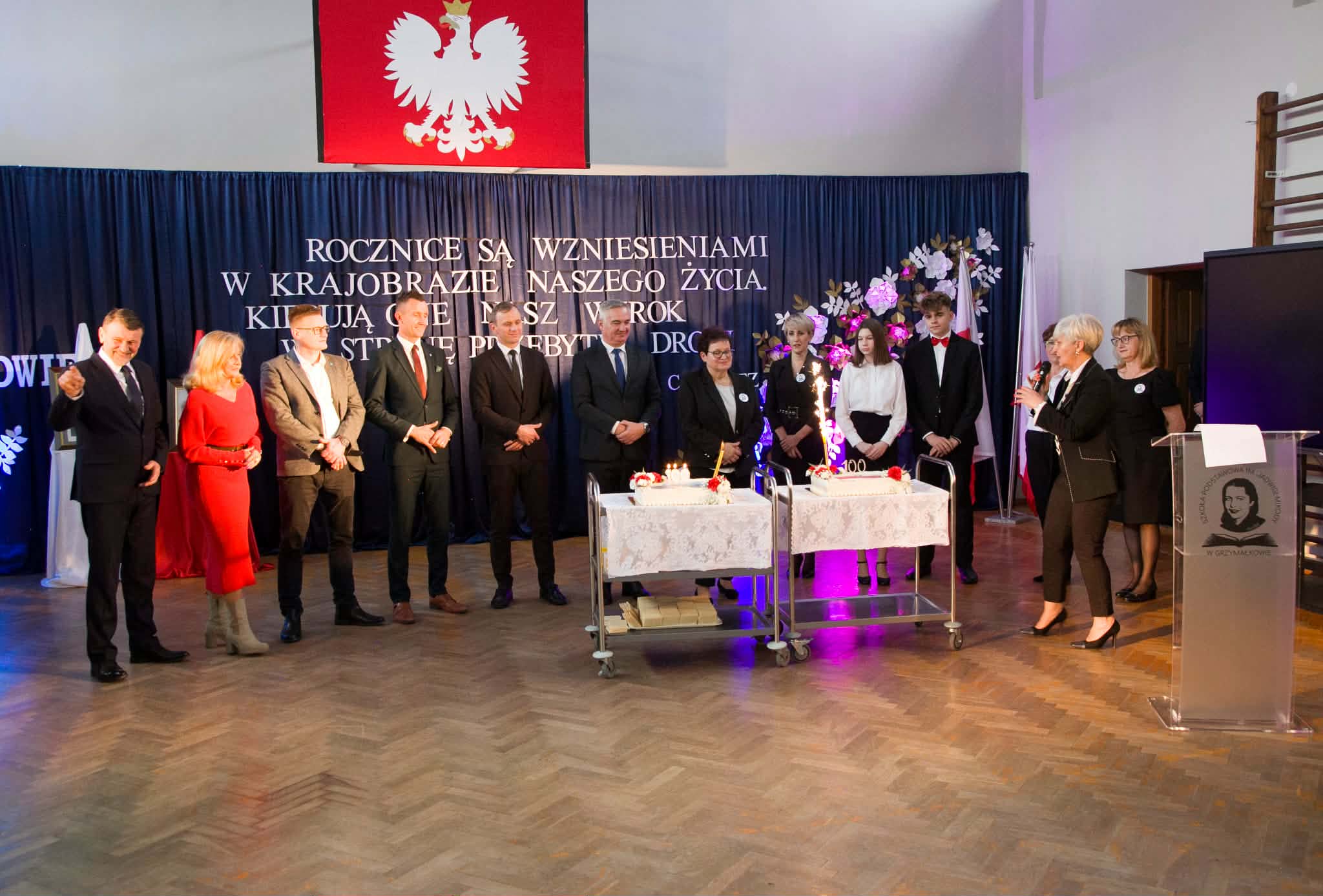 Po części oficjalnej uczniowie zaprezentowali wzruszający montaż słowno–muzyczny. Wiersze, piosenki, prezentacje multimedialne i pięknie wykonane tańce – polonez oraz walc – stworzyły obraz pełen dumy i szacunku dla minionych pokoleń. W prezentacjach przybliżono życie i działalność Jadwigi Mikody oraz Jana Marca, a także najważniejsze momenty ze stuletniej historii szkoły. Uczniowskie występy stały się piękną podróżą przez czas, przypominając, że pamięć o korzeniach jest fundamentem wychowania, poczucia tożsamości i społecznej odpowiedzialności. – Dzisiejsza uroczystość to nie tylko święto naszej patronki, ale również święto całej społeczności Grzymałkowa. Sto lat istnienia szkoły to ogromne dziedzictwo, które zobowiązuje nas do troski o wartości, jakie reprezentowali Jadwiga Mikoda i Jan Marzec. Ich odwaga, oddanie i miłość do młodzieży są dla nas drogowskazem. Jestem wzruszona, widząc, jak nasi uczniowie potrafią z szacunkiem i dojrzałością opowiadać historię miejsca, którego są częścią. To dzień pełen dumy i wdzięczności dla wszystkich, którzy przez ten wiek tworzyli naszą szkołę i nadal ją współtworzą – mówi dyrektor szkoły, Małgorzata Dąbrowska.