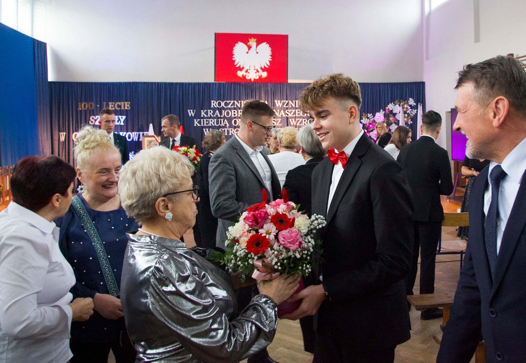 Życzenia z okazji jubileuszu placówki złożył całej społeczności szkolnej wójt gminy Mniów, Piotr Wilczak. – Dziękuję za zaproszenie i gratuluję tak wspaniałego jubileuszu. Sto lat tradycji, wychowania i służby lokalnej społeczności to wartość, którą trudno przecenić. Ukłony za wspaniały montaż słowno–muzyczny, który przypomniał nam historię szkoły oraz przybliżył niezwykłą postać patronki, Jadwigi Mikody. To był dzień pełen dumy, wzruszeń i refleksji nad tym, jak ogromny wkład w rozwój naszej gminy ma ta placówka. Gratuluję całej społeczności szkolnej i życzę, aby kolejne lata były czasem rozwoju, radości i dalszych sukcesów – gratulował wójt gminy Mniów, Piotr Wilczak. Gratulacje i słowa uznania przekazał także zastępca wójta Michał Milcarz oraz radni powiatu kieleckiego, Michał Sipika i Łukasz Woźniak, wiceprzewodniczący Rady Powiatu.