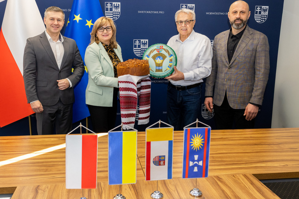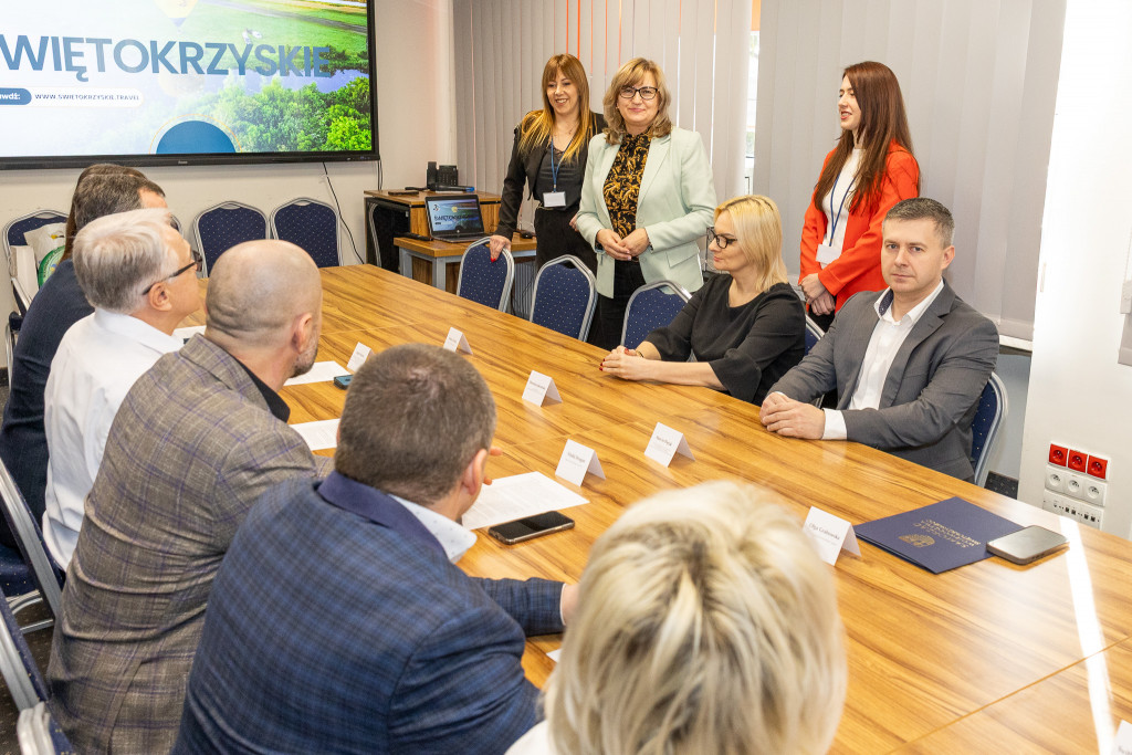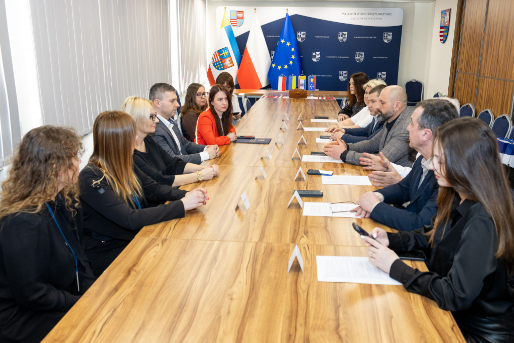 Delegacja z obwodu winnickiego przebywa w regionie świętokrzyskim od 4 do 7 marca br. Podczas spotkania (6 marca) w siedzibie Urzędu Marszałkowskiego członek Zarządu Województwa i prezes ROT Anita Koniusz, radny Sejmiku Województwa i dyrektor ROT Marcin Piętak oraz zastępca dyrektora Departamentu Edukacji, Kultury i Sportu Urzędu Marszałkowskiego Dorota Łukomska przedstawili ofertę kulturalną i sportową serca Gór Świętokrzyskich, unikalne walory przyrodnicze i historyczne oraz najważniejsze produkty turystyczne regionu.