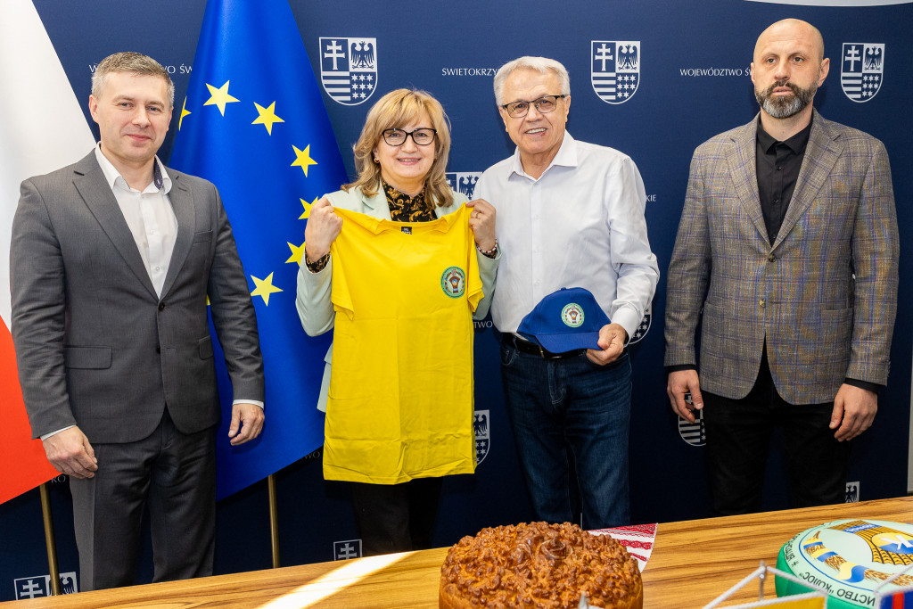 W regionie świętokrzyskim przebywa delegacja samorządowców oraz przedstawicieli organizacji sportowych z Ukrainy. Goście z Obwodu Winnickiego spotkali się dziś w siedzibie naszego Urzędu z członkiem Zarządu Województwa i prezes Regionalnej Organizacji Turystycznej Województwa Świętokrzyskiego Anitą Koniusz oraz radnym Sejmiku Województwa i dyrektorem ROT Marcinem Piętakiem, by zacieśniać więzi oraz poznawać potencjał turystyczny, kulturalny i sportowy naszego regionu. W spotkaniu uczestniczyła także zastępca dyrektor Departamentu Edukacji, Kultury i Sportu Urzędu Marszałkowskiego, Dorota Łukomska.