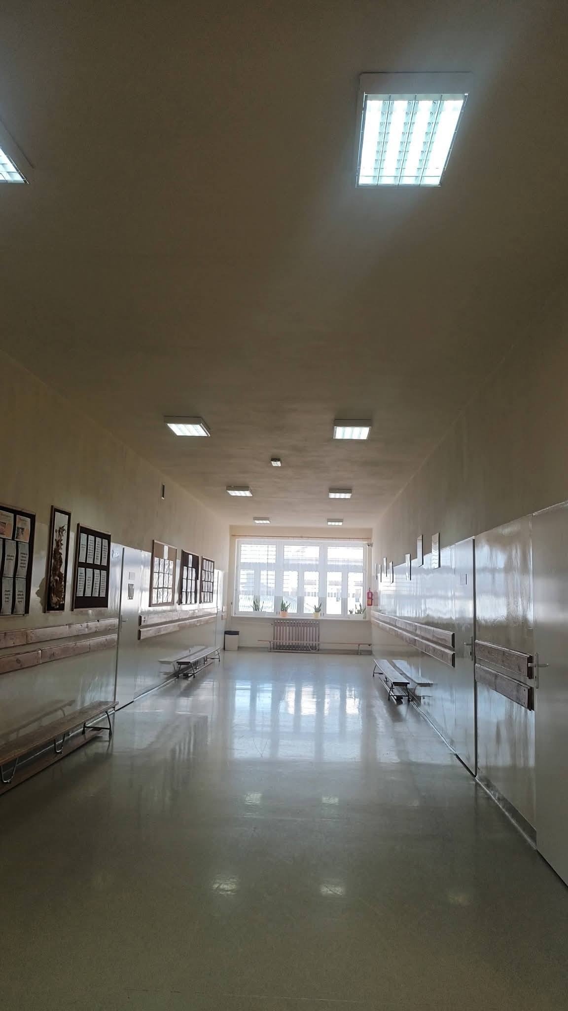 Korytarze oraz sale lekcyjne w głównym budynku zostały wyposażone w nowe, energooszczędne oświetlenie, które znacząco poprawiło komfort pracy i nauki. Wszystkie drzwi oznaczono jednolitymi tabliczkami informacyjnymi, co uporządkowało przestrzeń i ułatwiło poruszanie się po szkole. W obu salach na poddaszu zamontowano plisy chroniące pomieszczenia przed nadmiernym nasłonecznieniem. Dzięki temu zajęcia mogą odbywać się w bardziej komfortowych warunkach, niezależnie od pogody. W ostatnim czasie, przy dobrej współpracy z samorządem gminy, odświeżona została także szatnia dla dzieci oraz magazynek sportowy przy hali. To kolejne działania, które wpływają na estetykę i funkcjonalność szkolnej przestrzeni.