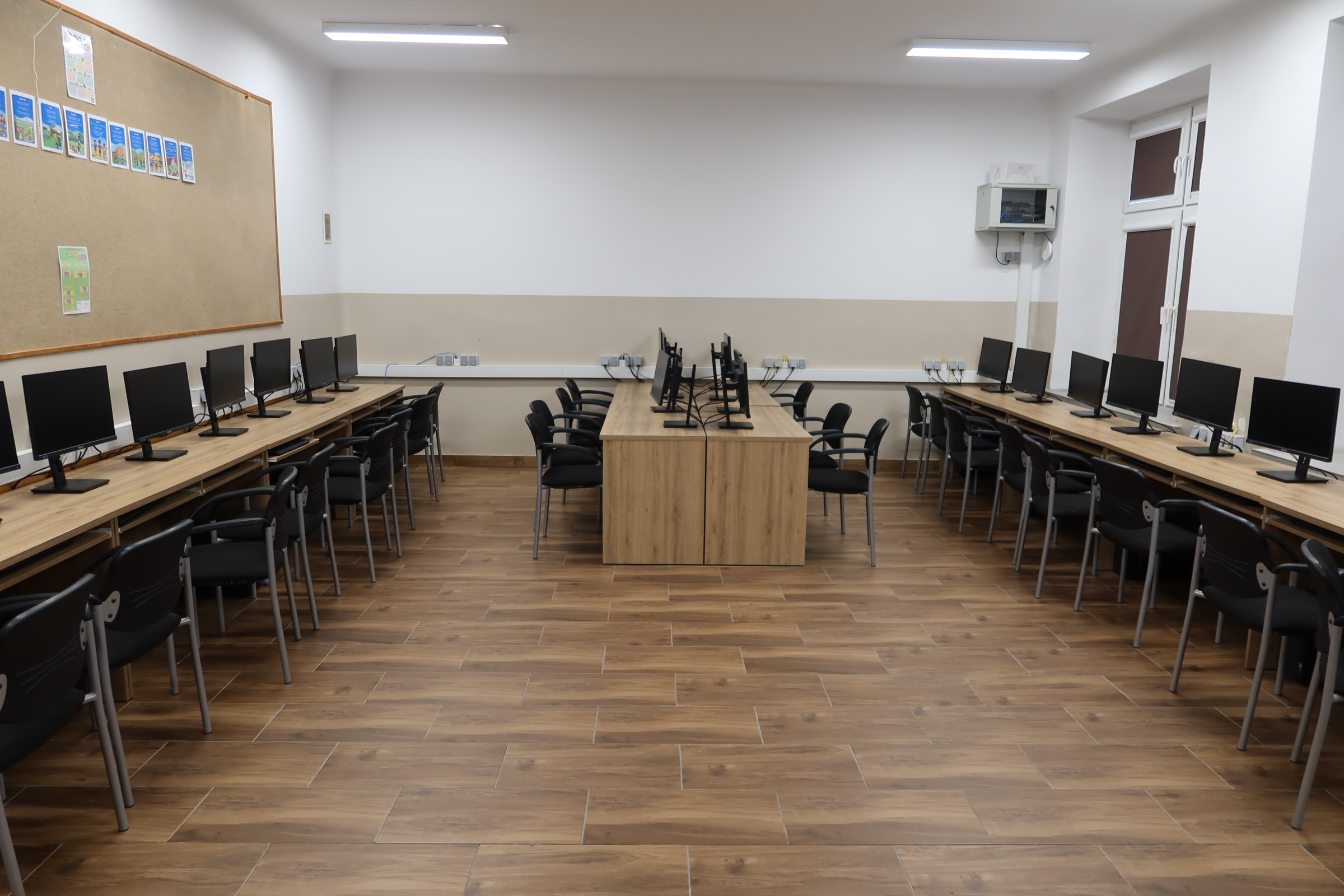 Drugim ważnym elementem inwestycji było utworzenie nowej pracowni komputerowej, która została wykonana w sierpniu ubiegłego roku. Zakres prac obejmował zakup i montaż urządzeń niezbędnych do prawidłowego funkcjonowania wewnętrznej sieci LAN, a także wykonanie dodatkowej sieci elektrycznej zasilającej nową salę.