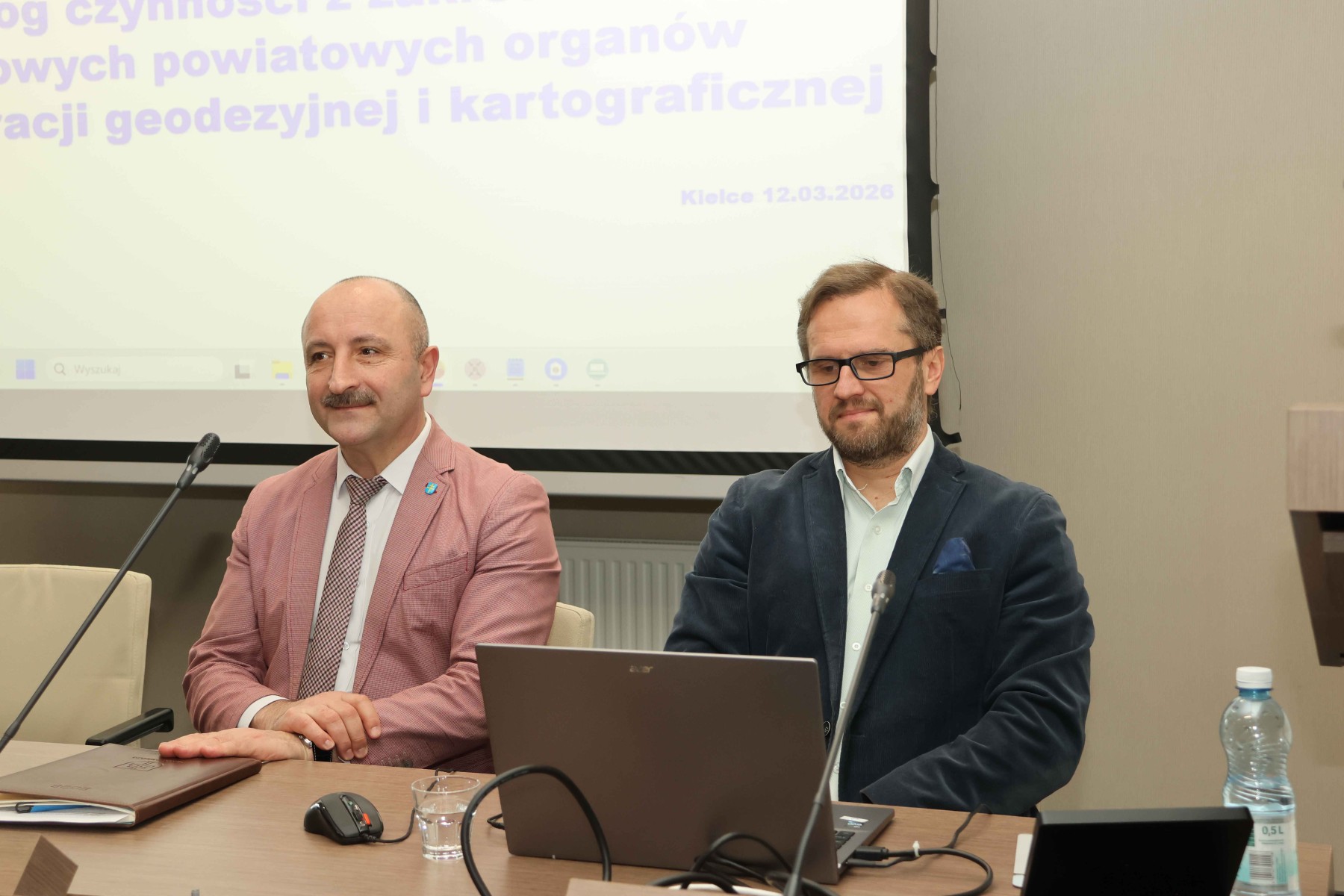 Instruktaż wykorzystywania nowego oprogramowania przeprowadził Tomasz Michalik, przedstawiciel Firmy GEOBiD. W spotkaniu wziął udział Świętokrzyski Wojewódzki Inspektor Nadzoru Geodezyjnego i Kartograficznego Andrzej Reczyński.