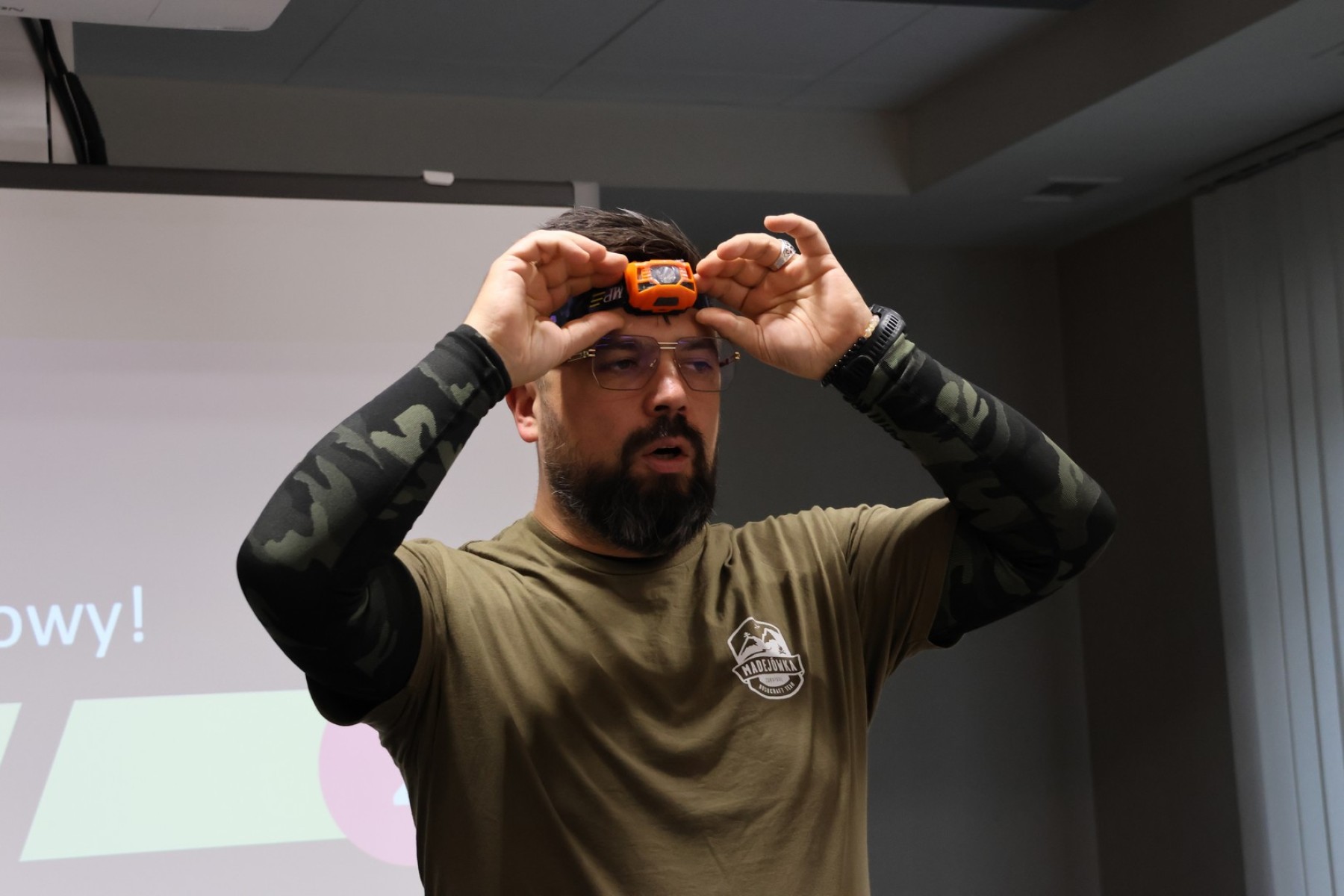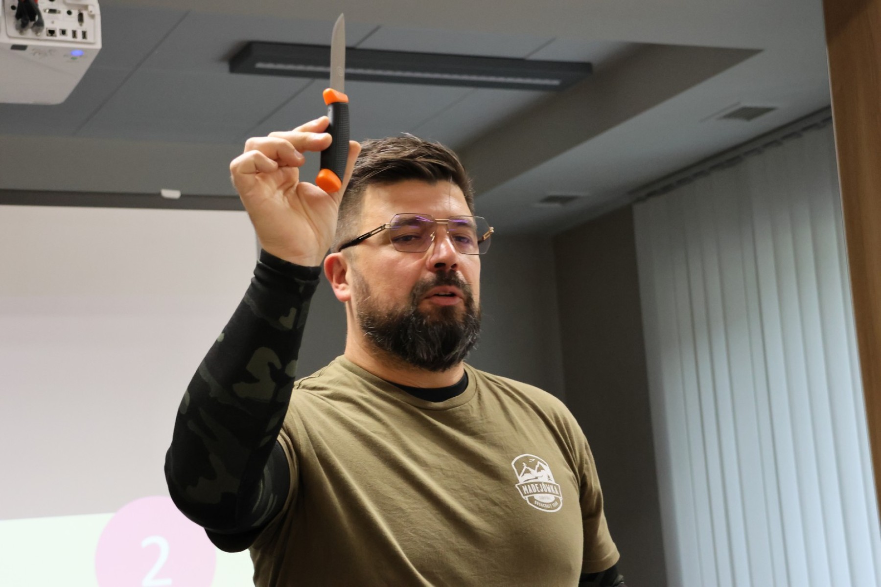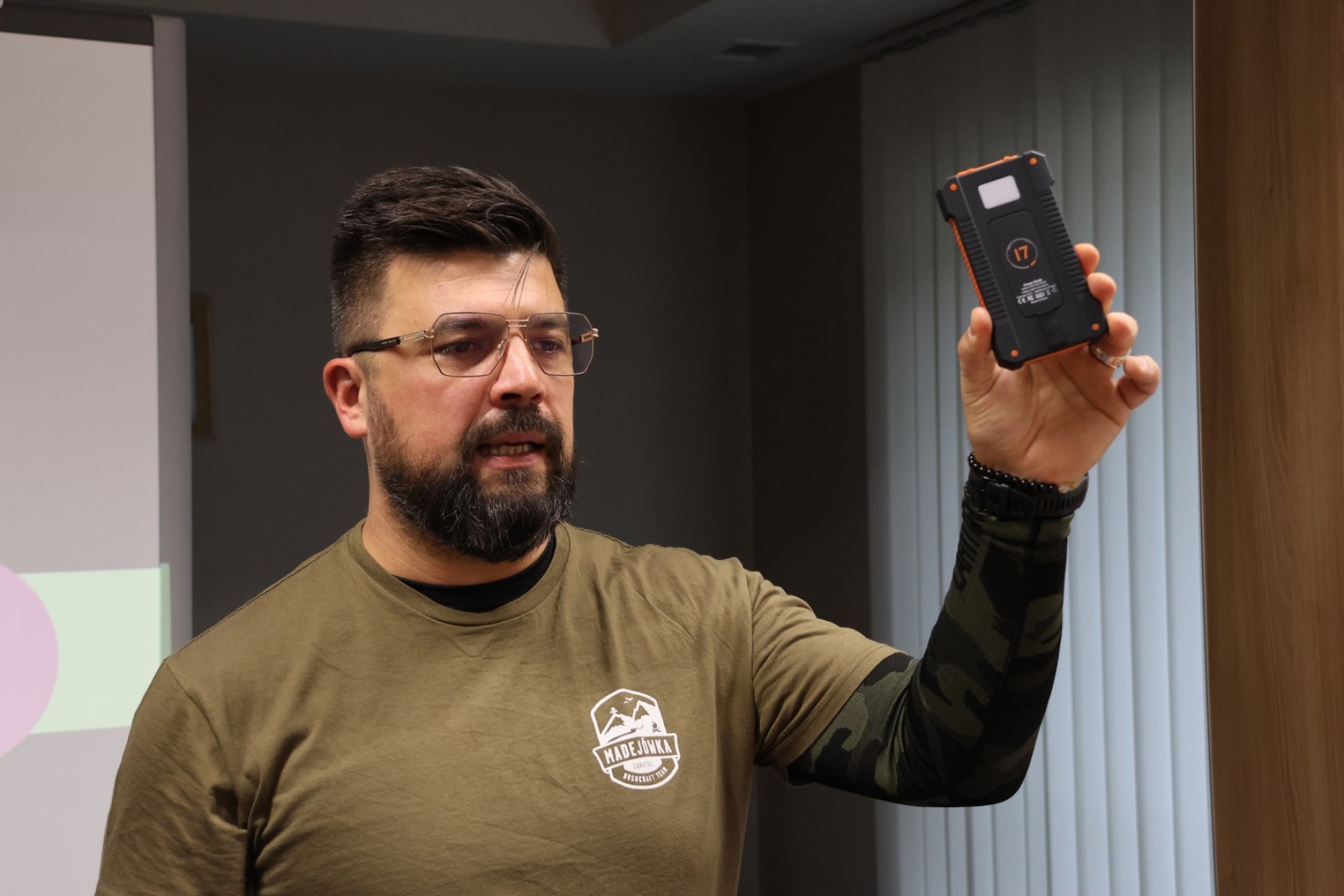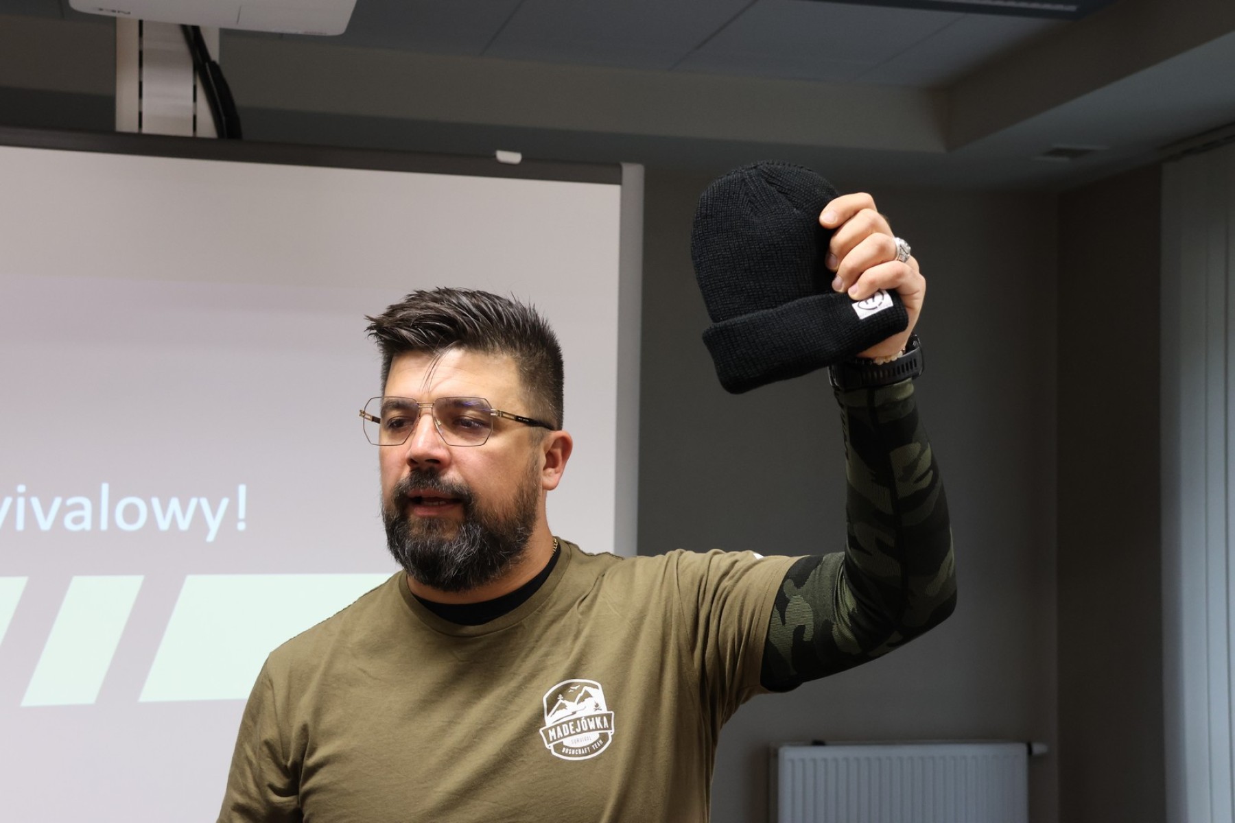 Michał Madej – prezes Stowarzyszenia MADEJÓWKA Bushcraft & Survival opowiadał o obronie cywilnej i survivalu w kontekście codziennego życia seniora.