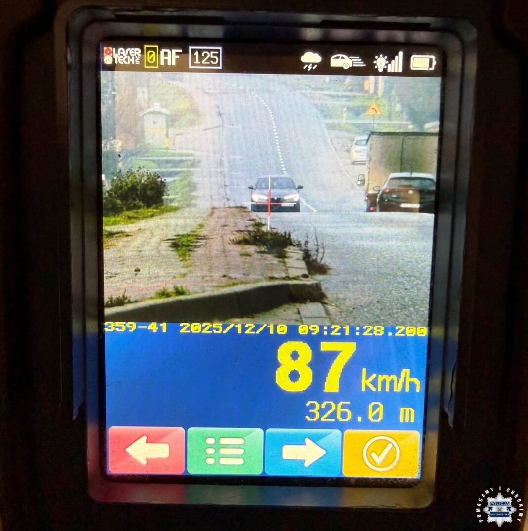 W środowy poranek funkcjonariusze Wydziału Ruchu Drogowego Komendy Miejskiej Policji w Kielcach w Brzezinach kontrolowali prędkość z jaką poruszają się kierujący jadący drogą wojewódzką 763. Mundurowi zatrzymali do kontroli drogowej Alfę Romeo, którą kierował 41-letni mieszkaniec Chęcin. Mężczyzna przekroczył dopuszczalną prędkość o 37 km/h. Jak się okazało, nie było to jedynym przewinieniem kierującego włoskim autem – mężczyzna ma aktywny zakaz kierowania pojazdami mechanicznymi obowiązujący do 2028 roku.