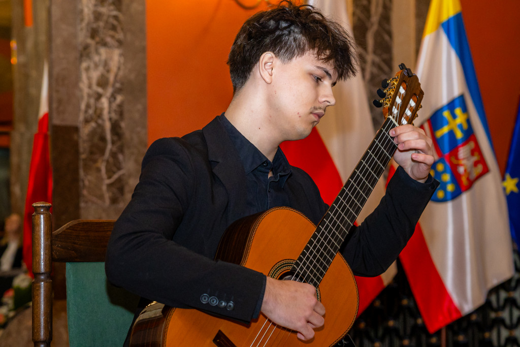 – Maciej Jakubczyk (laureat ogólnopolskich konkursów gitarowych, który w przerwie uroczystości zaprezentował Allegro moderato Antona Diabellego),