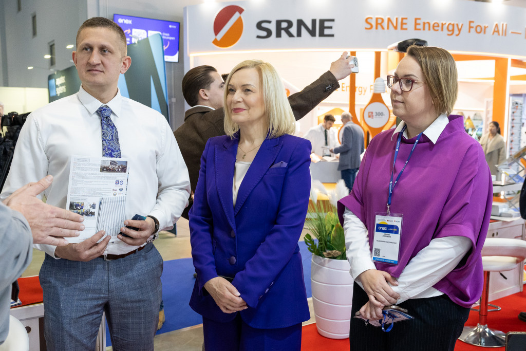 Podczas XXVIII Międzynarodowych Targów Energetyki i Elektrotechniki oraz Odnawialnych Źródeł Energii ENEX w Kielcach Marszałek Województwa Świętokrzyskiego Renata Janik odwiedziła stoisko regionalne, gdzie prezentowana jest oferta gospodarcza województwa oraz prowadzone są rozmowy z przedstawicielami międzynarodowej misji inwestycyjnej z branży zrównoważonego rozwoju energetycznego.
