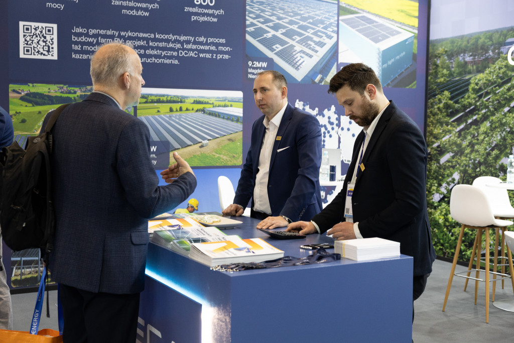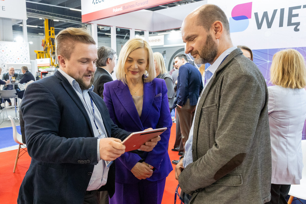 Na stoisku województwa świętokrzyskiego marszałek Renata Janik rozmawiała z przedstawicielami firm uczestniczących w zagranicznej misji gospodarczej. Wśród nich są reprezentanci przedsiębiorstw z Kanady, Wielkiej Brytanii, Serbii, Kenii, Etiopii oraz Demokratycznej Republiki Konga – działających w obszarach odnawialnych źródeł energii, infrastruktury, magazynowania energii, zielonego wodoru oraz nowoczesnego budownictwa. Stoisko regionu było miejscem prezentacji potencjału inwestycyjnego i gospodarczego Świętokrzyskiego.