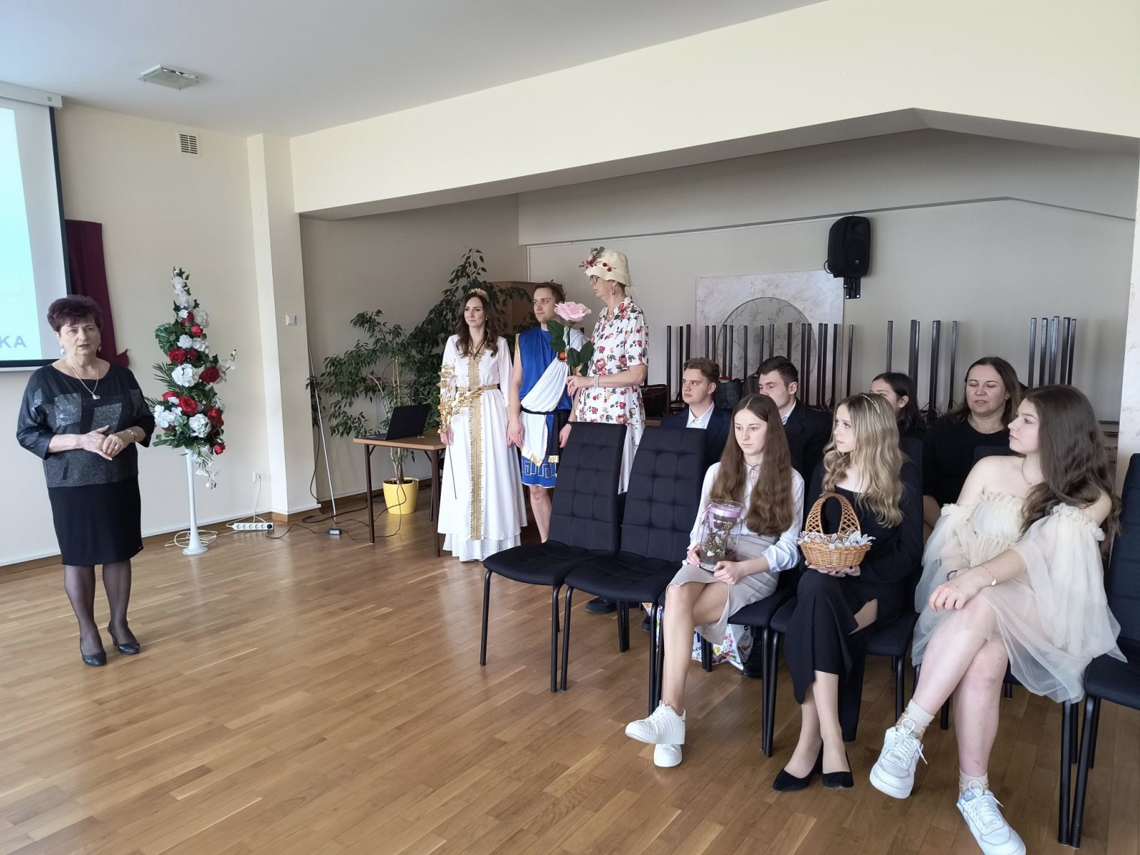Obchody tegorocznego Tygodnia Kultury w PZS w Chęcinach zakończyła prezentacji wybranej postaci literackiej z dowolnej lektury. Uczniowie zadbali o charakteryzację, przebranie, choreografię, a publiczność – tegoroczni maturzyści – bezbłędnie rozpoznała: Kreona, Balladynę, Alinę, księdza Piotra, Jacka Soplicę, Karolinę Szarłatowiczównę, Szymona Gajowca, Cezarego Barykę, postacie z „Małego Księcia”. Pokaz zainicjowali nauczyciele poloniści, którzy którzy wcielili w bohaterów mitologicznych.