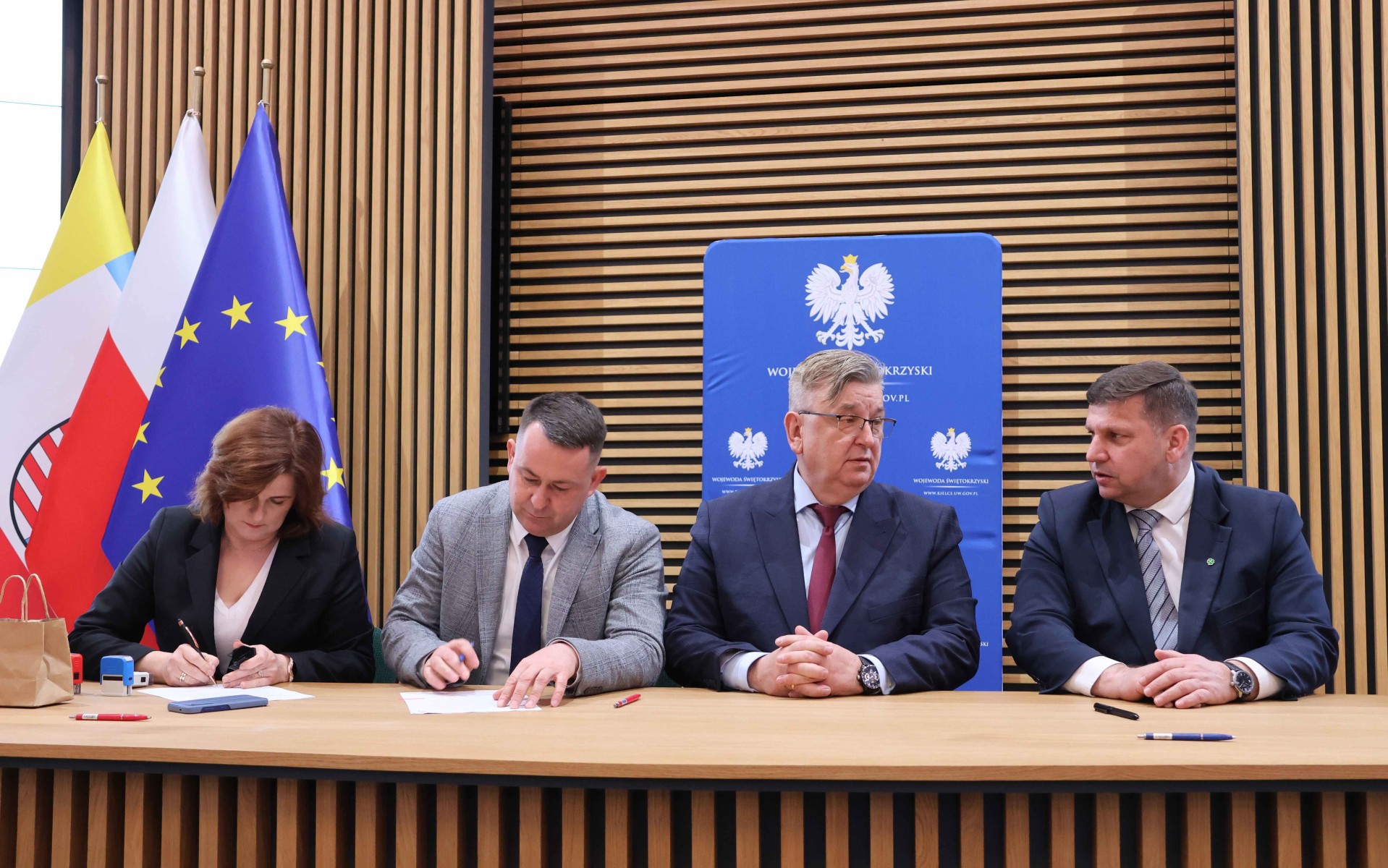 Co najmniej 46 opiekunów osób niepełnosprawnych w powiecie kieleckim zostanie objętych wsparciem w ramach programu „Opieka wytchnieniowa: edycja 2026”. Starosta kielecki Tomasz Pleban, członek Zarządu Powiatu Cezary Majcher i Skarbnik Powiatu Edyta Drążkiewicz podpisali dziś z wicewojewodą Michałem Skotnickim umowę na wsparcie powiatu z Funduszu Solidarnościowego kwotą ponad 585 tys. złotych.