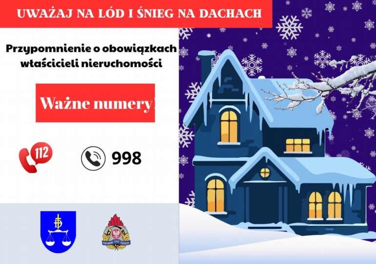 W związku z intensywnymi opadami śniegu Rządowe Centrum Bezpieczeństwa oraz Państwowa Straż Pożarna przypominają o obowiązku usuwaniu śniegu i lodu z dachów budynków. Nadmierne zaleganie śniegu może stanowić poważne zagrożenie zarówno dla konstrukcji obiektów, jak i dla bezpieczeństwa osób przebywających wewnątrz budynków oraz w ich otoczeniu.
