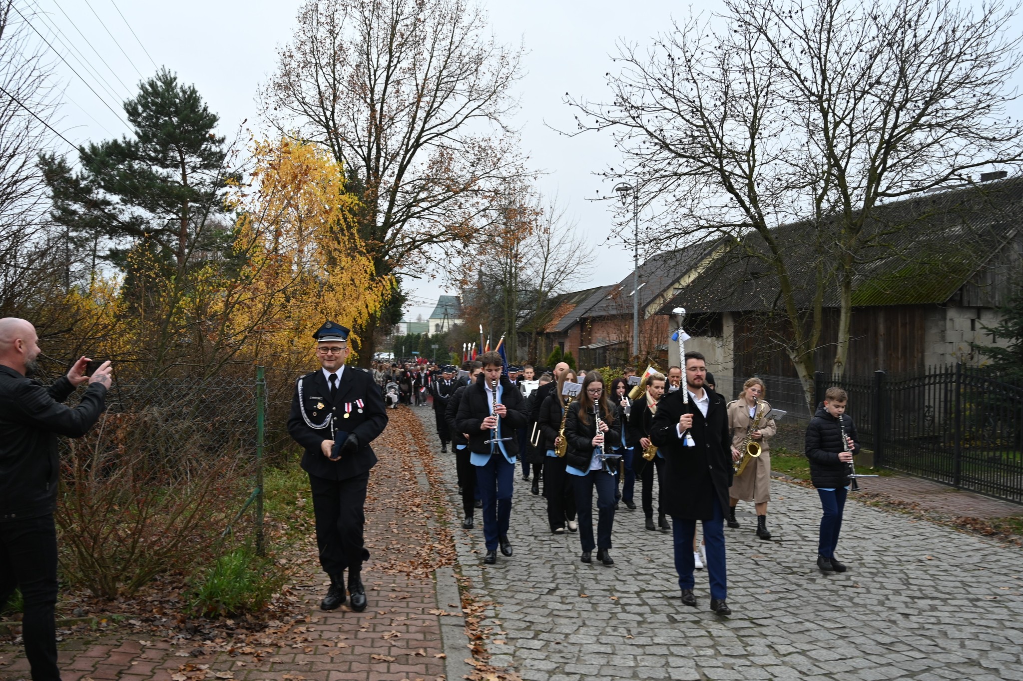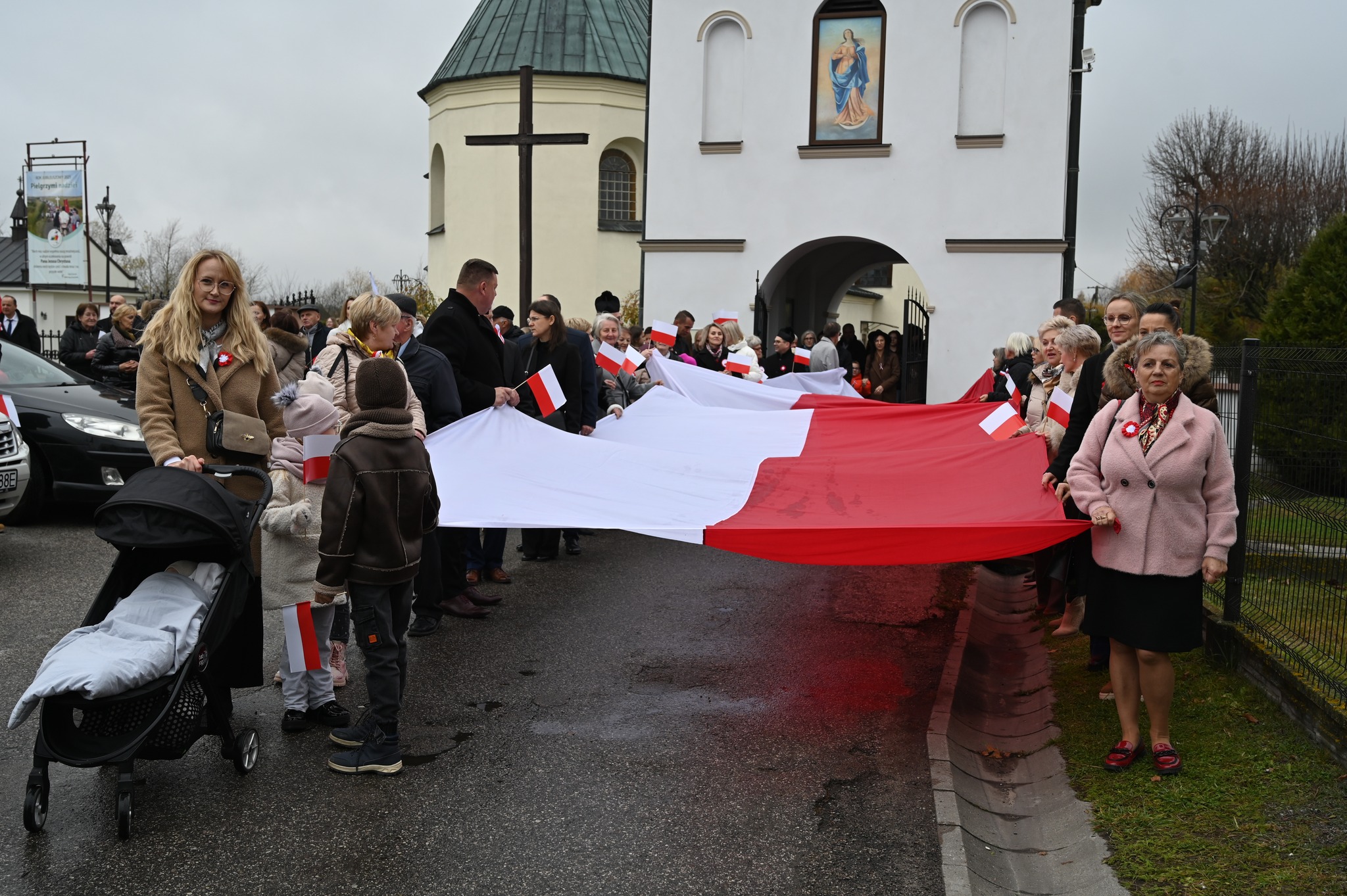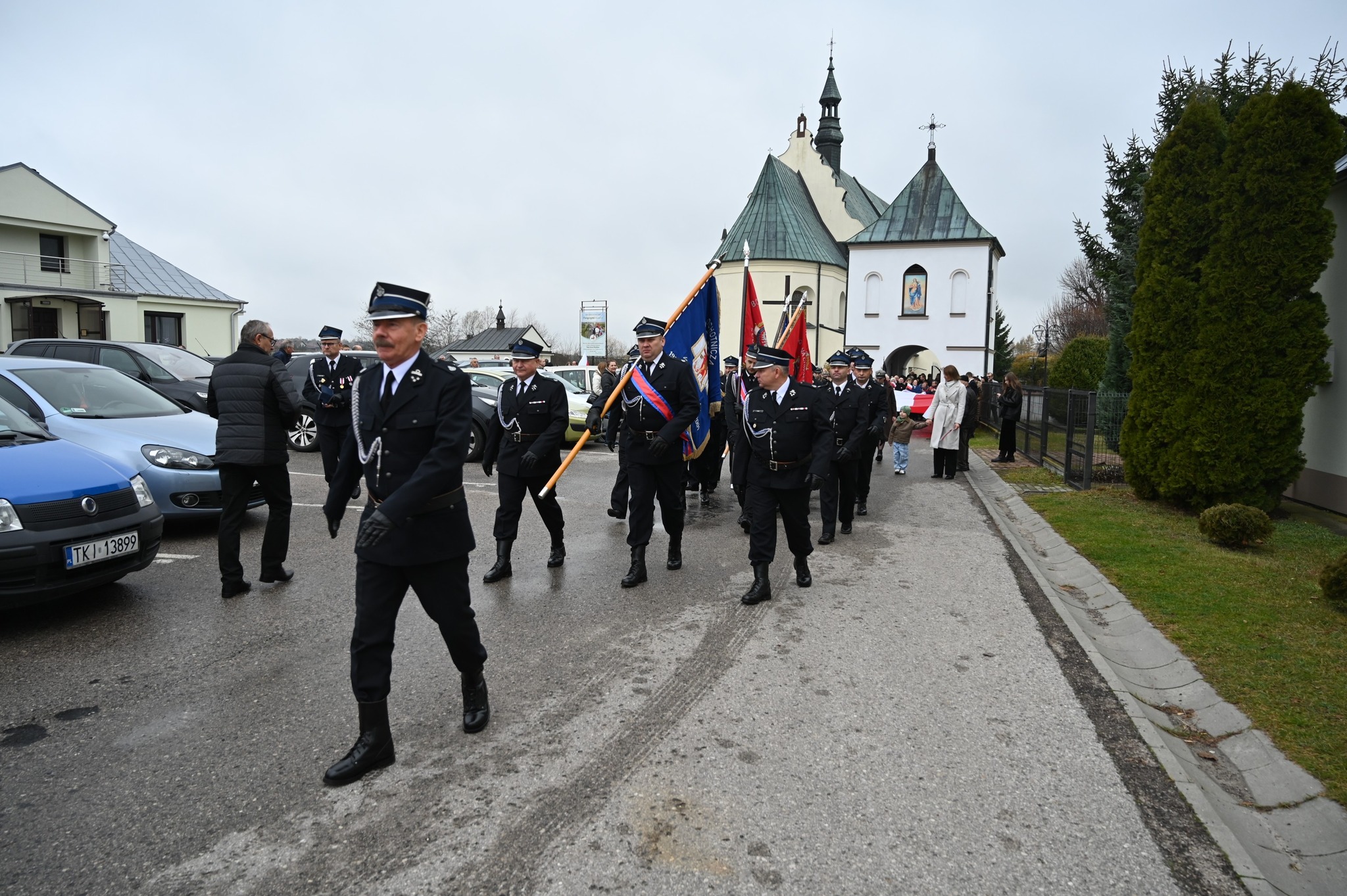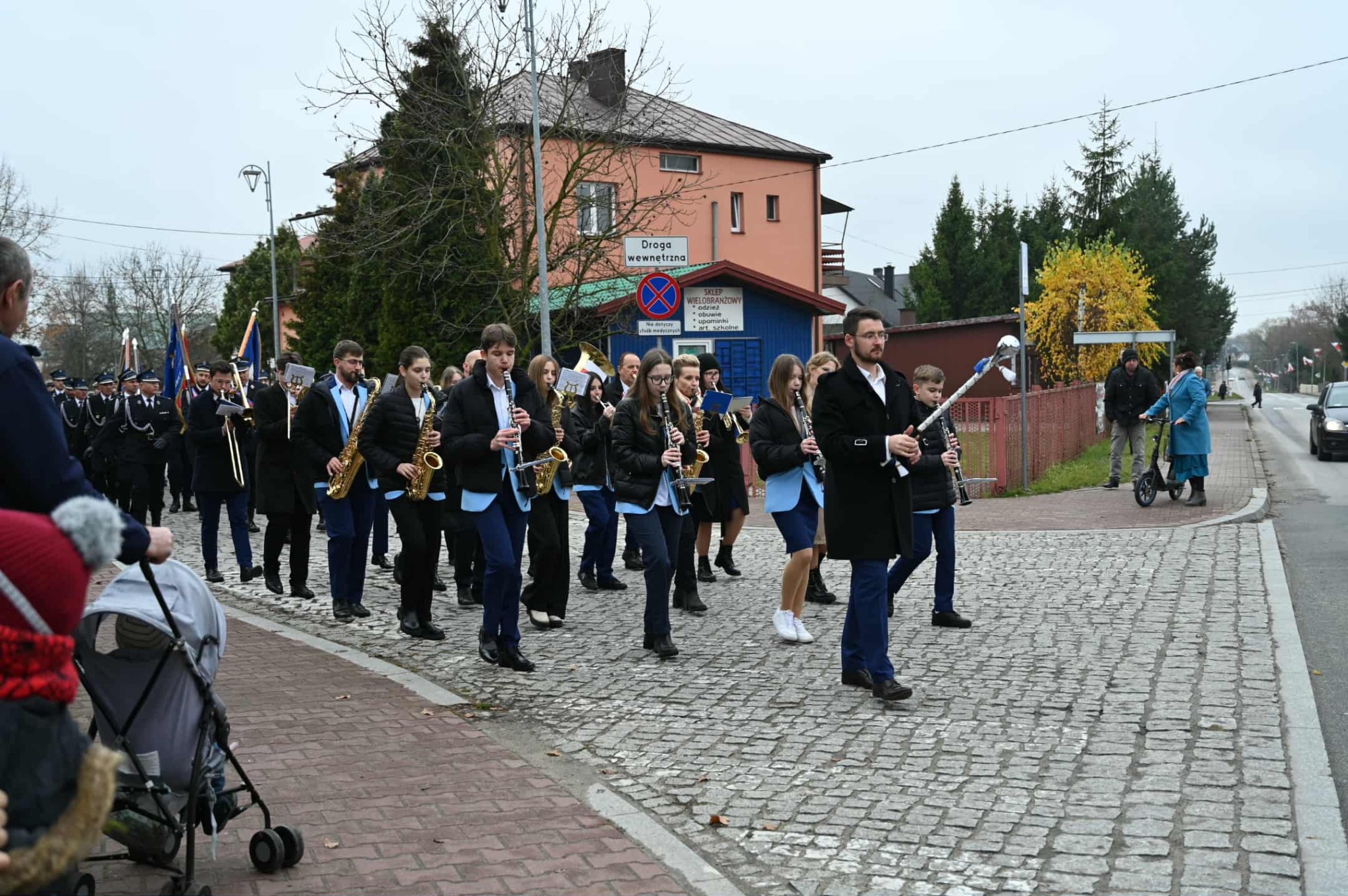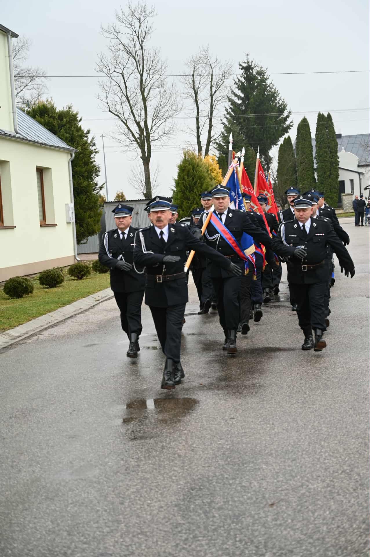 Po zakończonej Mszy Świętej uczestnicy przemaszerowali ulicami Strawczyna w uroczystym pochodzie prowadzonym przez Orkiestrę Dętą ze Strawczyna. Wśród maszerujących znalazły się poczty sztandarowe jednostek Ochotniczych Straży Pożarnych, harcerze 15 Drużyny Harcerskiej „Litwos” z Oblęgorka, uczniowie, seniorzy i mieszkańcy niosący ogromną biało-czerwoną flagę.