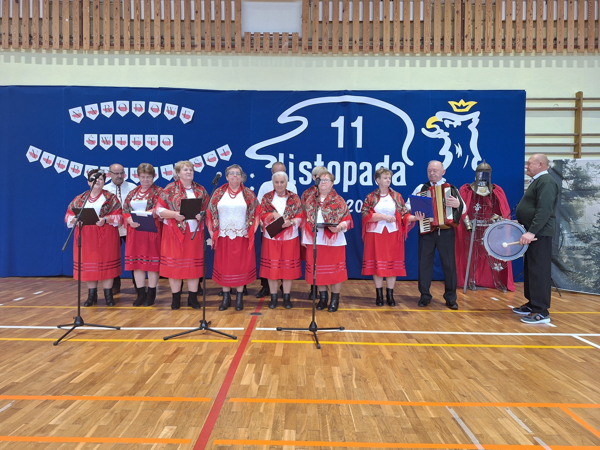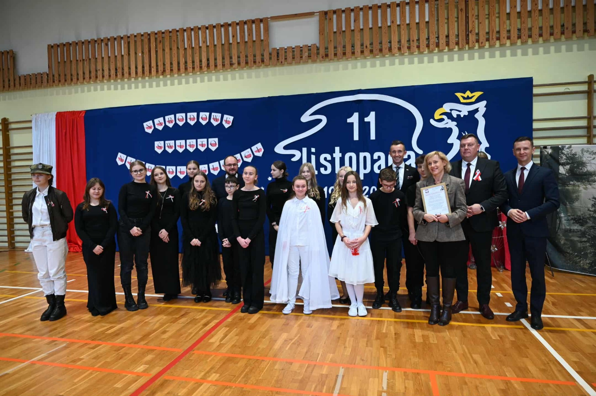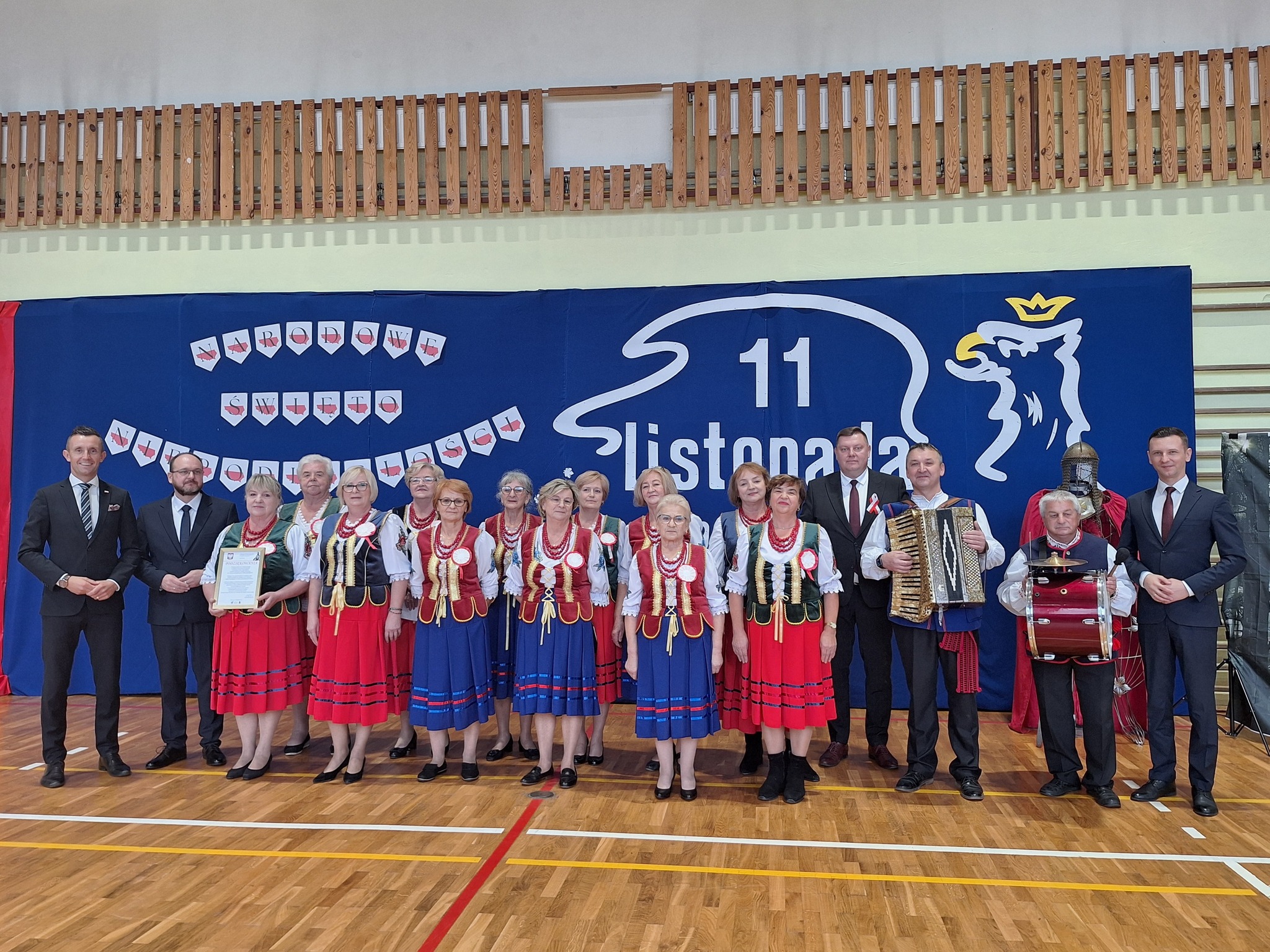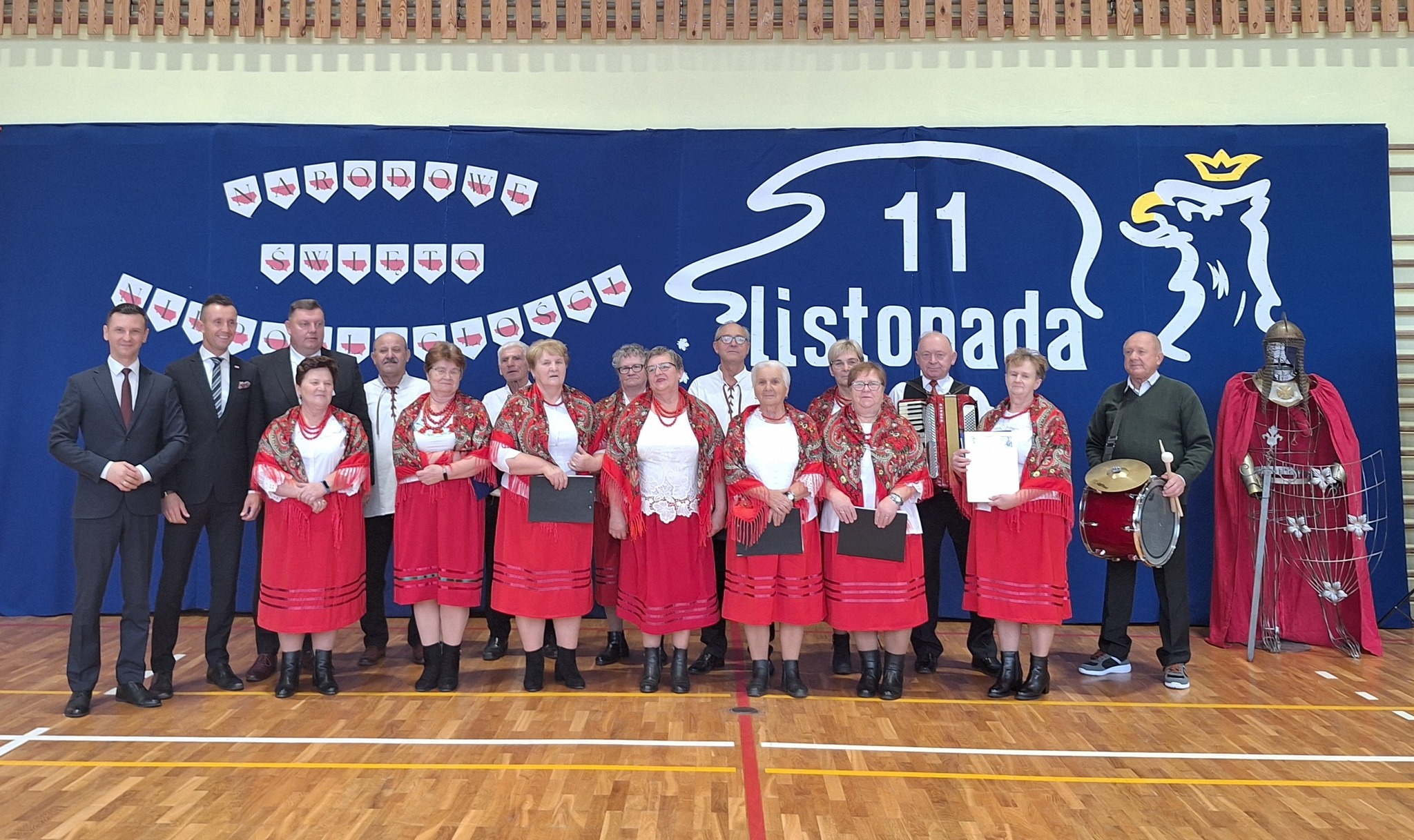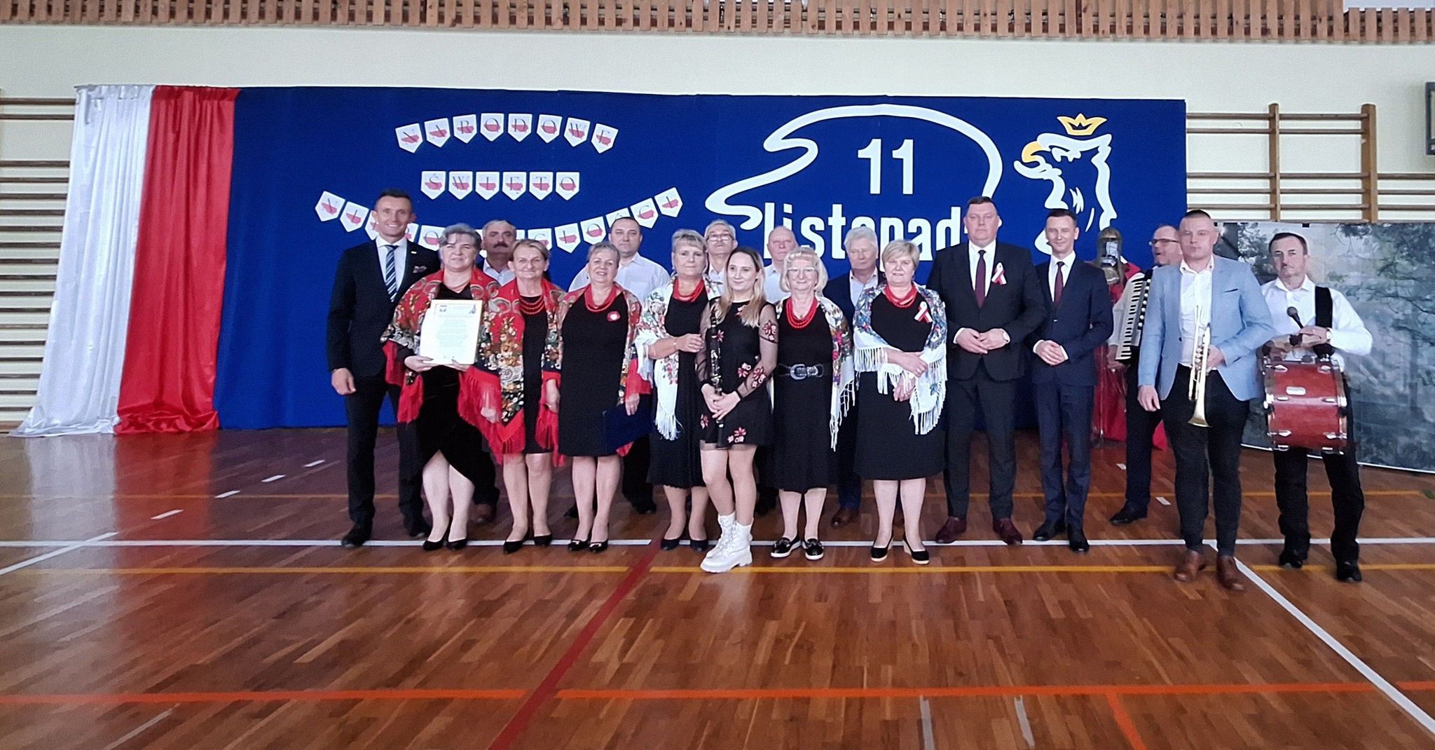 Po części oficjalnej uczestnicy przenieśli się do sali gimnastycznej, gdzie rozpoczęła się artystyczna część obchodów. Uczniowie Szkoły Podstawowej im. Orła Białego w Chełmcach zaprezentowali wzruszającą pantomimę patriotyczną przygotowaną pod kierunkiem dyrektor Marty Jass. Na scenie wystąpiły również lokalne zespoły i grupy artystyczne: Zespół Pieśni i Tańca ze Strawczynka, Koło Gospodyń Wiejskich „Chełmianki” z Chełmiec, Klub Seniora ze Strawczyna i Oblęgora oraz Zespół Śpiewaczy „Czerwone Korale” z Oblęgorka. Artyści zostali uhonorowani podziękowaniami, które wręczył wójt Karol Picheta wraz z wicewójtem Pawłem Lesiakiem, przewodniczącym Rady Gminy w Strawczynie Damianem Gadem i dyrektorem SCKSiC Łukaszem Woźniakiem.