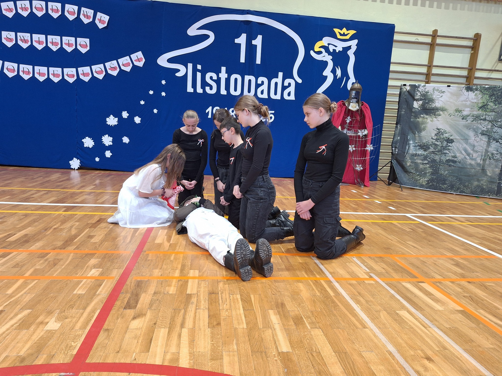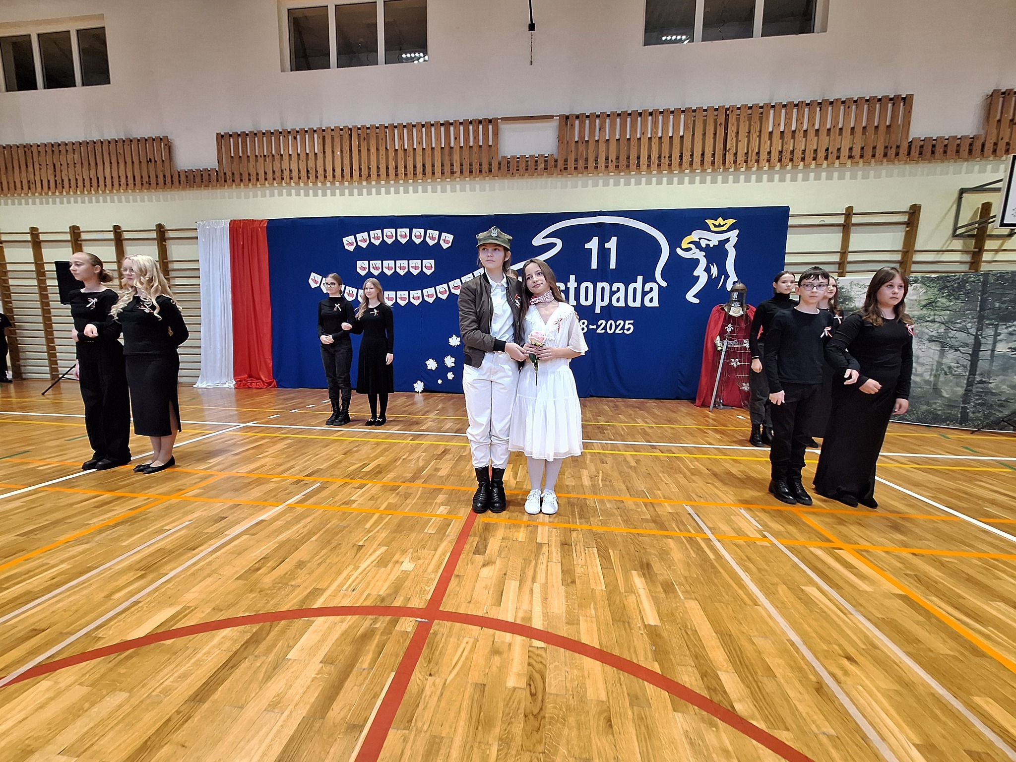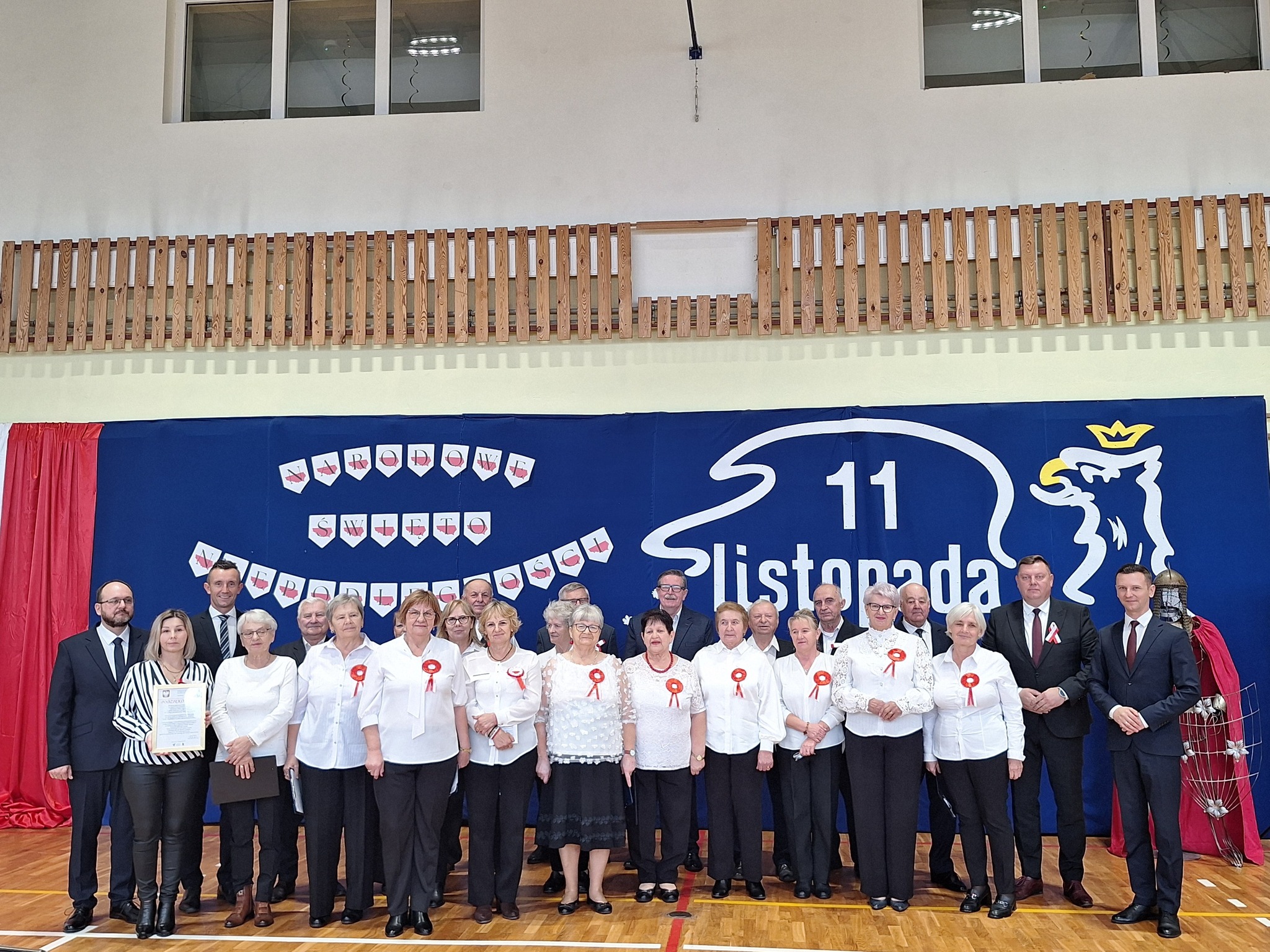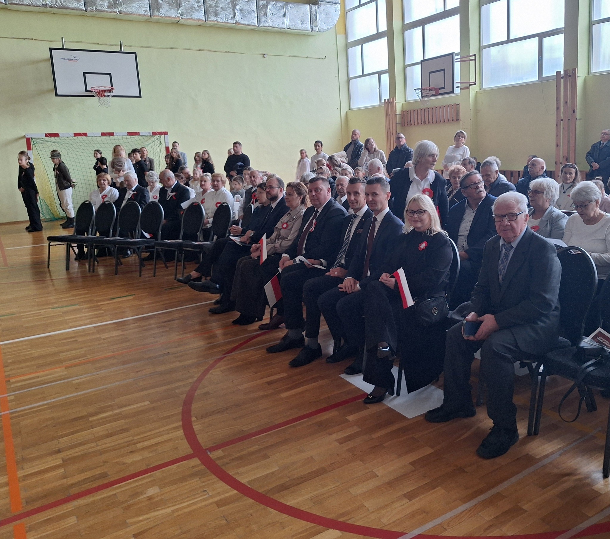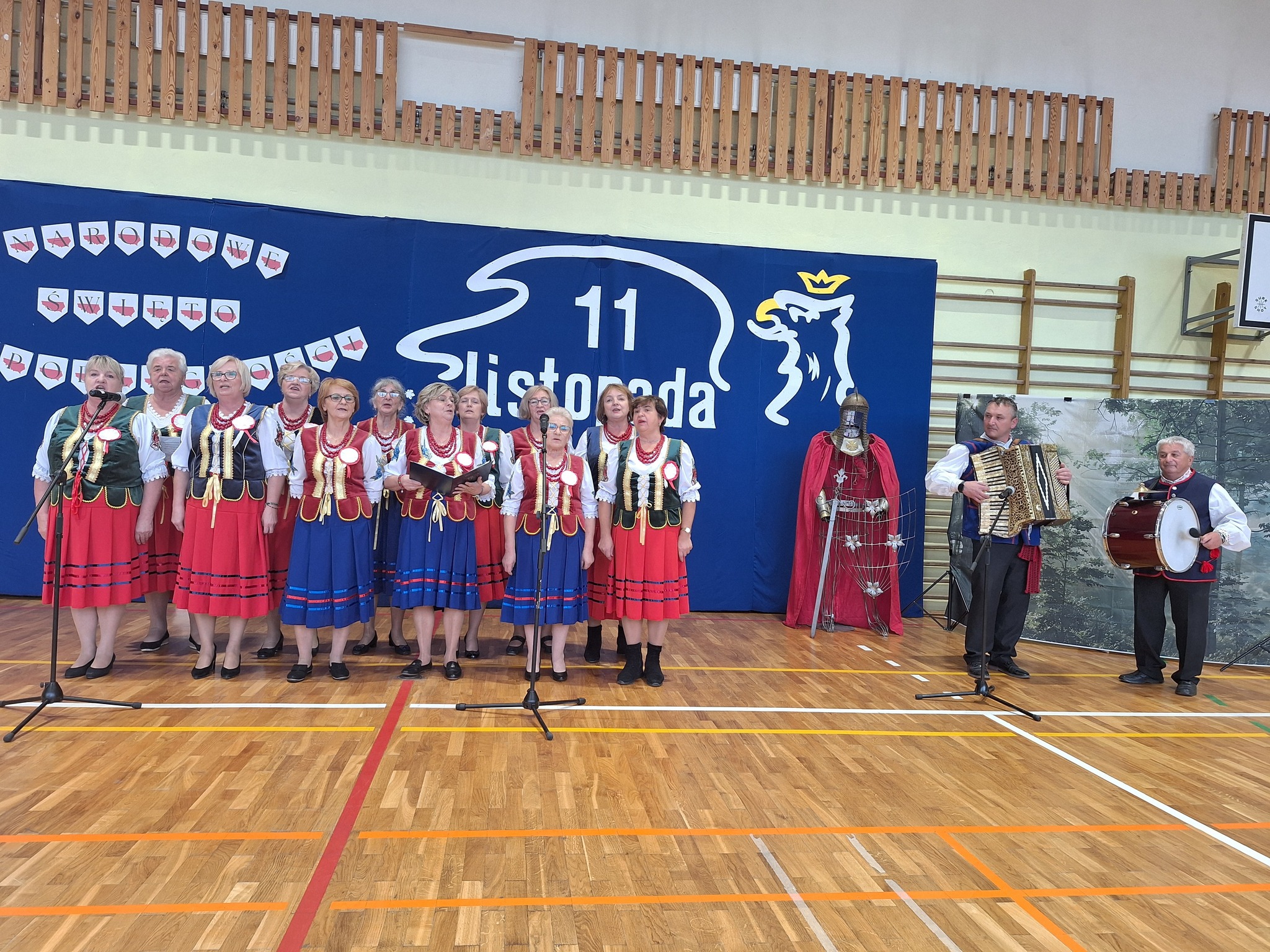 Po części oficjalnej uczestnicy przenieśli się do sali gimnastycznej, gdzie rozpoczęła się artystyczna część obchodów. Uczniowie Szkoły Podstawowej im. Orła Białego w Chełmcach zaprezentowali wzruszającą pantomimę patriotyczną przygotowaną pod kierunkiem dyrektor Marty Jass. Na scenie wystąpiły również lokalne zespoły i grupy artystyczne: Zespół Pieśni i Tańca ze Strawczynka, Koło Gospodyń Wiejskich „Chełmianki” z Chełmiec, Klub Seniora ze Strawczyna i Oblęgora oraz Zespół Śpiewaczy „Czerwone Korale” z Oblęgorka. Artyści zostali uhonorowani podziękowaniami, które wręczył wójt Karol Picheta wraz z wicewójtem Pawłem Lesiakiem, przewodniczącym Rady Gminy w Strawczynie Damianem Gadem i dyrektorem SCKSiC Łukaszem Woźniakiem.