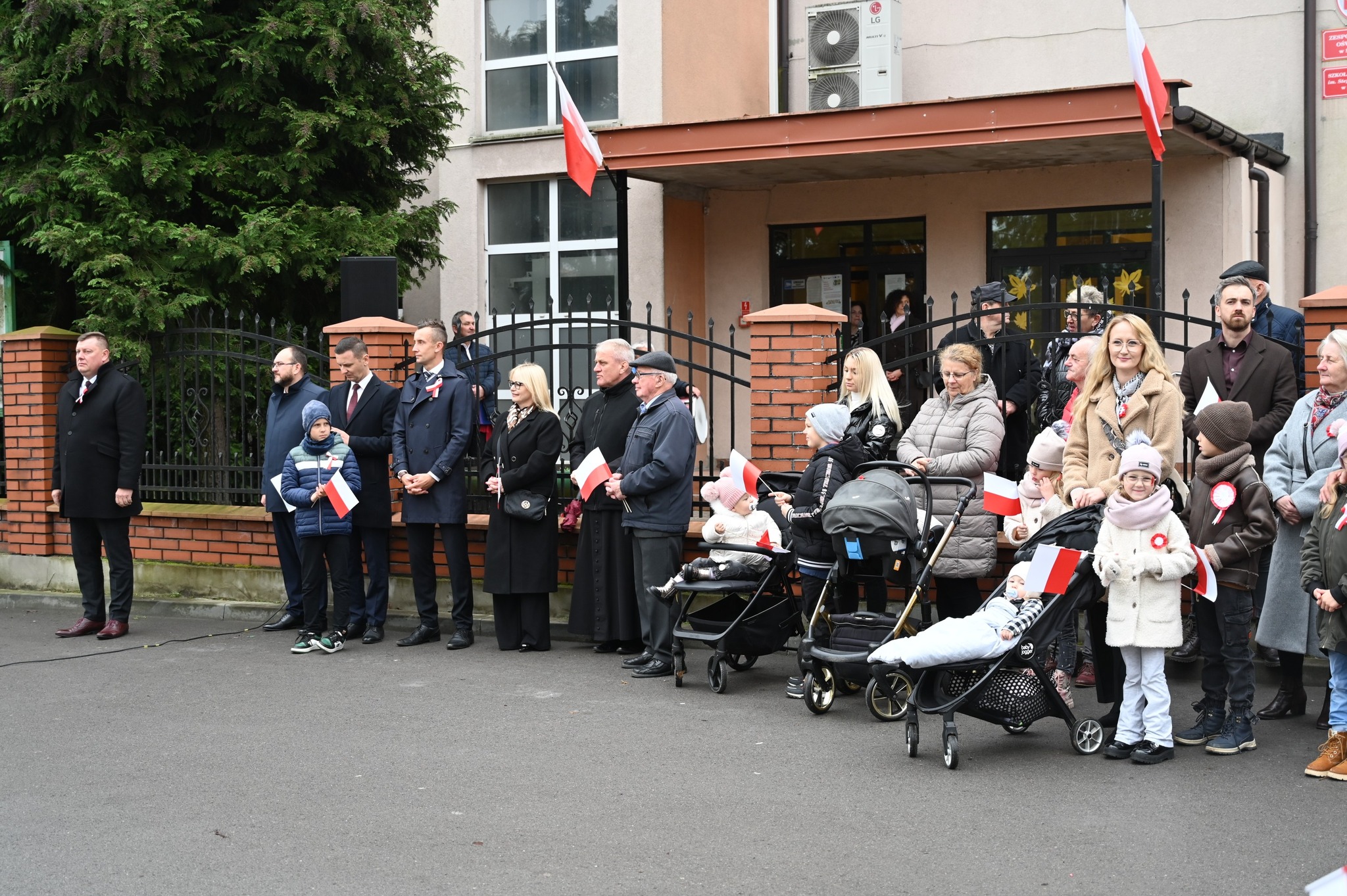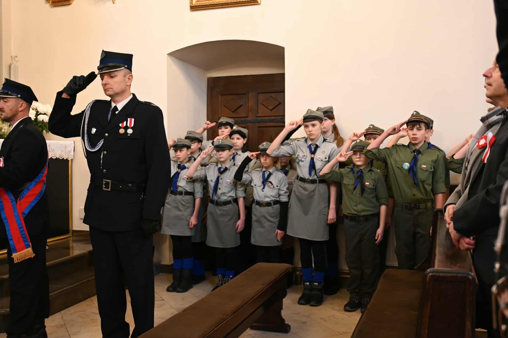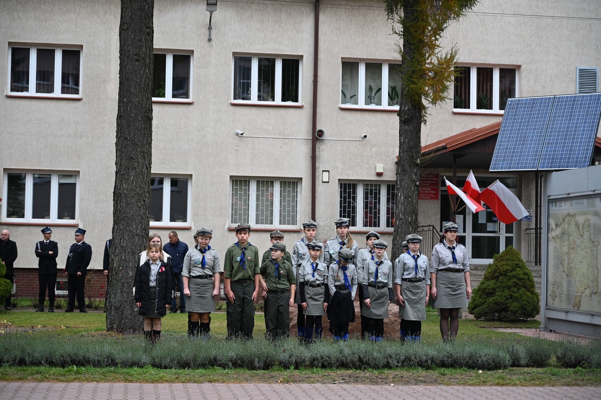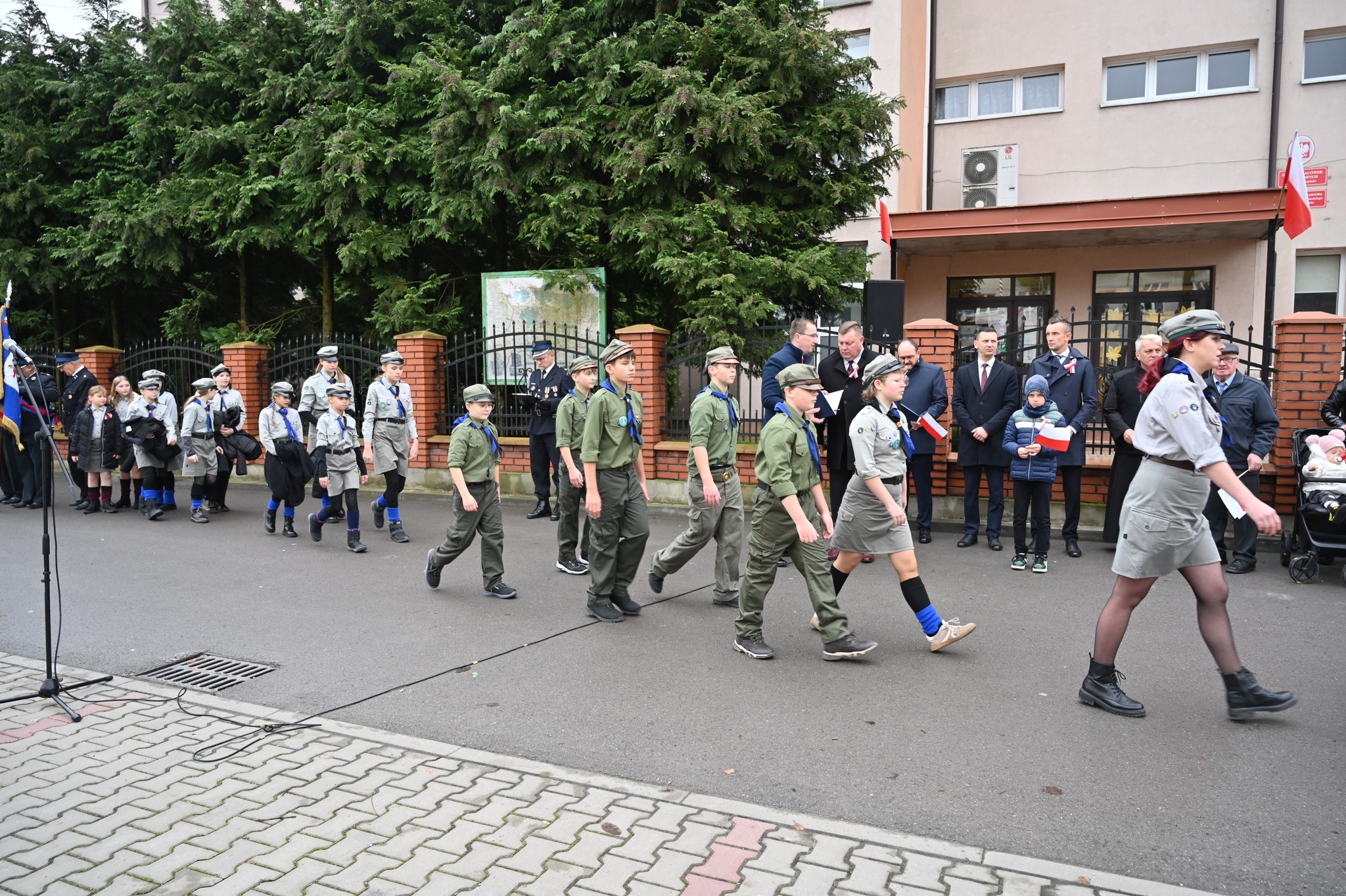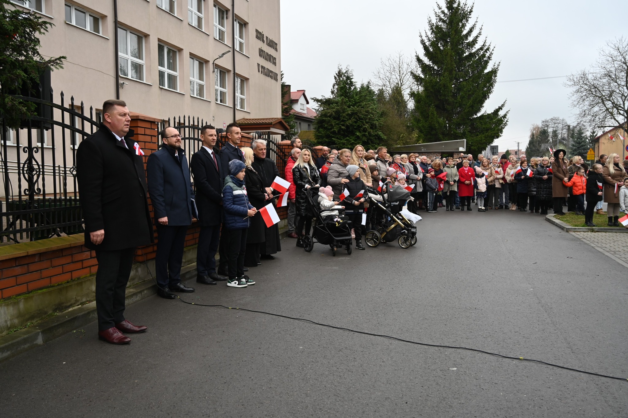Pod budynkiem Szkoły Podstawowej w Strawczynie odbyła się część oficjalna uroczystości. Dowódca obchodów dh Bogdan Woźniak złożył raport o gotowości do ich rozpoczęcia, po czym harcerze wciągnęli flagę państwową na maszt. Przy dźwiękach Orkiestry Dętej Strawczyn uczestnicy odśpiewali Hymn Polski. Następnie druh Krzysztof Siwek odczytał poruszający Apel Poległych, oddając hołd wszystkim, którzy oddali życie za wolną i niepodległą Polskę.