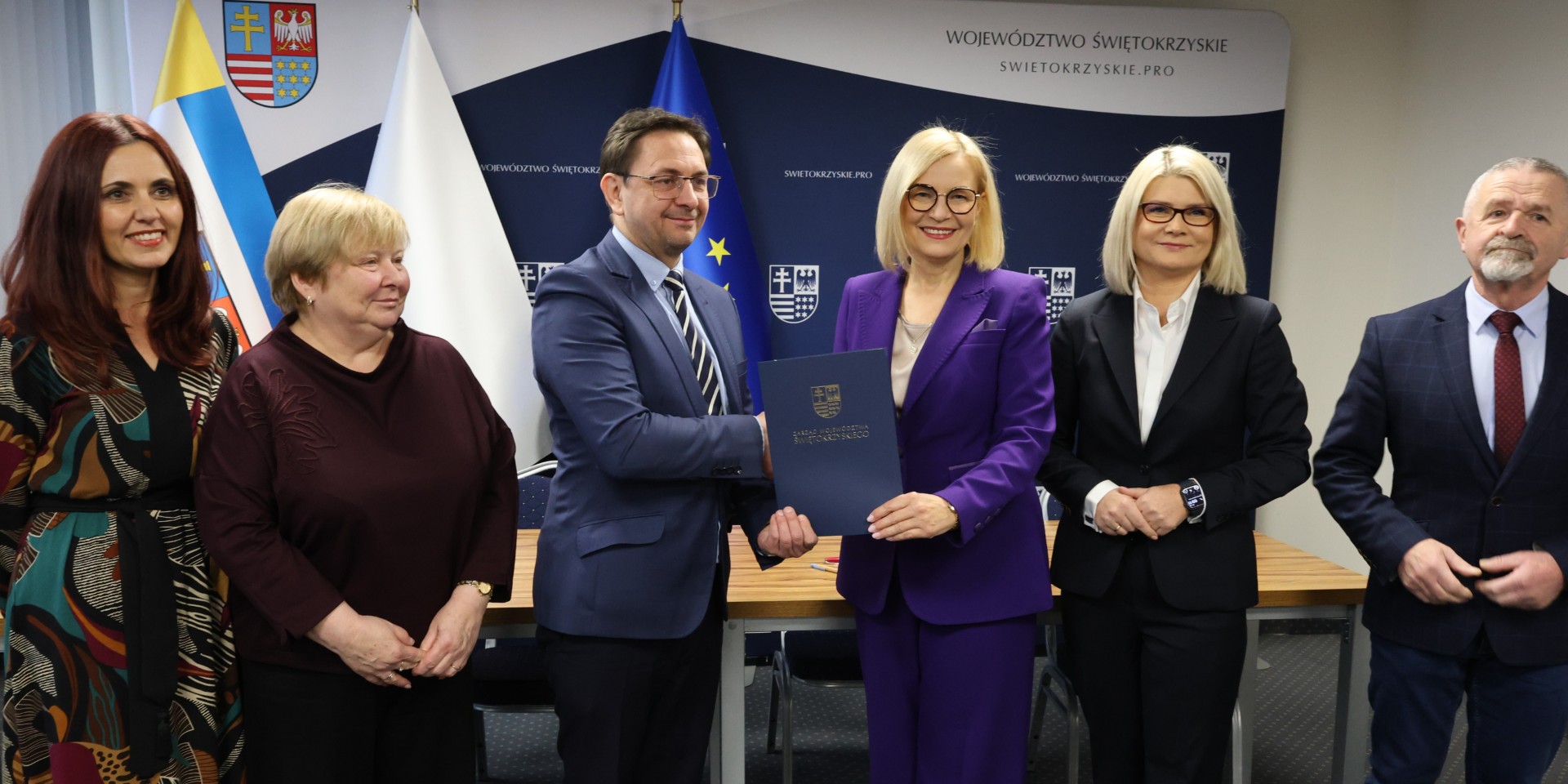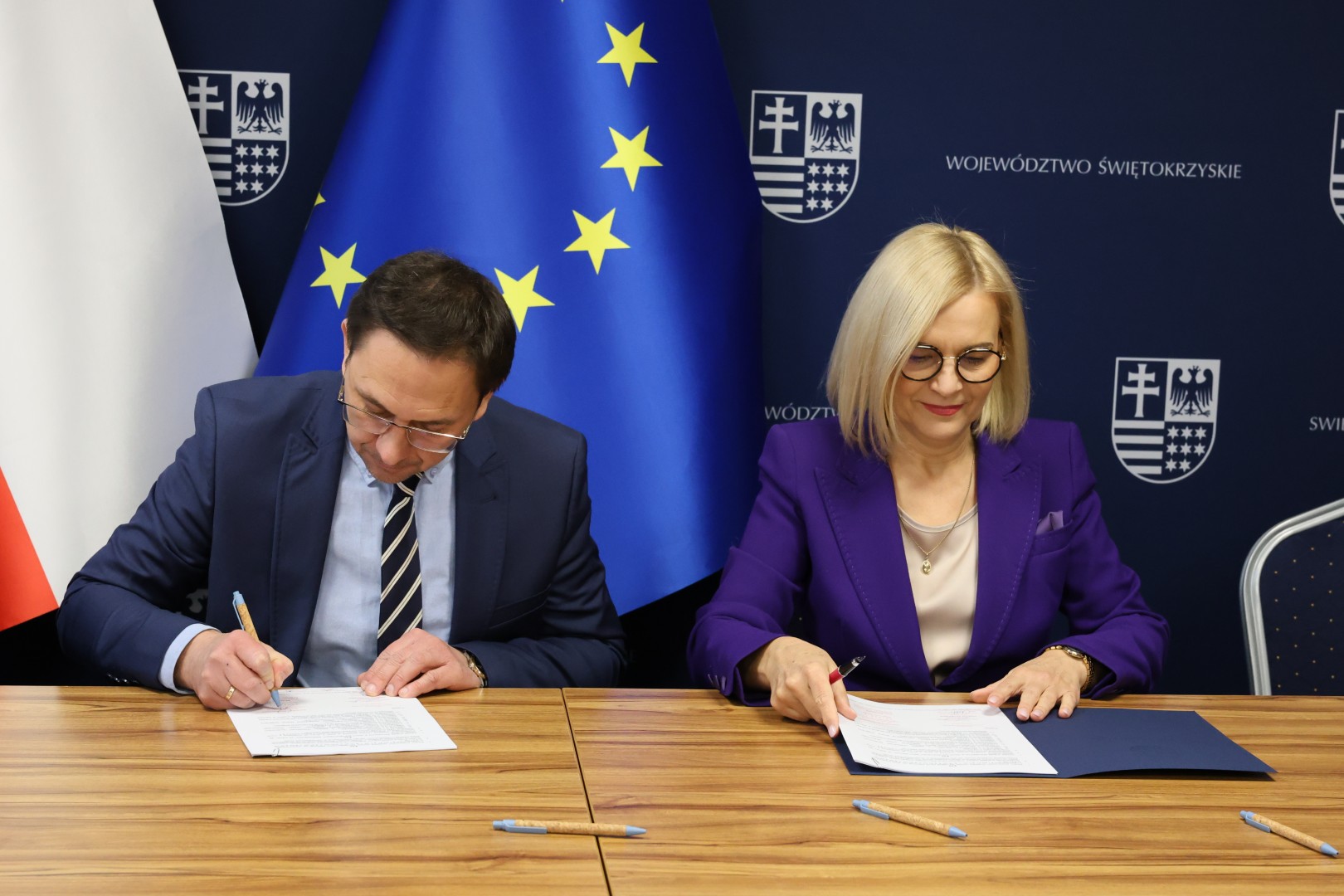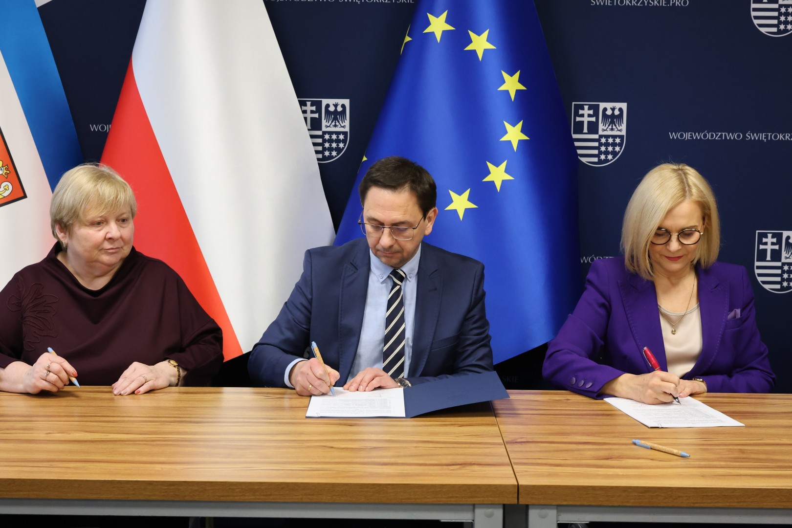 Dziś w Urzędzie Marszałkowskim Województwa Świętokrzyskiego, Zastępca Burmistrza Marcin Dziewięcki, przy kontrasygnacie Skarbnik Małgorzaty Lisickiej zawarł umowę z Marszałek Renatą Janik na przekształcenie Miejskiego Ośrodka Pomocy Społecznej w Centrum Usług Społecznych. Projekt opiewa na kwotę ponad 8 mln zł.