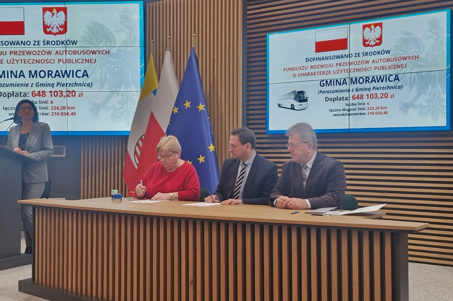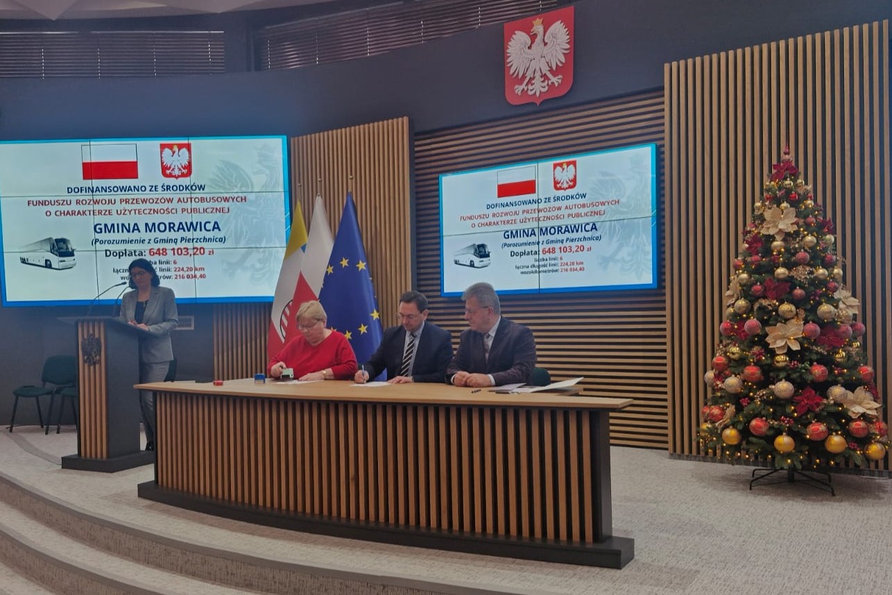 W poniedziałek, 29 grudnia br. Zastępca Burmistrza Miasta i Gminy Morawica Marcin Dziewięcki, przy kontrasygnacie Skarbnik Małgorzaty Lisickiej zawarł z Wojewodą Świętokrzyskim Józefem Brykiem umowę na dofinansowanie linii autobusowych użyteczności publicznej.