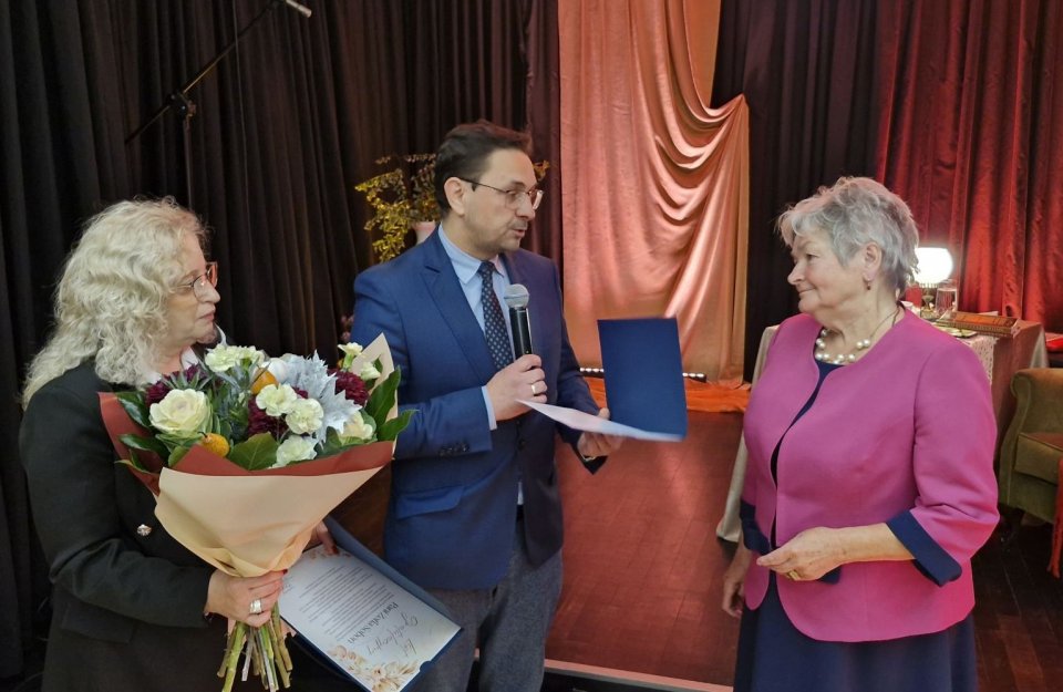 „Pani Zofia Soboń zawsze była ważną i bardzo aktywną osobą w Gminie Morawica i zaproszenie na tak piękny, poetycki wieczór przyjąłem z wielką radością” – powiedział Z-ca Burmistrza Marcin Dziewięcki, wręczając Pani Zofii Kwiaty i List Gratulacyjny.