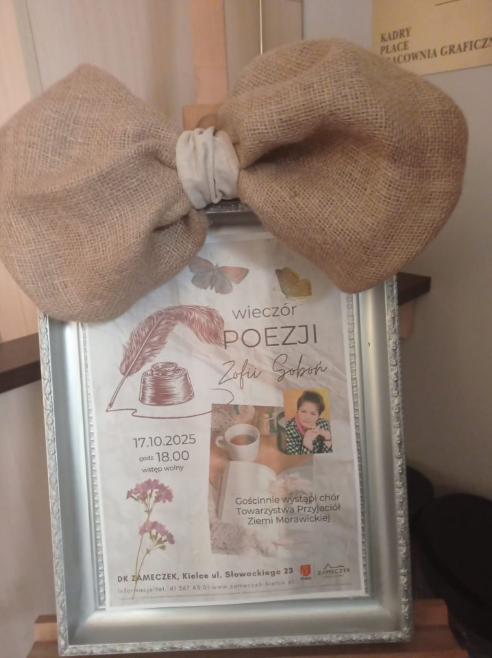 W kameralnej Sali Domu Kultury Zameczek w Kielcach odbył się wieczór poezji autorstwa Zofii Soboń – poetki związanej z Towarzystwem Przyjaciół Ziemi Morawickiej.