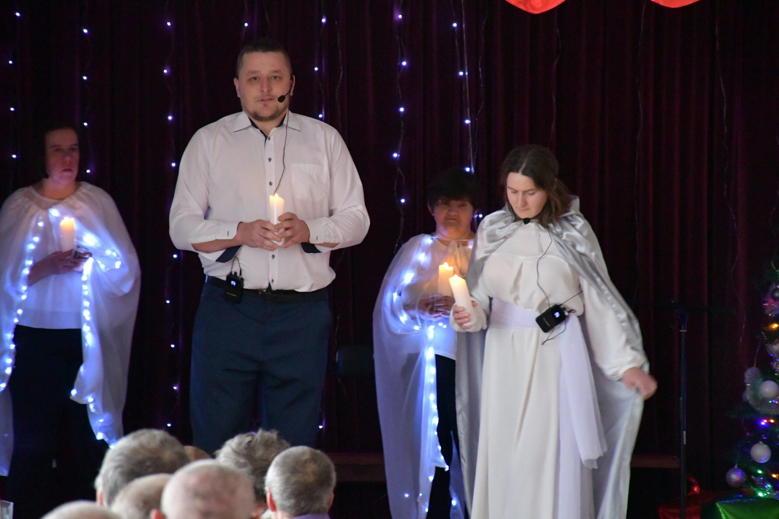 Wyjątkowy nastrój wieczoru podkreślił występ niezwykle uzdolnionych aktorów z ŚDS w Piekoszowie, który wprowadził uczestników w klimat wspólnego kolędowania. Niezwykle istotnym elementem wydarzenia była tradycja, którą mieszkańcy Piekoszowa znają od wielu lat. Piekarnia Majka po raz kolejny przygotowała świąteczne chlebki z siankiem jako symboliczny dar, który nawiązuje do dawnego zwyczaju wypieku chleba z mąki zebranej podczas świątecznej zbiórki żywności. Ten piękny gest został ciepło przyjęty przez uczestników i po raz kolejny pokazał, jak wielkie znaczenie mają lokalne inicjatywy oparte na życzliwości i pamięci o innych. Podopieczni GOPS otrzymali także paczki świąteczne przygotowane z darów przekazanych przez mieszkańców podczas świątecznej zbiórki charytatywnej, co dodało jeszcze bardziej serdecznego charakteru.