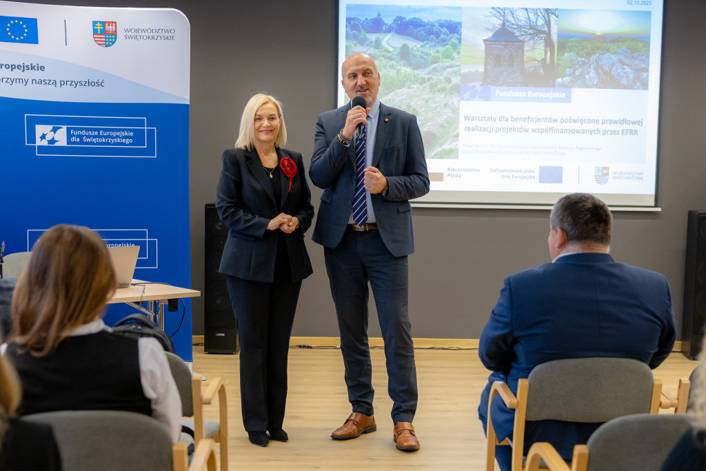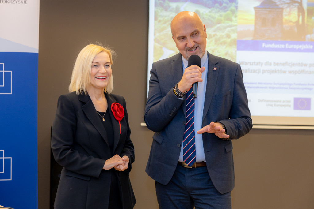 – Jesteśmy liderami w kraju jeśli chodzi o wykorzystanie środków, kontraktację, certyfikację, ale cały czas nasze działania skierowane są na podnoszenie kompetencji beneficjantów. Te warsztaty to doskonała okazja do pogłębienia wiedzy, wymiany doświadczeń oraz rozmów o praktycznych aspektach wdrażania projektów. Chcemy, by nasi beneficjenci czuli się pewnie na każdym etapie realizacji – podkreśliła marszałek województwa świętokrzyskiego Renata Janik.
