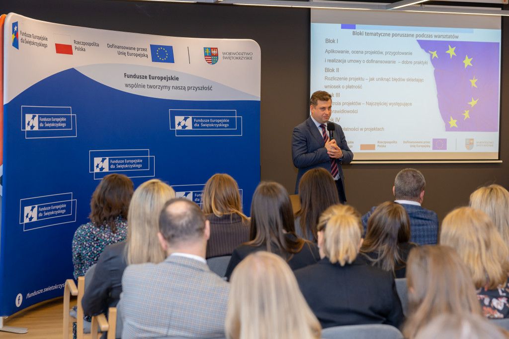 W Wojewódzkiej Bibliotece Publicznej w Kielcach rozpoczęły się dziś dwudniowe warsztaty dla beneficjentów programu Fundusze Europejskie dla Świętokrzyskiego 2021–2027, podczas których eksperci wskażą jak skutecznie realizować projekty dofinansowane ze środków unijnych oraz jak uniknąć błędów w rozliczeniach i kontrolach. Spotkanie otworzyli marszałek województwa świętokrzyskiego Renata Janik i wicemarszałek Grzegorz Socha, odpowiadający za wdrażanie w regionie programu Fundusze Europejskie dla Świętokrzyskiego.