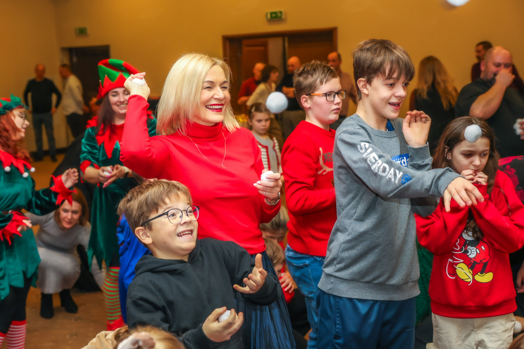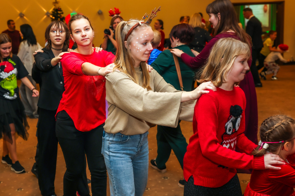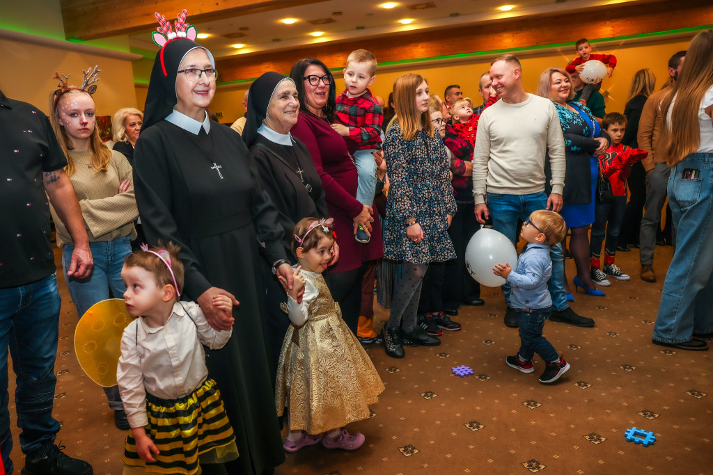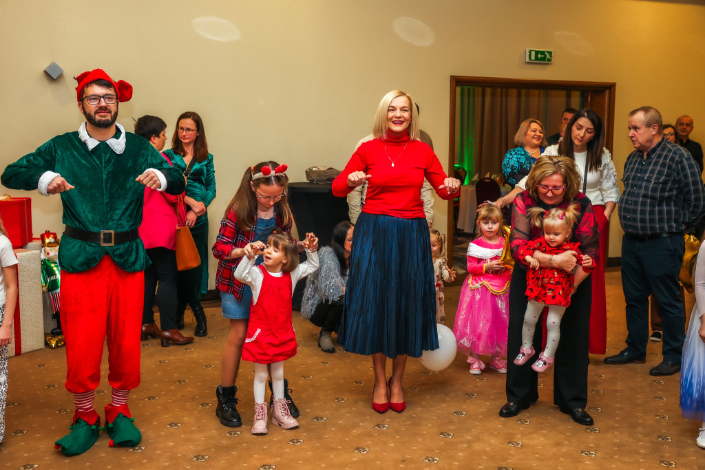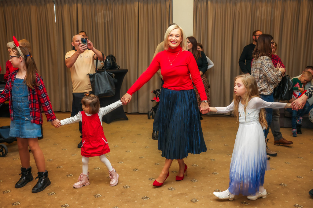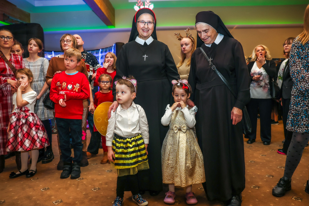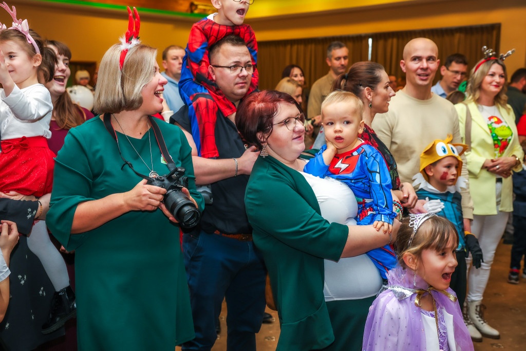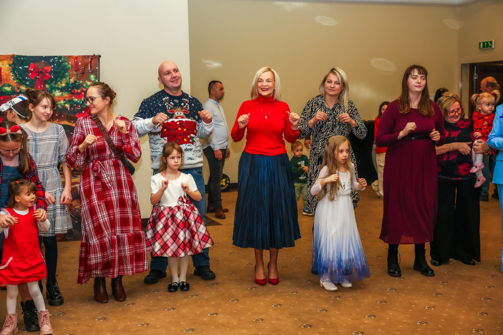 Takie spotkania to nie tylko świętowanie, ale także ważny element wsparcia dla rodzin, które podejmują się jednej z najodpowiedzialniejszych misji – budowania bezpiecznej przyszłości dzieci. Na najmłodszych czekały liczne atrakcje: animacje, zabawy, konkursy, wspólne śpiewanie kolęd oraz oczywiście długo wyczekiwane spotkanie ze św. Mikołajem, który obdarował każde dziecko prezentem. Radości i wzruszeń nie brakowało, a cała sala wypełniła się świątecznym ciepłem i uśmiechami.