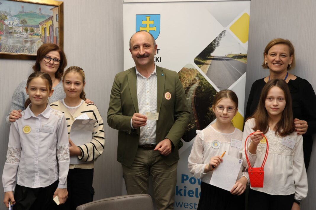 Wzorową znajomością wykazał się Mariusz Ściana, członek Zarządu Powiatu w Kielcach, który bez namysłu odpowiedział na wszystkie pytania młodych egzaminatorek.